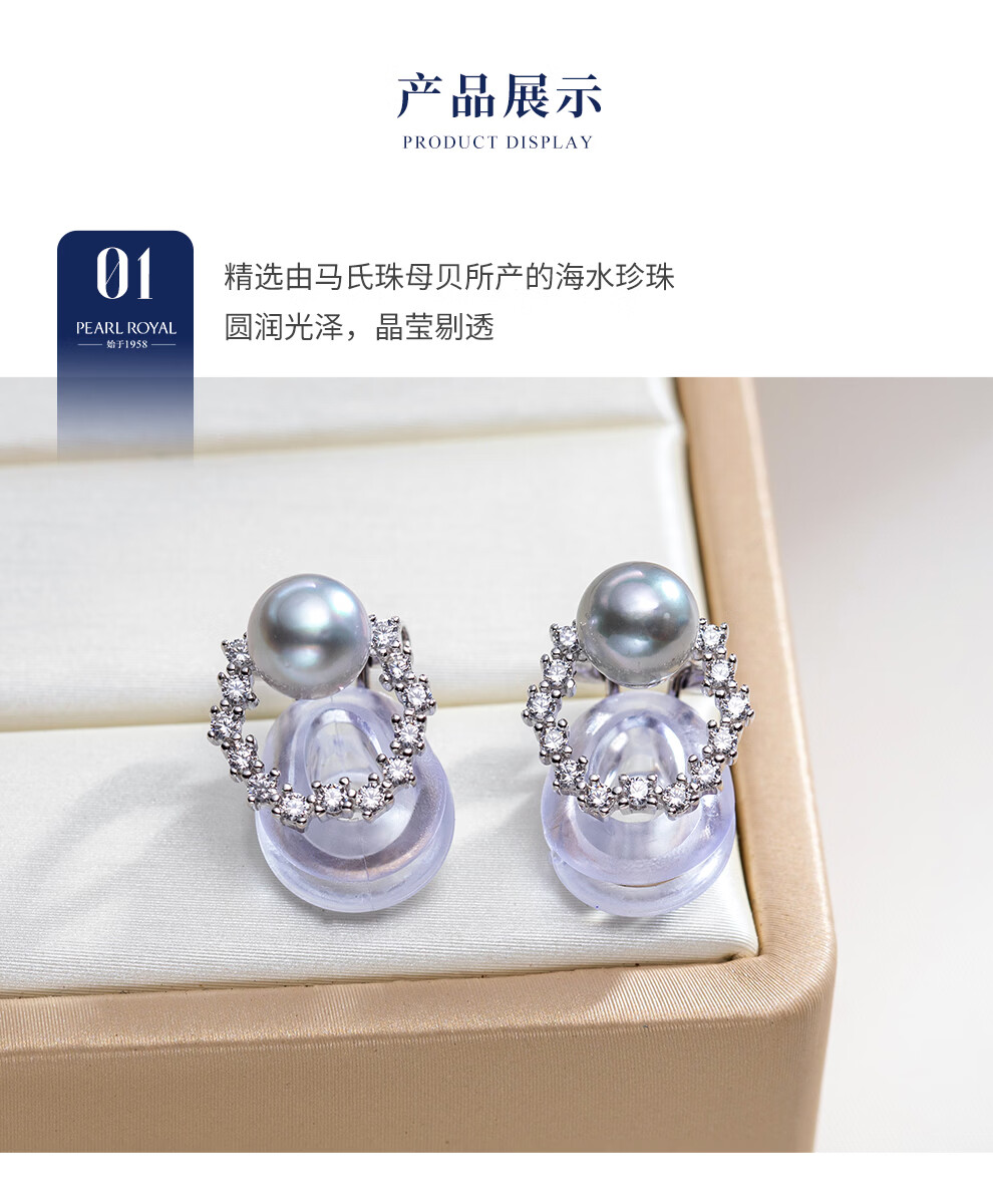 南珠宫流光18K金大溪地海水珍珠耳环强光圆形精致百搭生日礼物送老婆 银色款 8.0-9.0mm