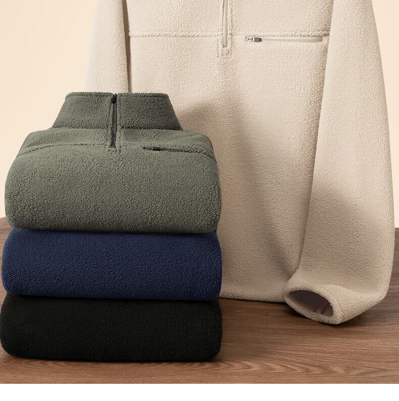 真维斯(Jeanswest)2026摇粒绒卫衣男士冬季加厚抓绒衣保暖立领半拉链内胆套休闲头衫 深灰色 M