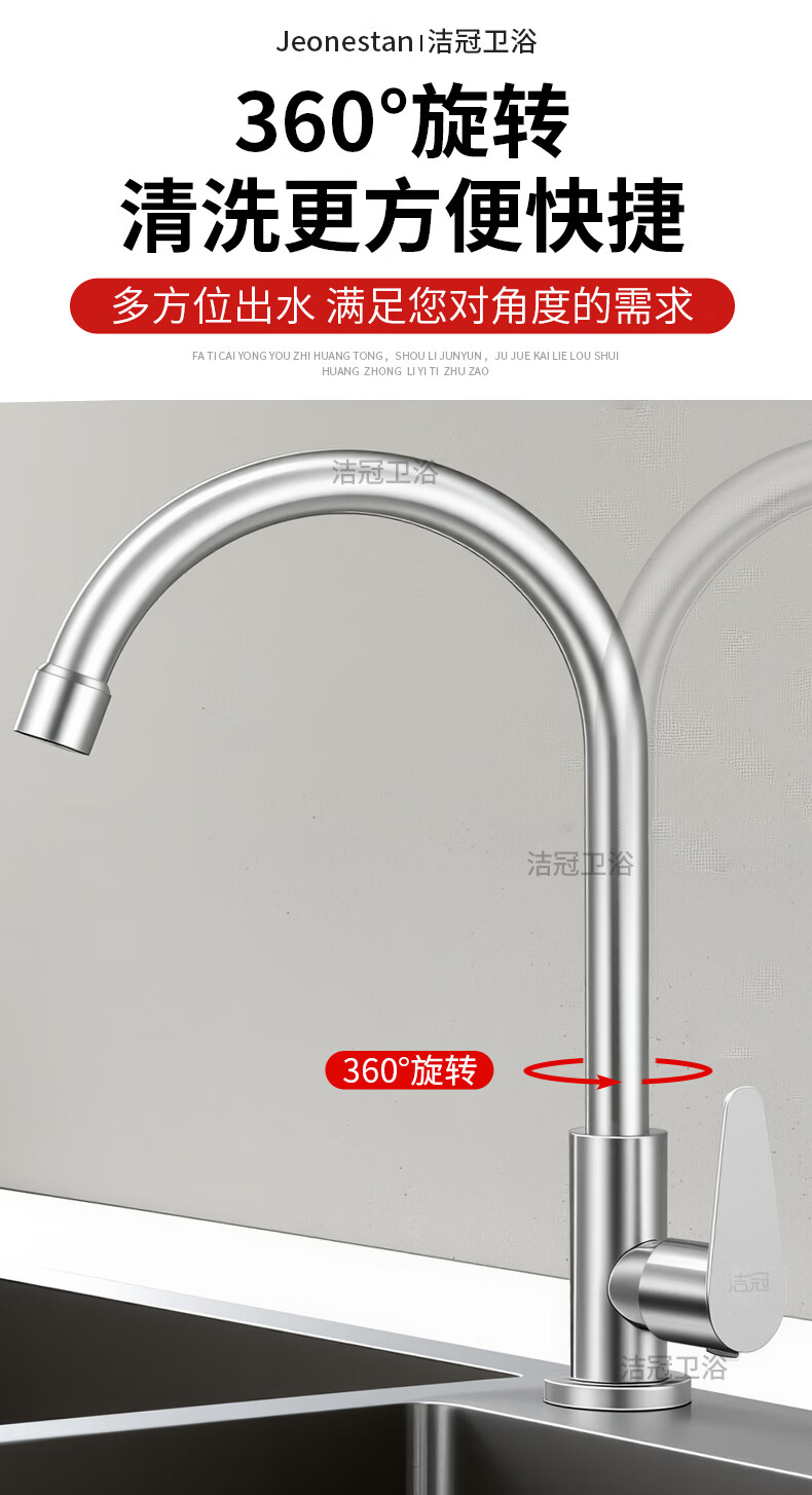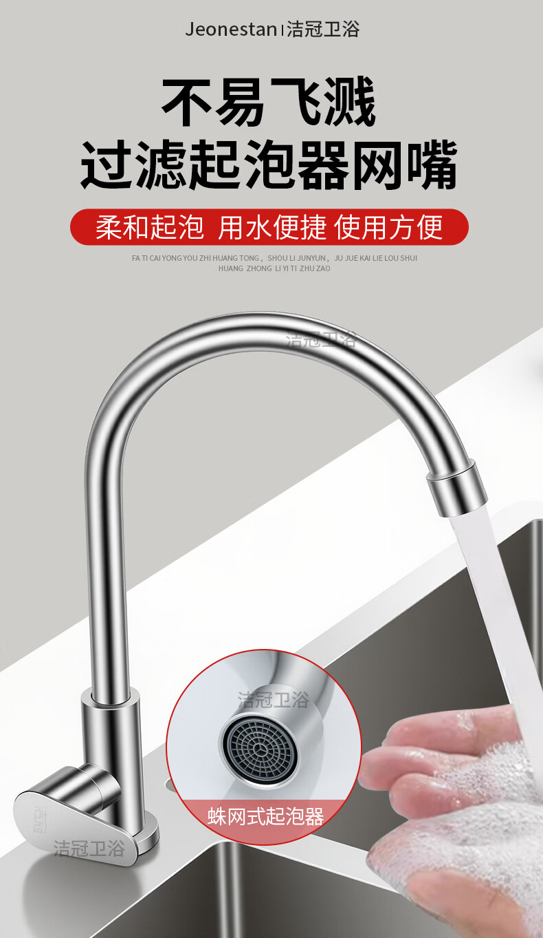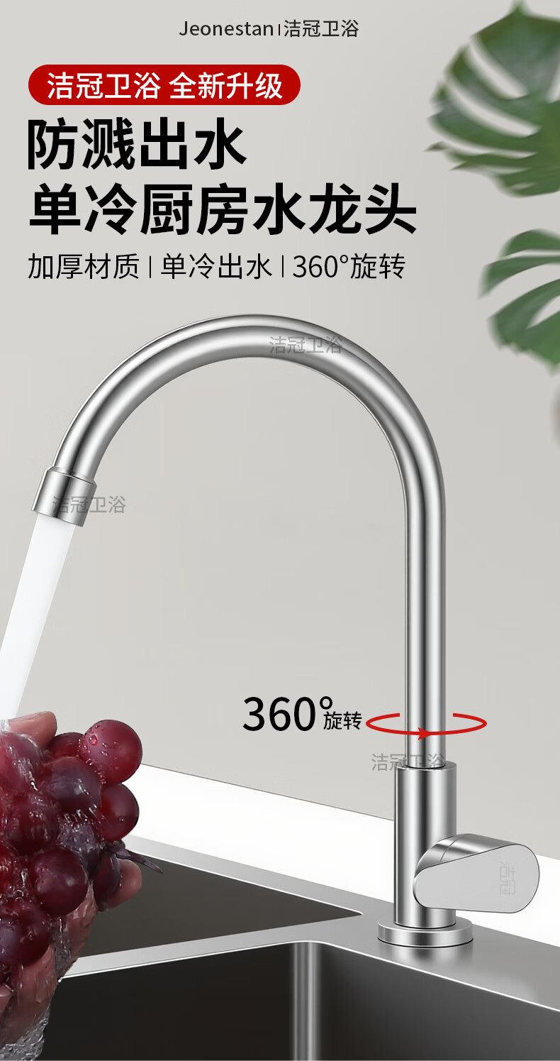 Jeonestan【德国】厨房水龙头单冷洗菜盆洗碗池万向旋转增压防溅 单冷弯管带60cm管