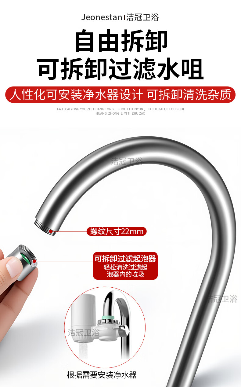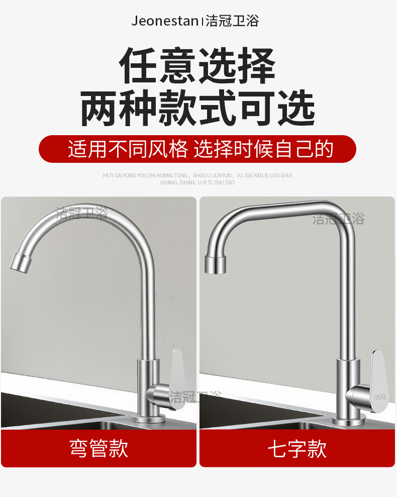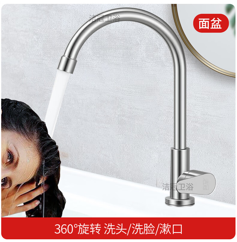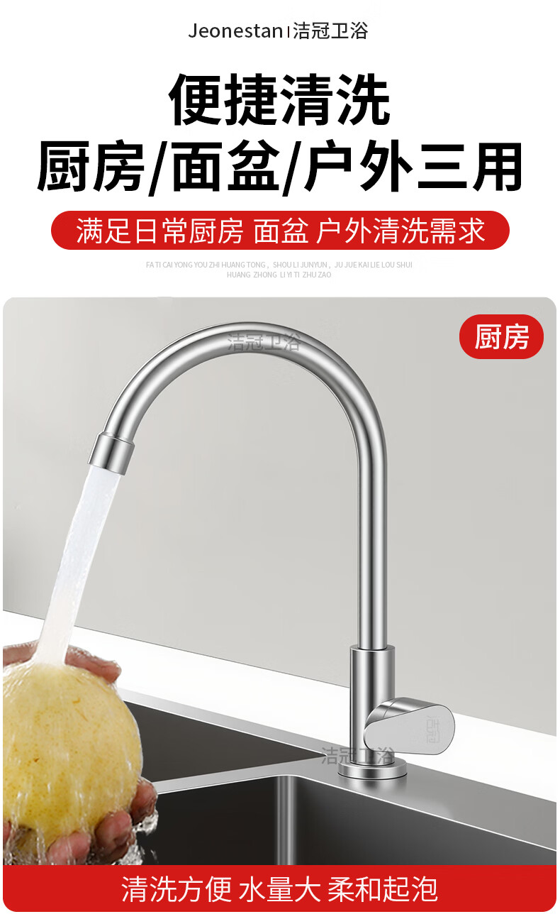 Jeonestan【德国】厨房水龙头单冷洗菜盆洗碗池万向旋转增压防溅 单冷弯管带60cm管