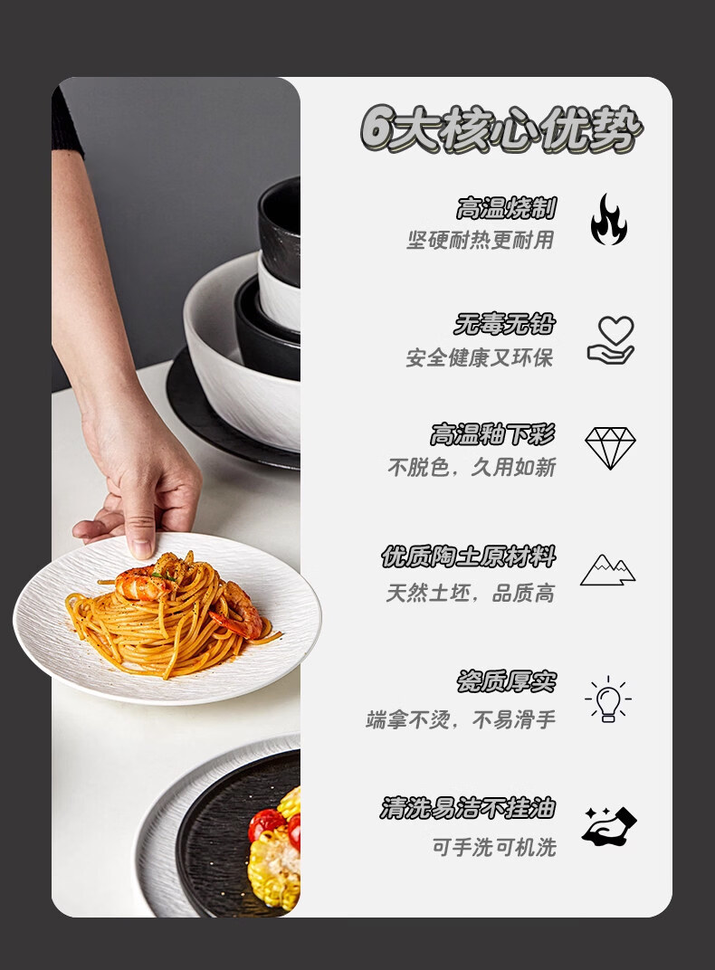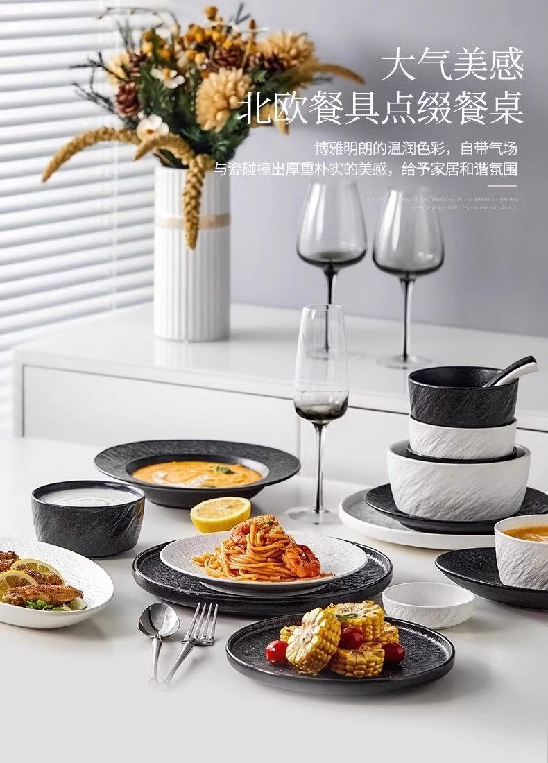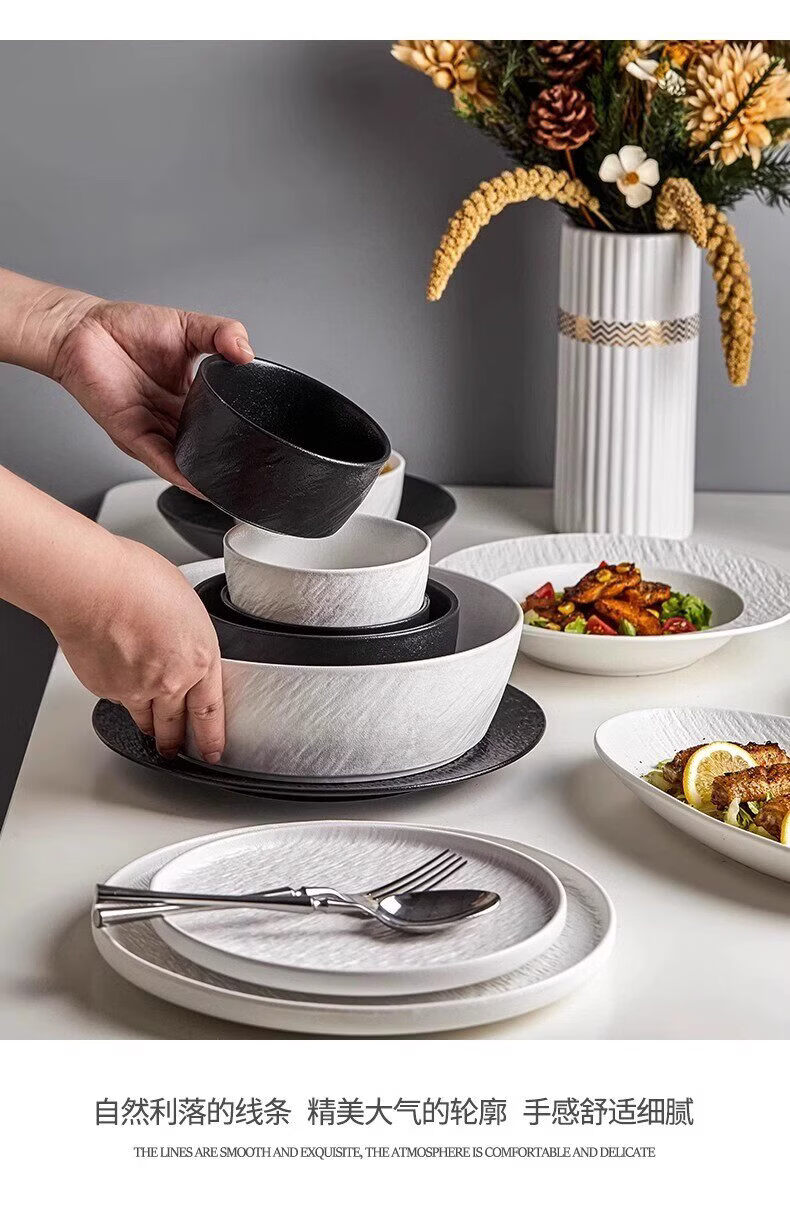 精缔陶瓷JINGDI2025新款碗碟套装家用碗筷乔迁高温骨瓷餐具套装景德镇陶瓷碗盘子 【店长推荐】66件升级配大汤碗 66件套
