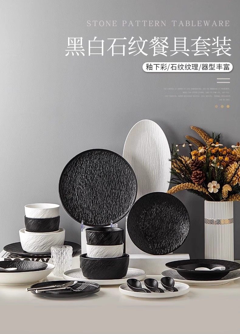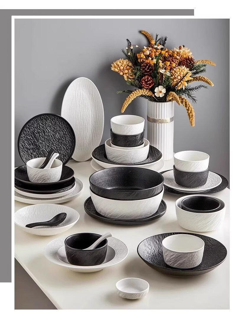 精缔陶瓷JINGDI餐具套装2026新款高颜值碗筷碗盘釉下彩陶瓷碗具乔迁碗碟套装家用 【下单送砂锅】混搭8人食 38件套