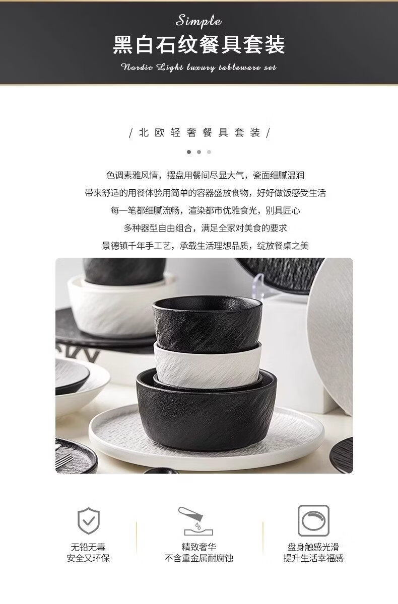 精缔陶瓷JINGDI碗家用2026新款景德镇轻奢高温碗盘陶瓷餐具套装乔迁碗碟套装家用 【景德镇高温烧制】冰清玉洁 升级66件配富贵煲