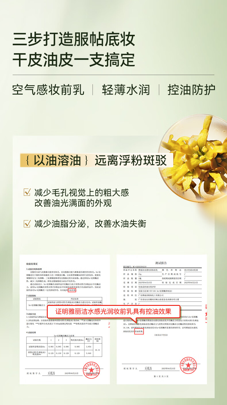 雅丽洁水感光润妆前乳35g 情人节男女学生礼物 【1支】光润妆前乳35g