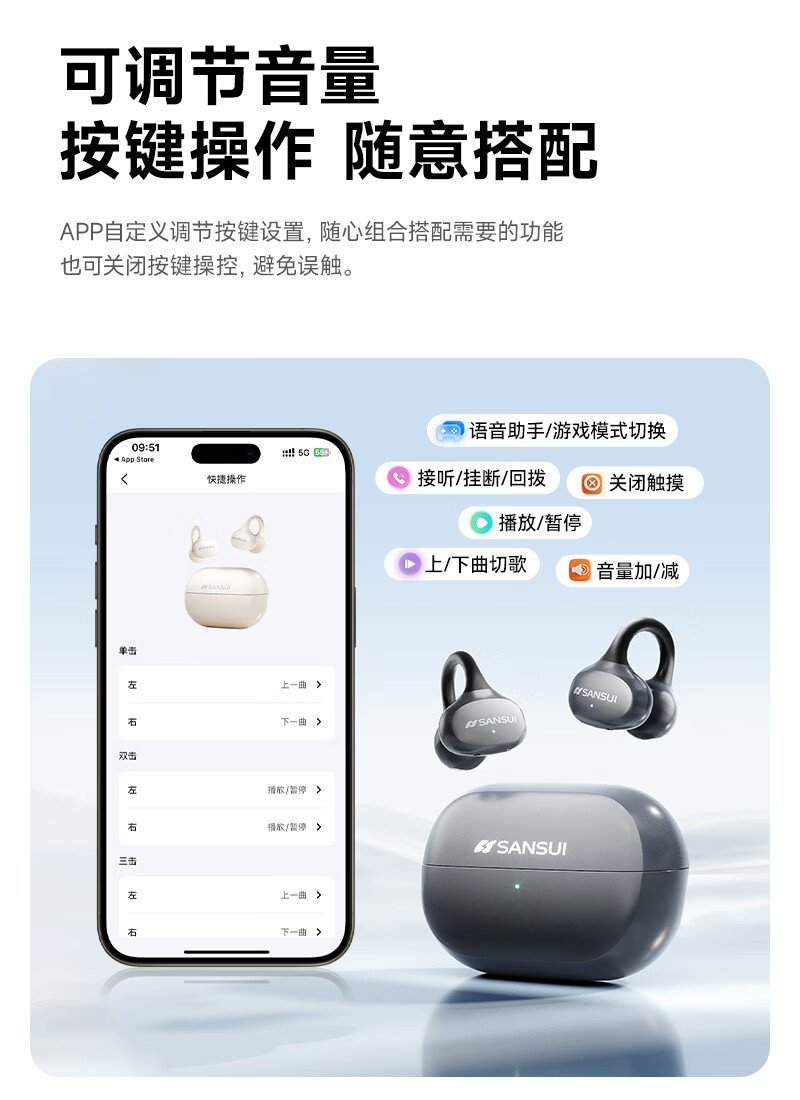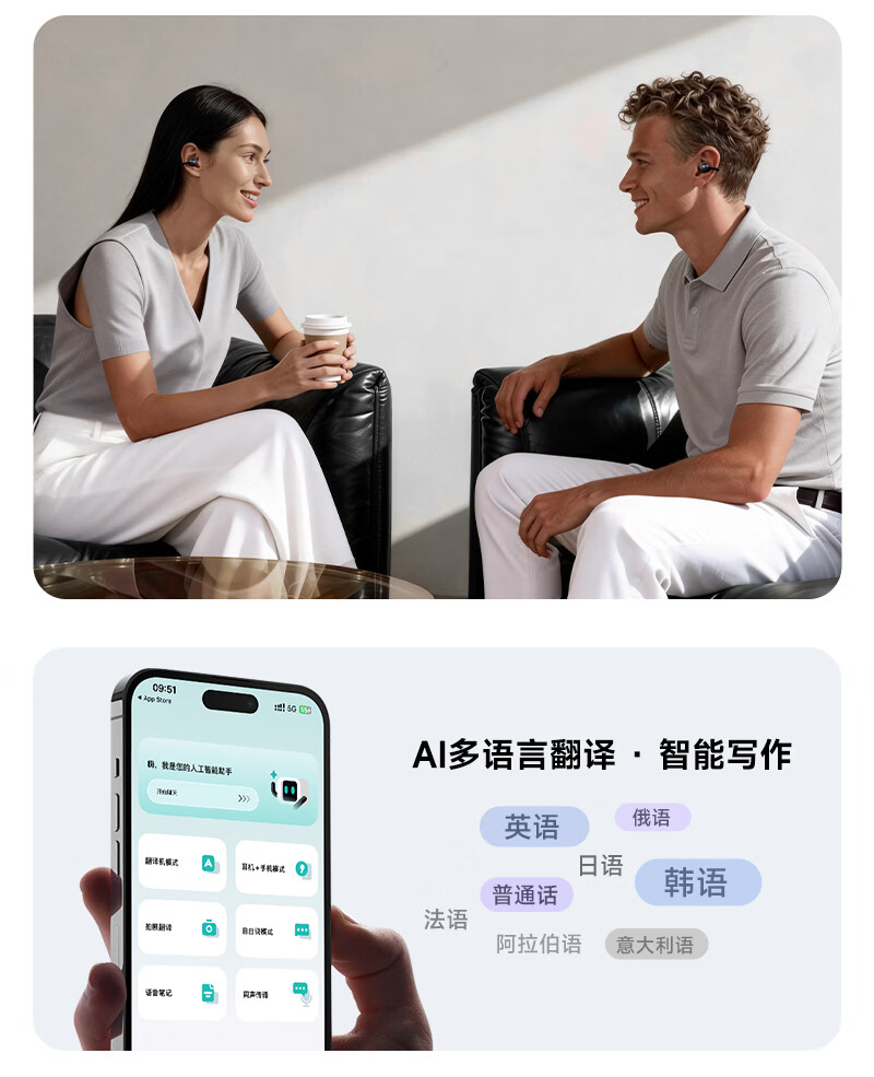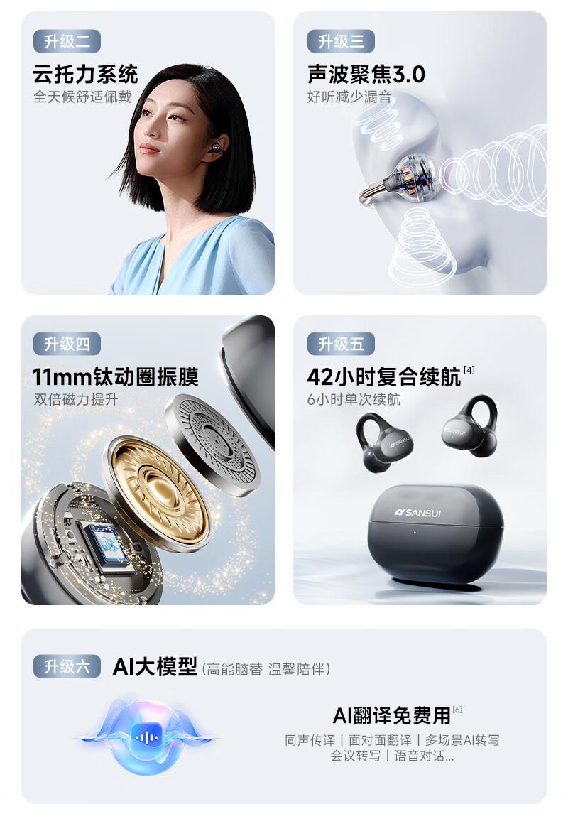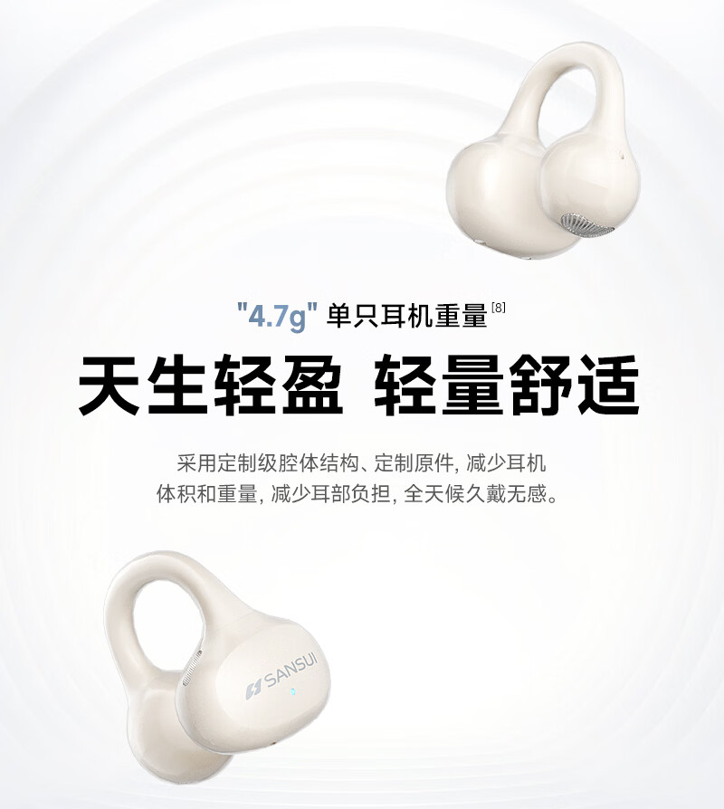 音贝奇新款ClipAir无线蓝牙耳机AI翻译耳夹式气骨传导概念开放式耳机不入耳运动挂耳式