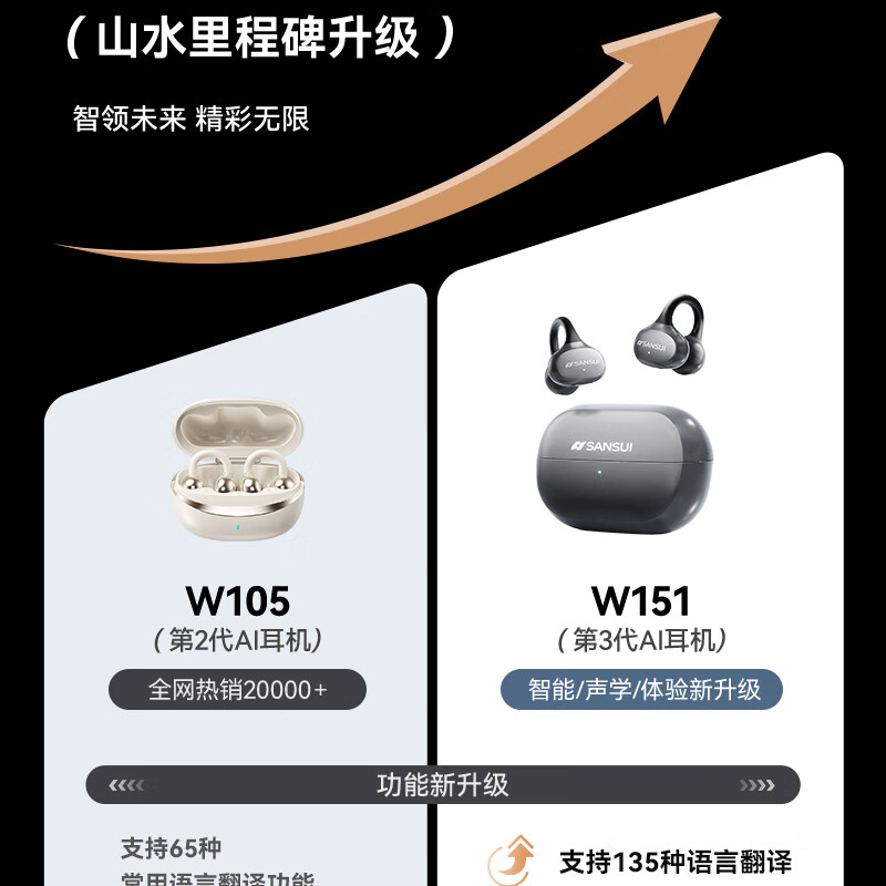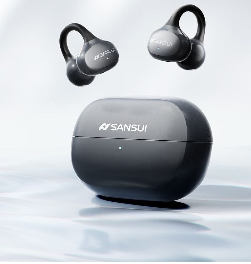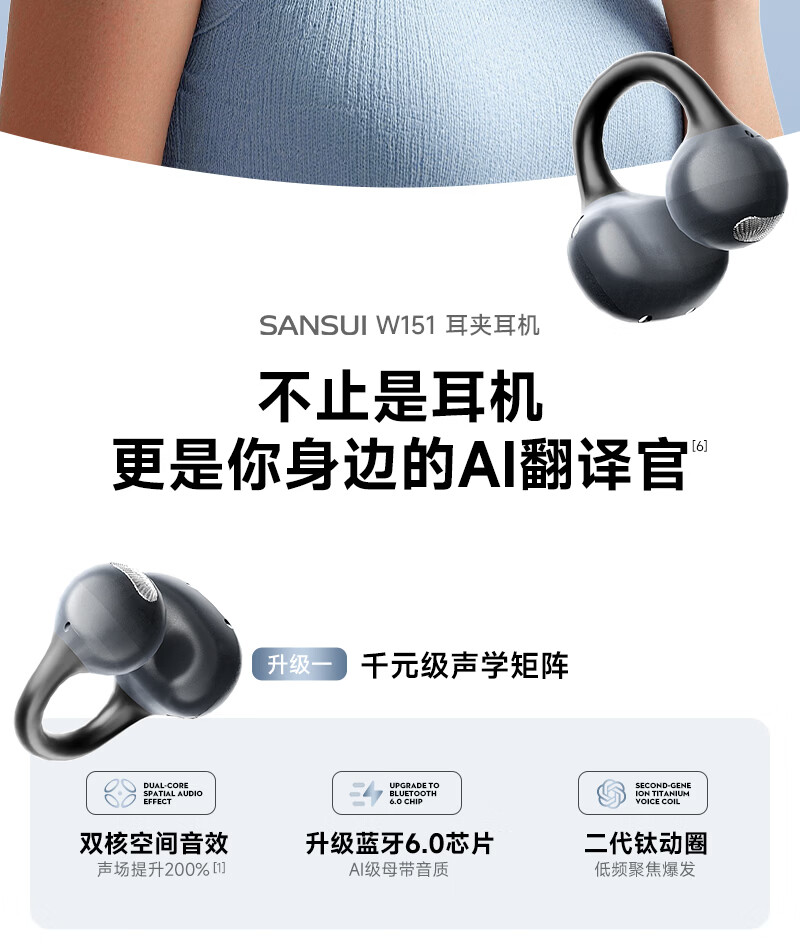 山水(SANSUI)W151【2026重磅升级丨AI翻译】蓝牙耳机夹耳式 骨传导概念耳夹无线开放跑步运动通话长续航 橙
