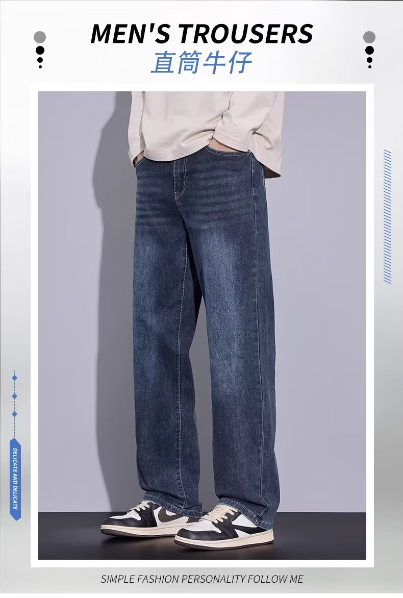真维斯2026秋季新款牛仔裤男士潮流百搭直筒长裤宽松弹力休闲长裤子男款 蓝色 28