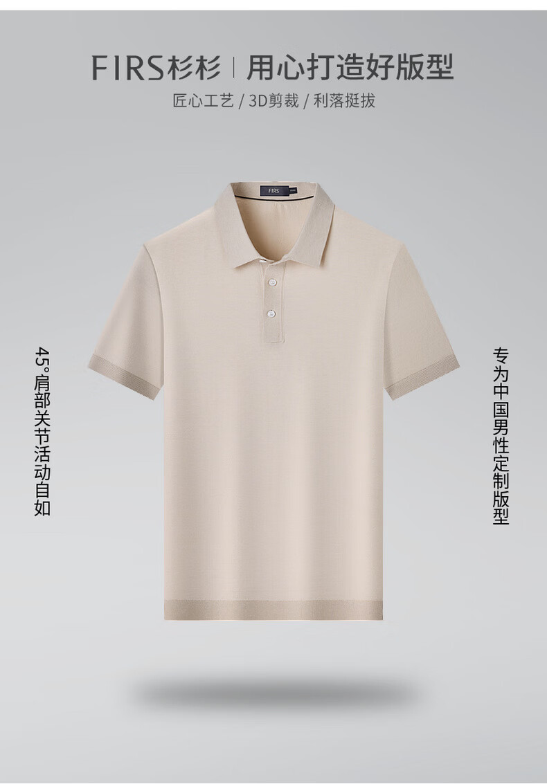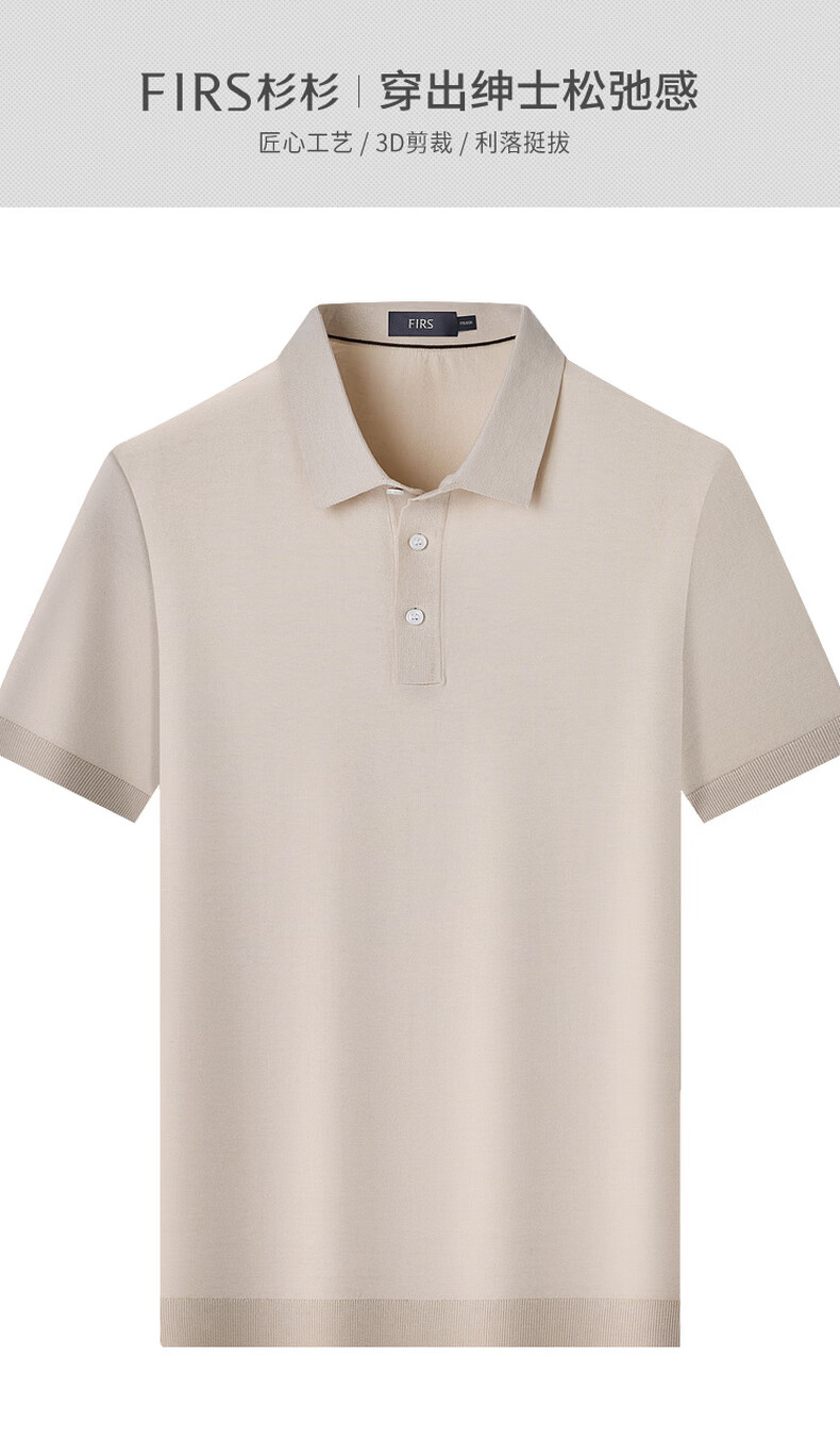 杉杉【28%桑蚕丝】2026夏季短袖Polo衫男针织翻领T恤 杏色 M