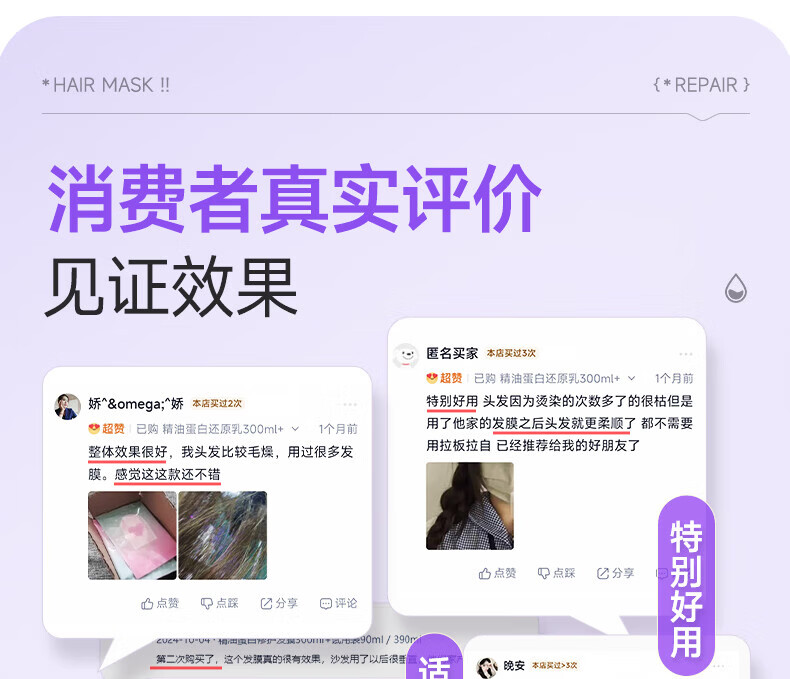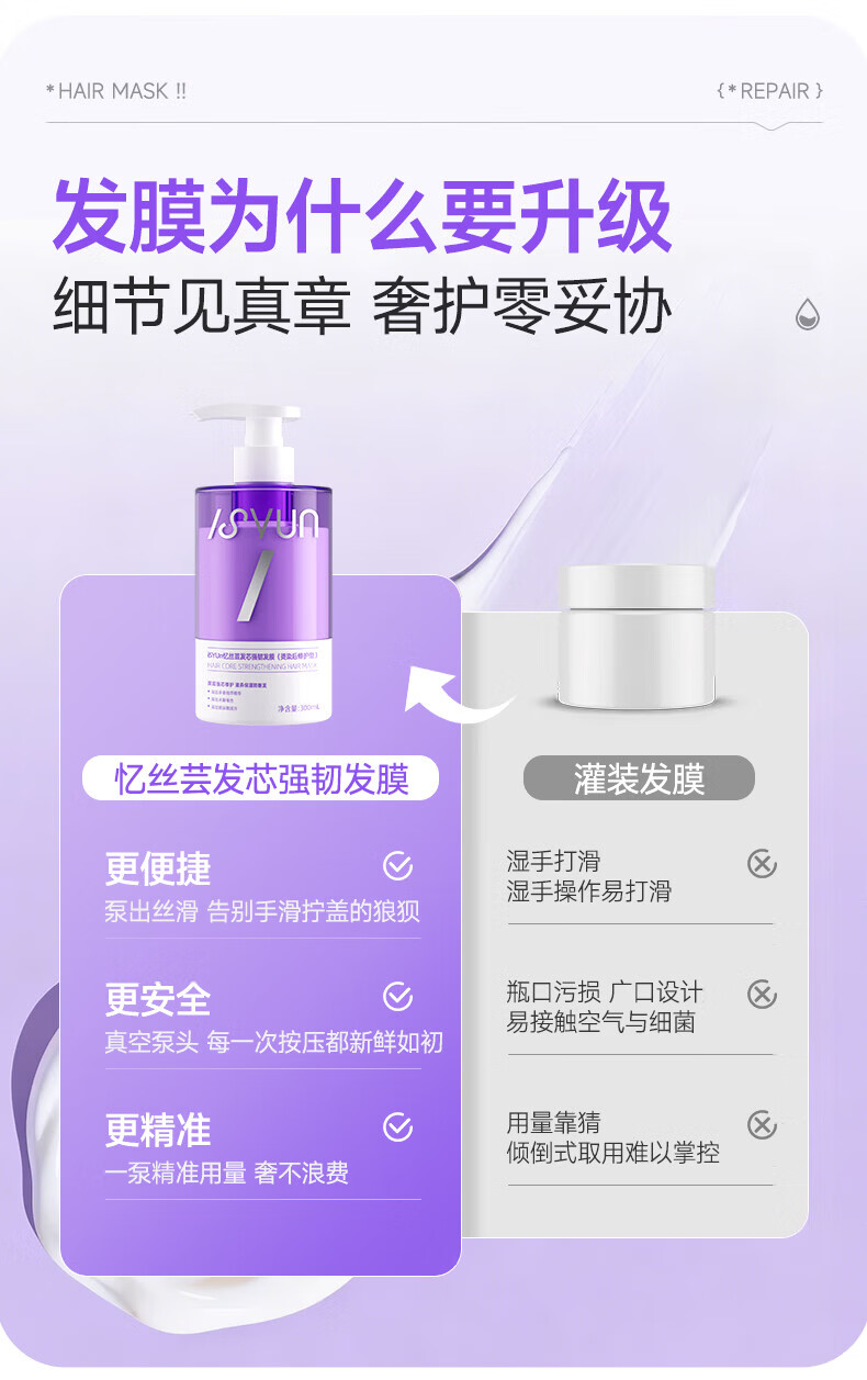 忆丝芸发膜蛋白营养修复头发防掉发柔顺护发素烫染受损干枯毛躁女士专用 精油蛋白发膜300ml