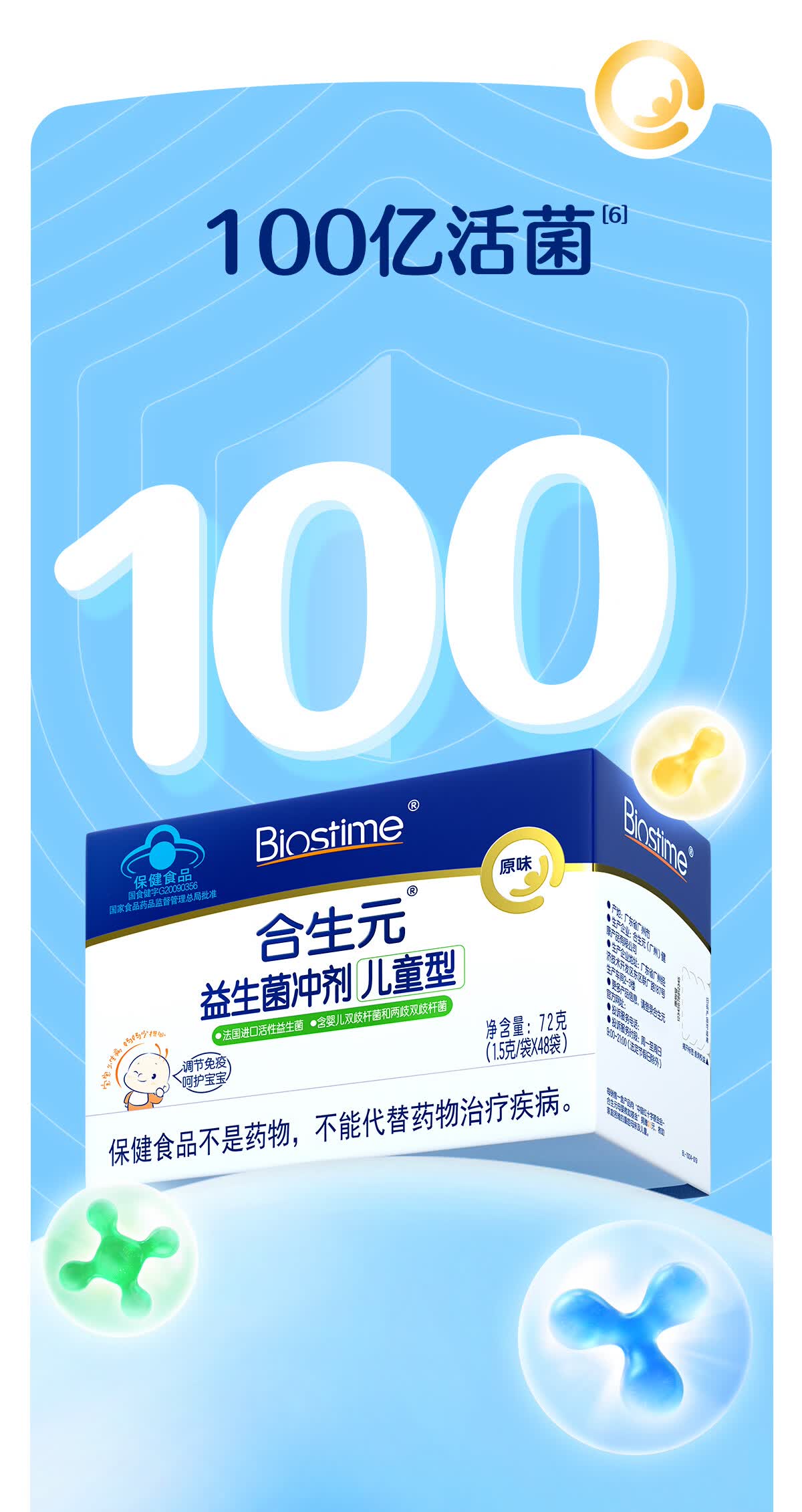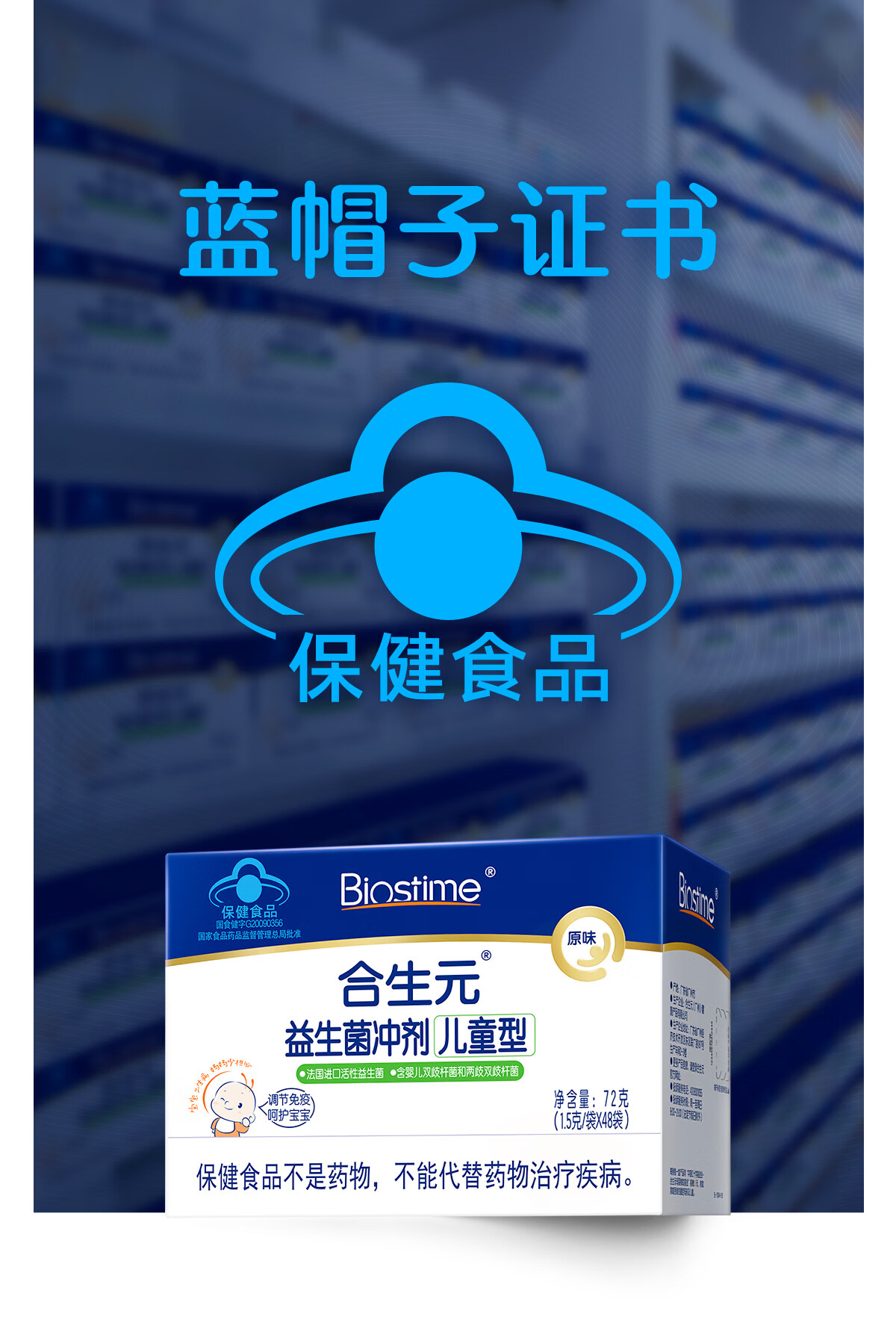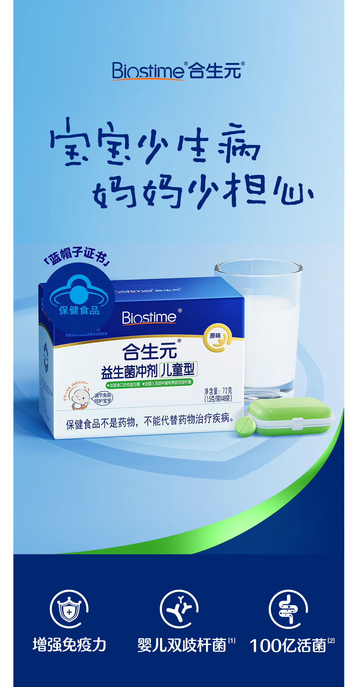 合生元(BIOSTIME)益生菌婴幼儿儿童 原味小蓝帽 调理肠胃脾胃虚弱增强免疫力 【药房同款】原味 30袋*1盒