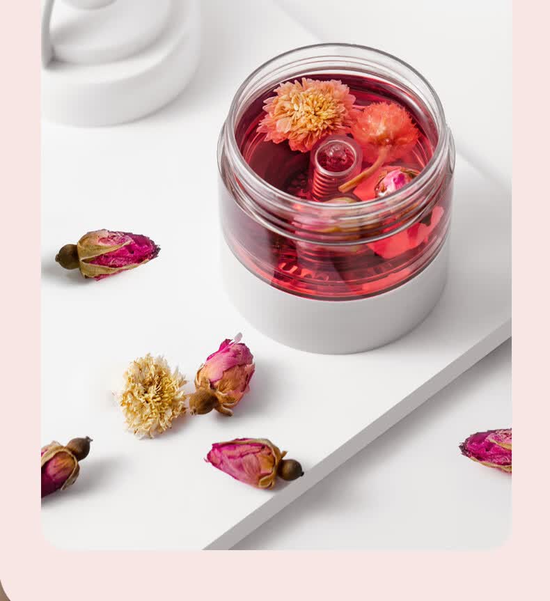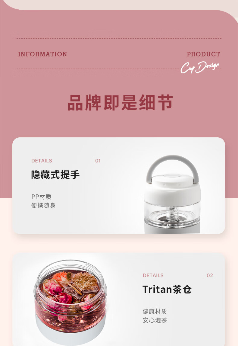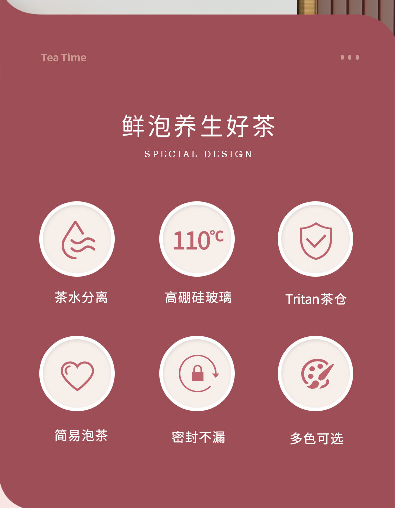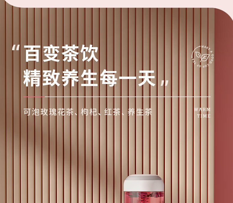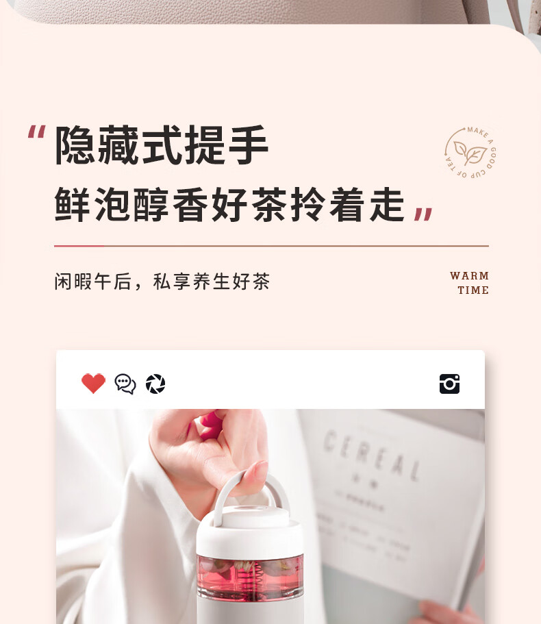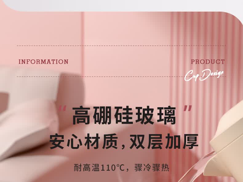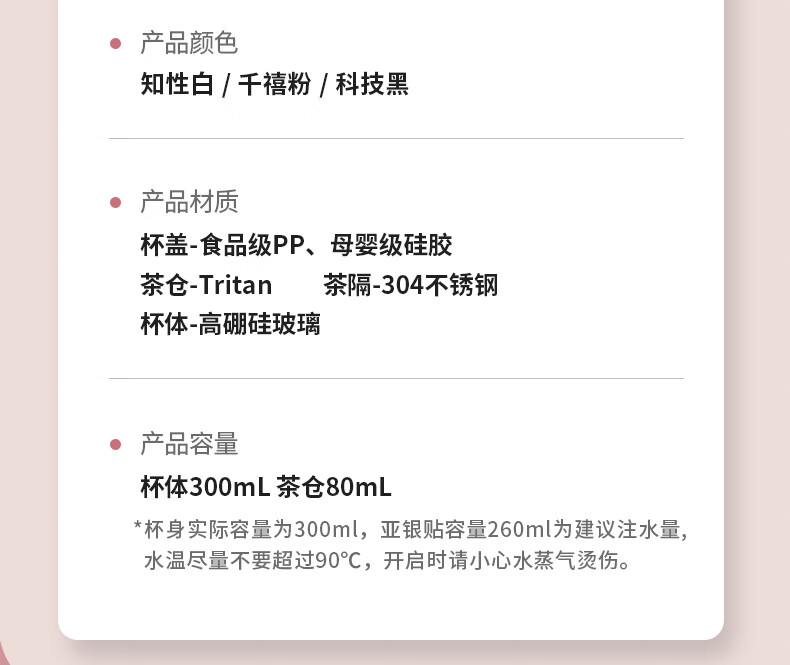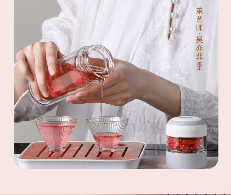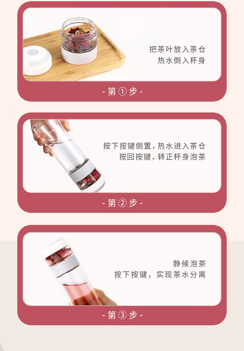 特美刻(TOMIC)双层加厚玻璃杯高硼硅玻璃水杯女士高颜值茶水分离泡茶 千禧粉260ml