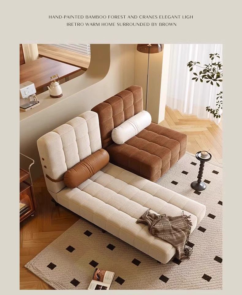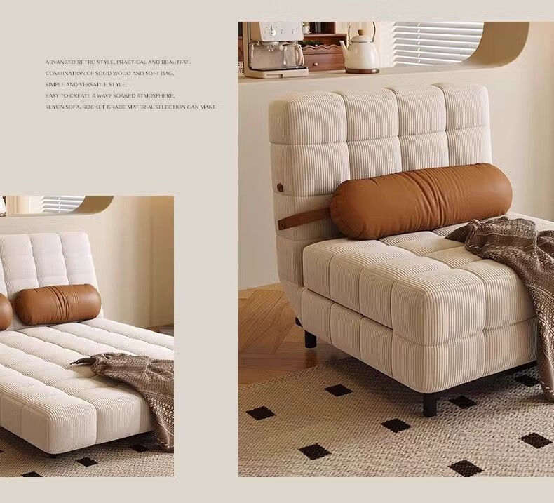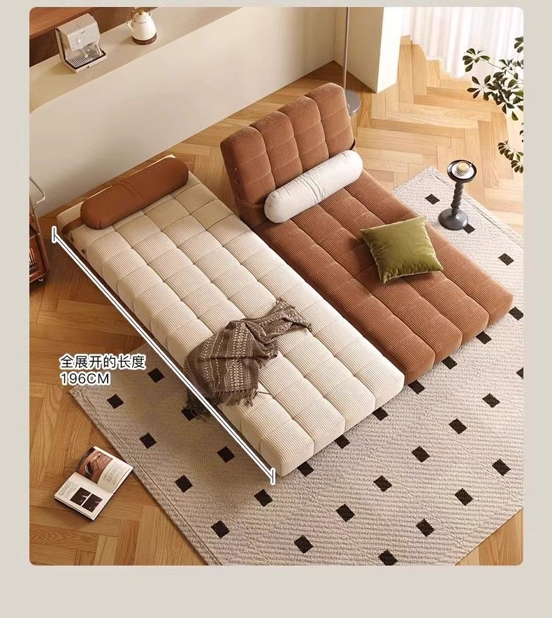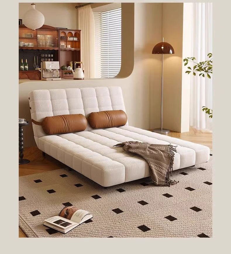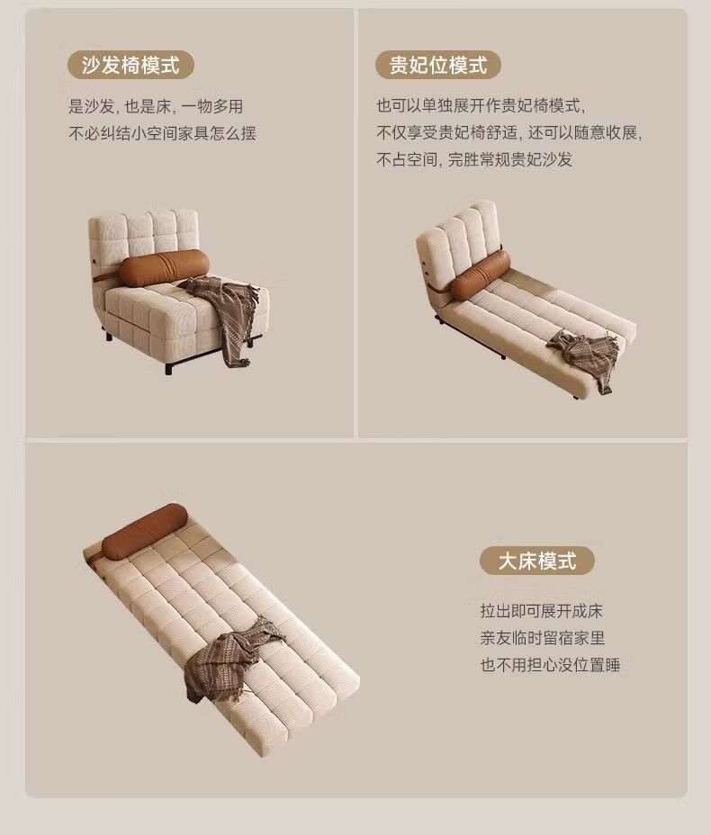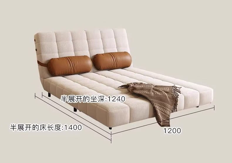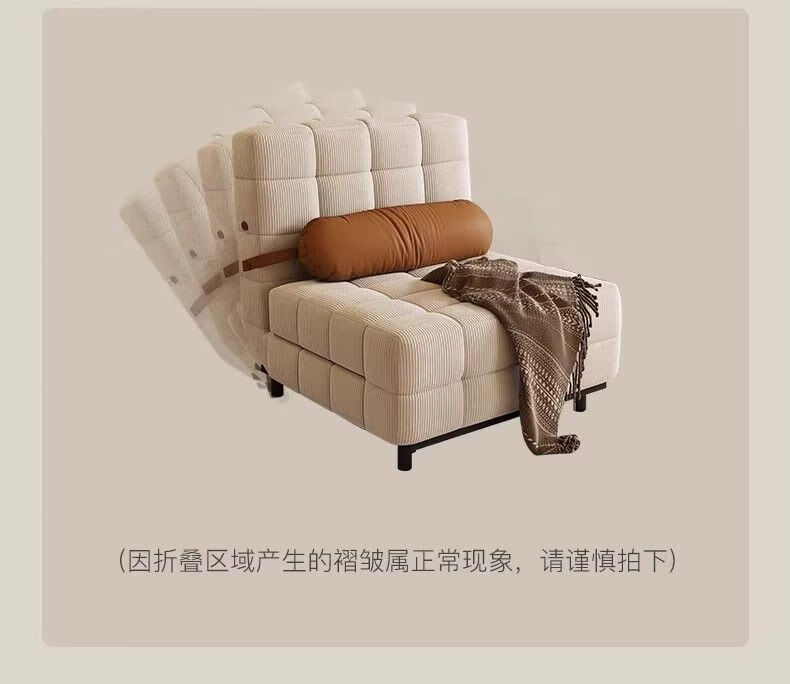 鼎禾奶油风可调节折叠伸缩两用沙发床北欧小户型客厅单双人沙发 【猫抓皮】米白色 1.4米【顺丰送货上门】