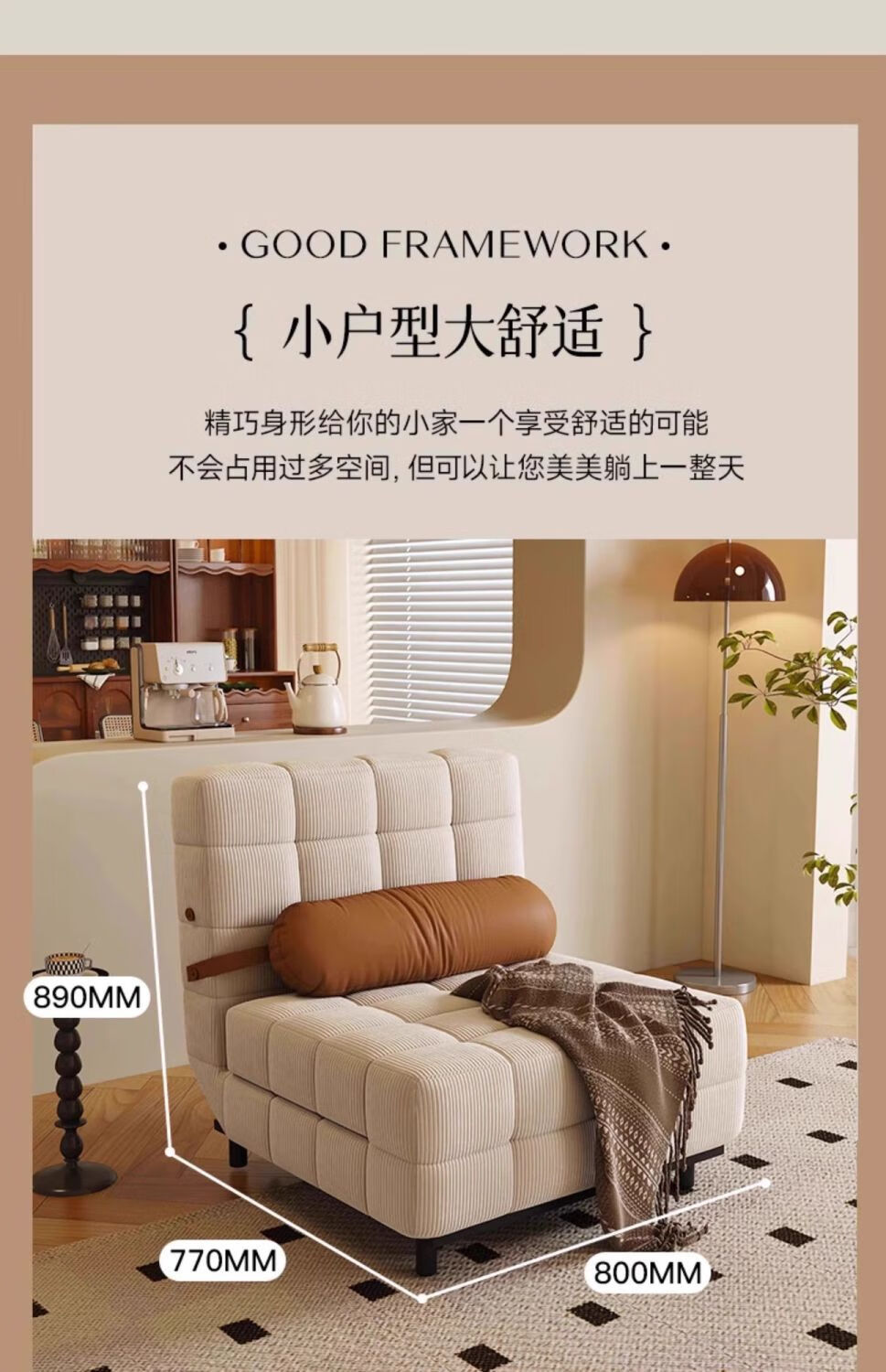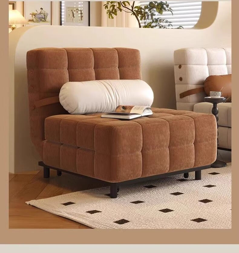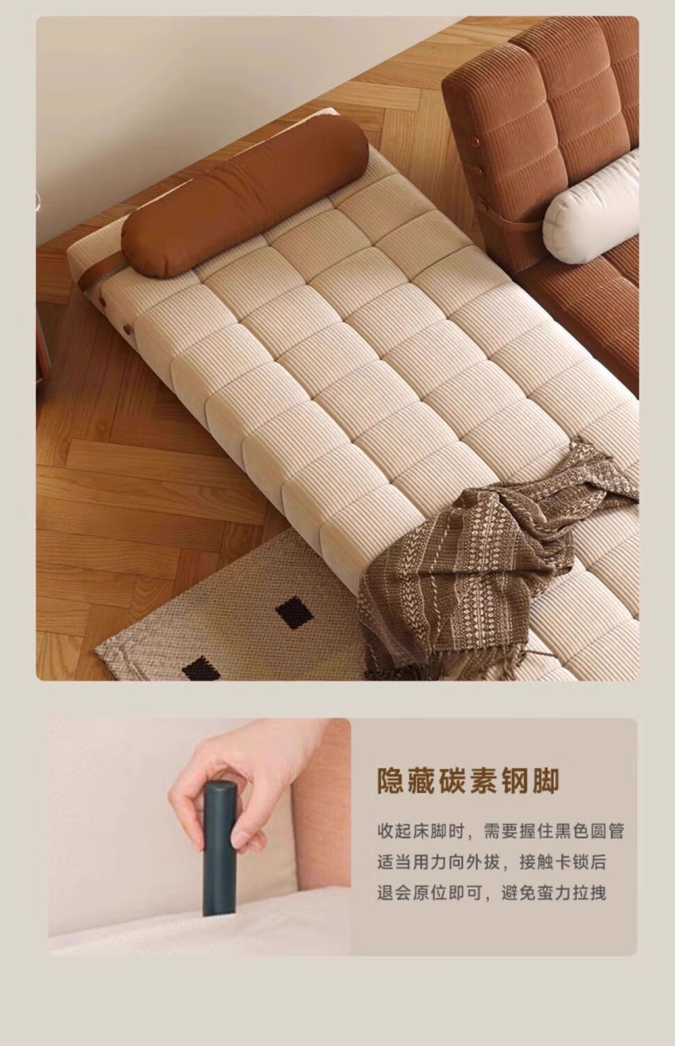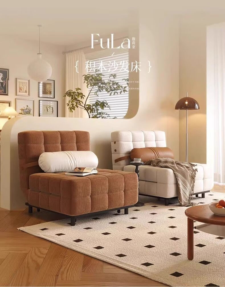 鼎禾奶油风可调节折叠伸缩两用沙发床北欧小户型客厅单双人沙发 【猫抓皮】米白色 1.4米【顺丰送货上门】
