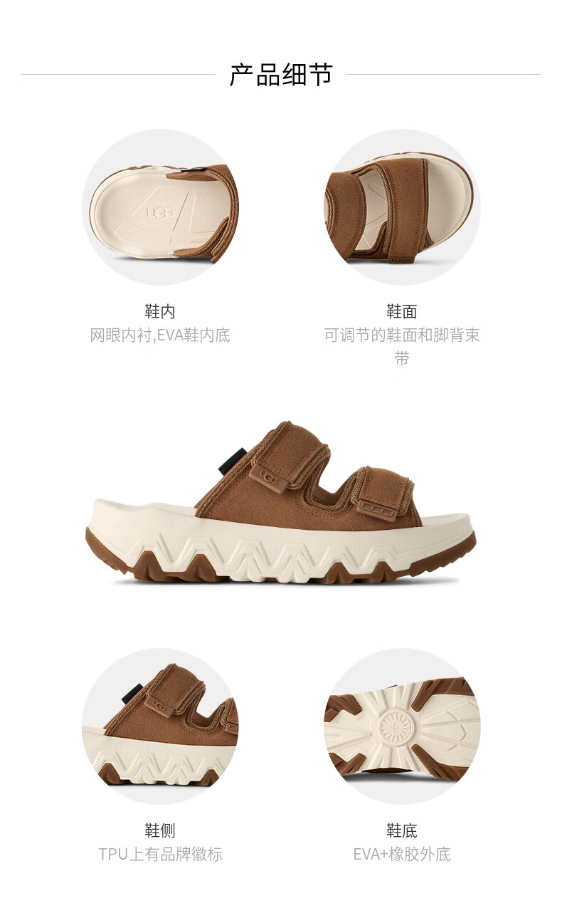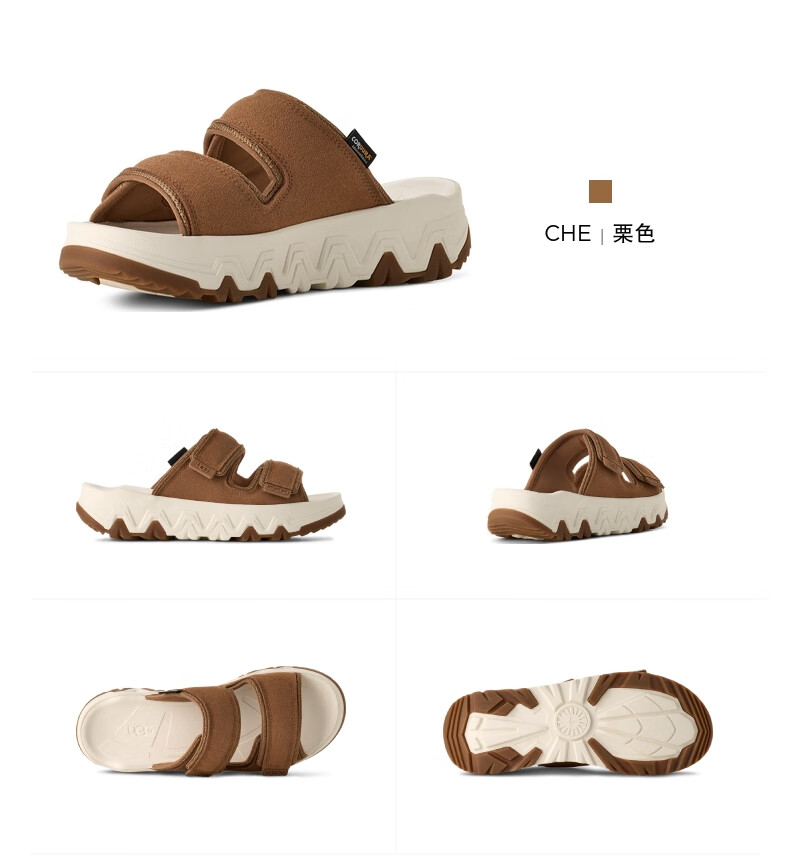 UGG夏季新款男女同款时尚厚底露趾可调节束带休闲凉拖鞋 1167497 CHE | 栗色 38