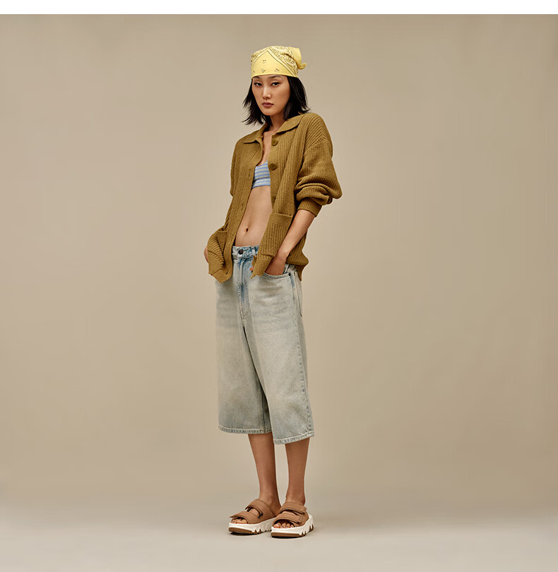 名创优品(MINISO)洞洞鞋女款eva防滑防臭沙滩鞋增高凉拖鞋女夏季外穿情侣款 卡其+海洋星星 44-45