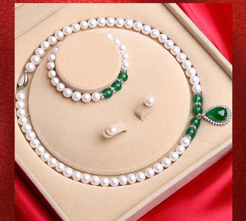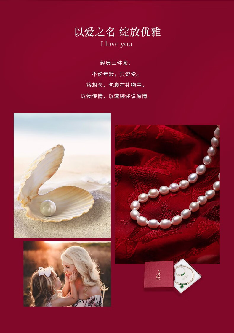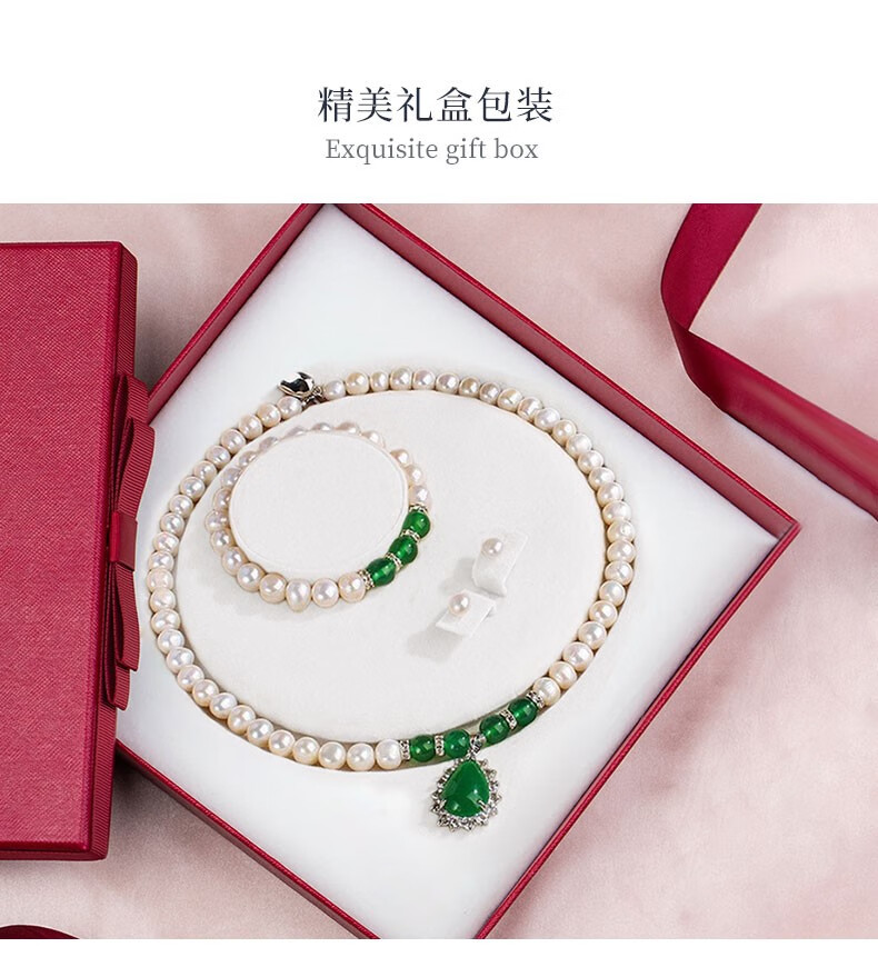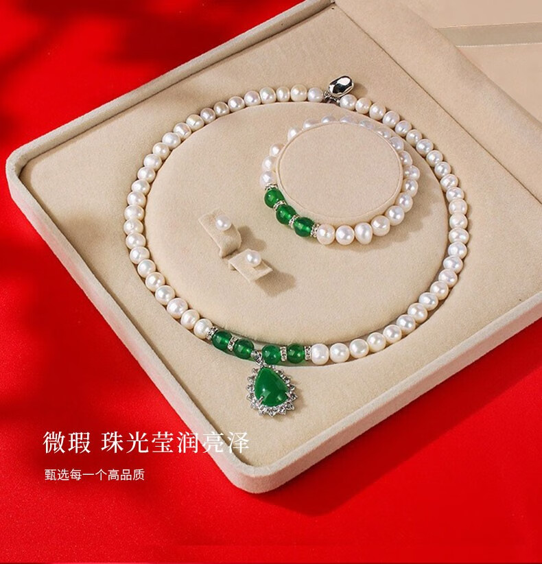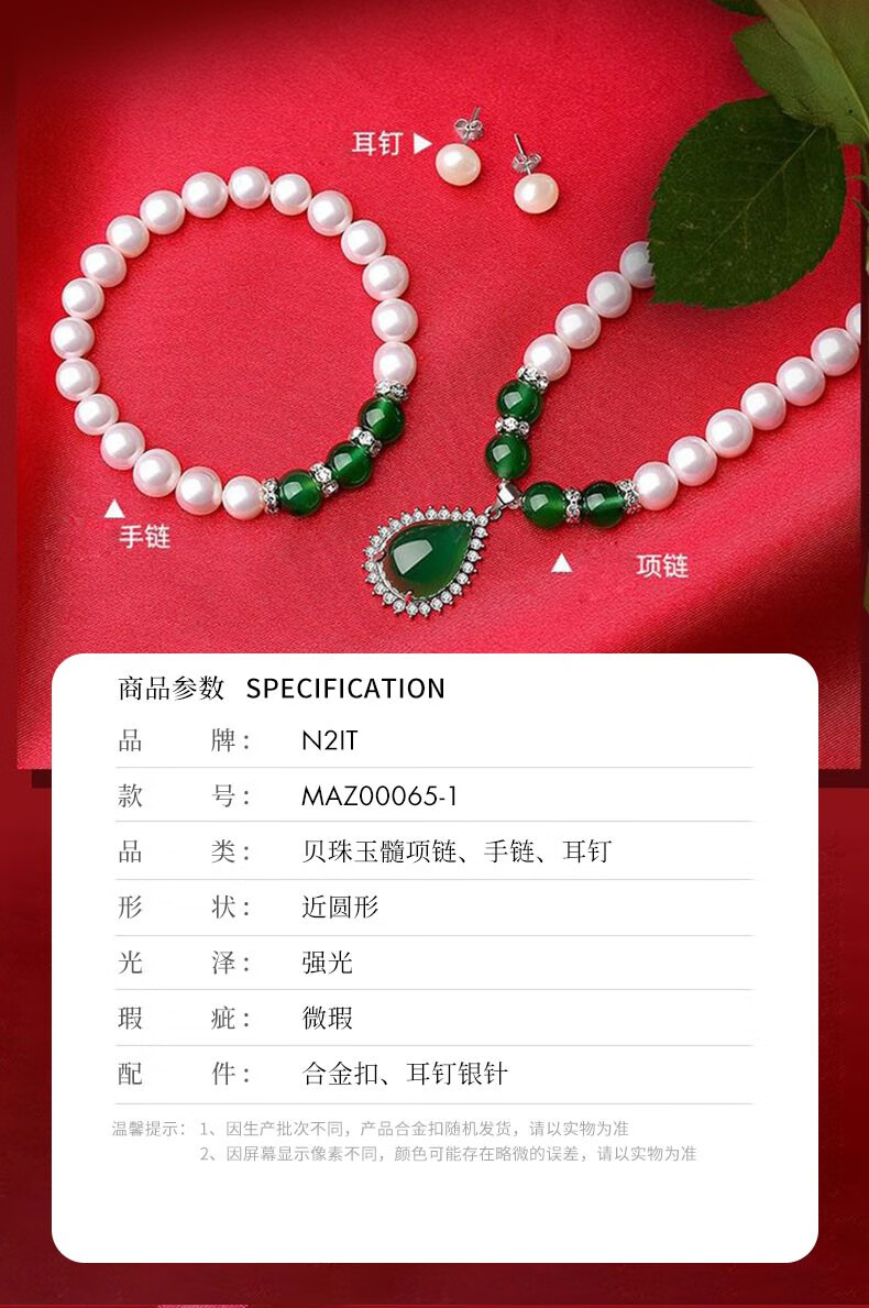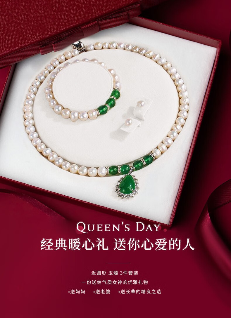 N2it 甄爱仿珍珠贝珠吊坠套装送妈妈款 母亲节礼物女节送妈妈礼物XP 贝珠玉髓三件套带礼盒