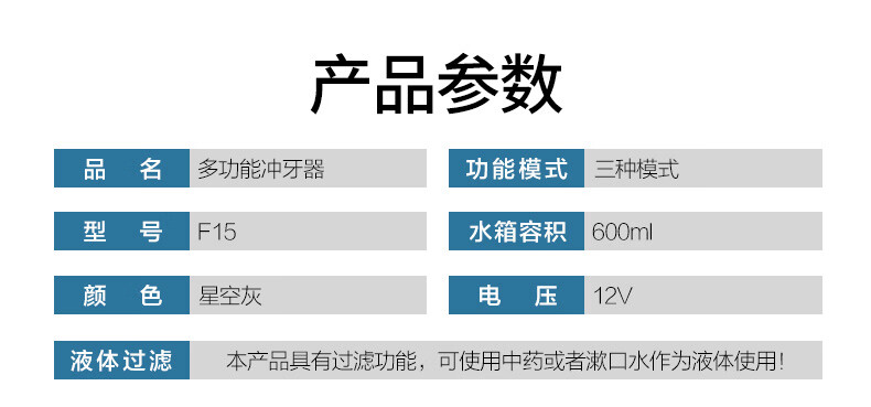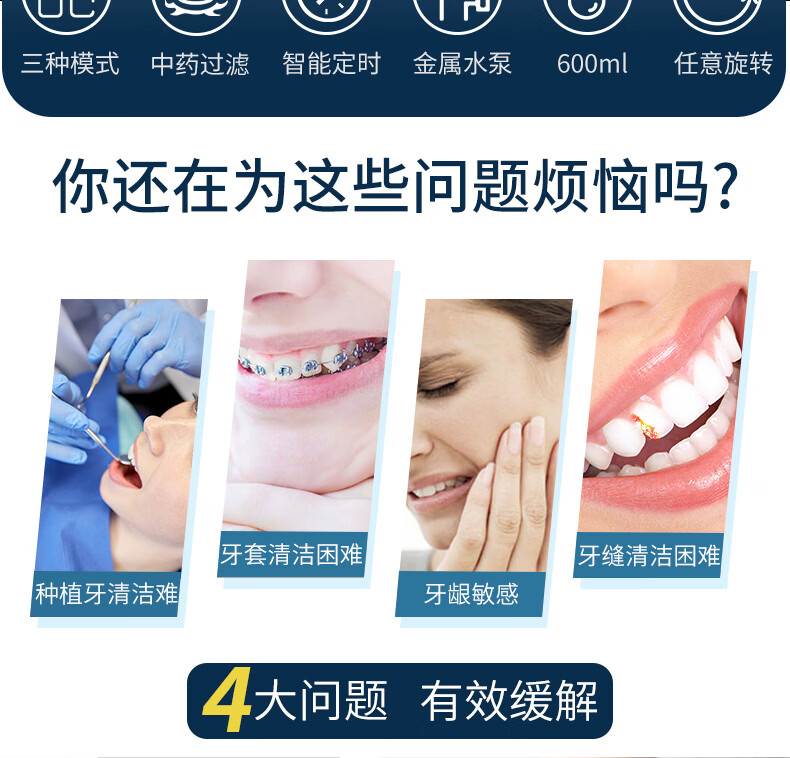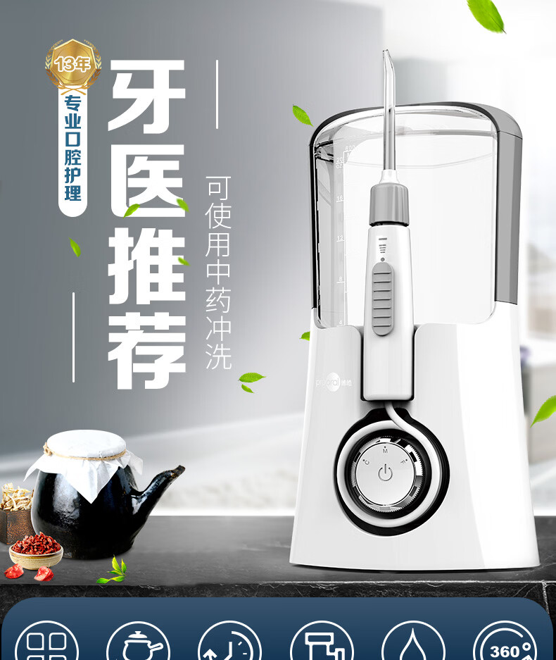博皓(prooral)电动冲牙器家用台式洗牙器冲洗器牙齿清洁器便携式水牙线正畸牙缝剔牙神器牙垢去除工具口腔清洗器 星空灰| 多功能款