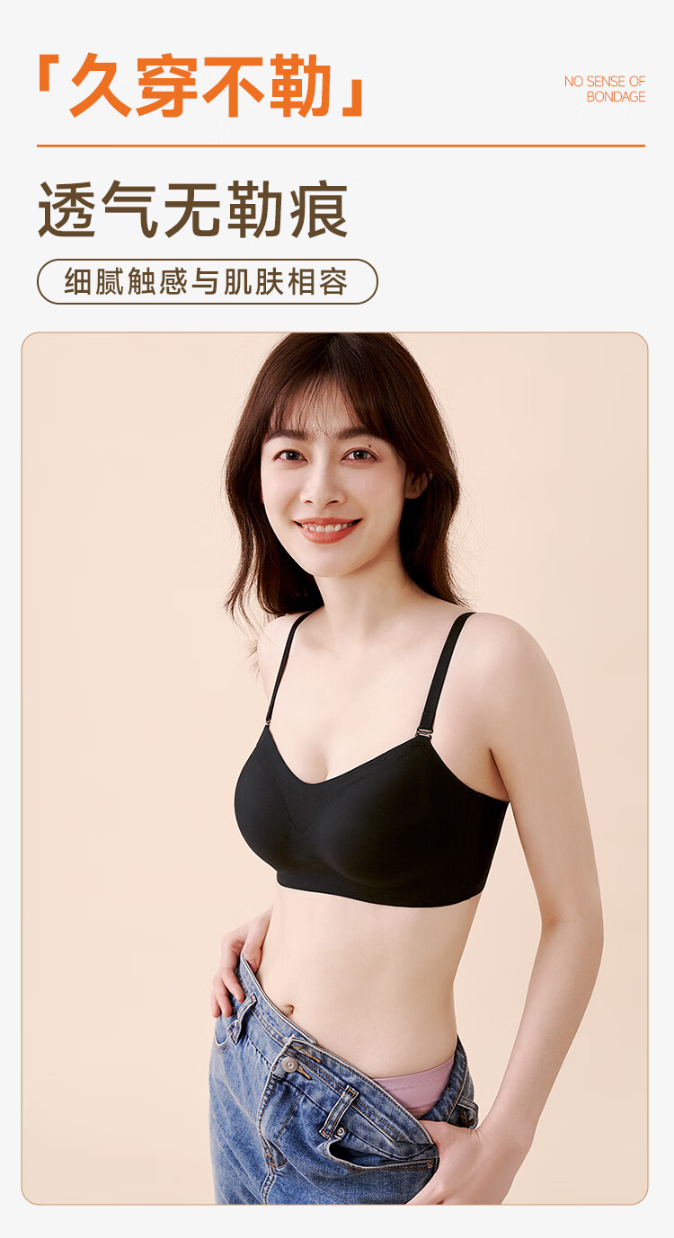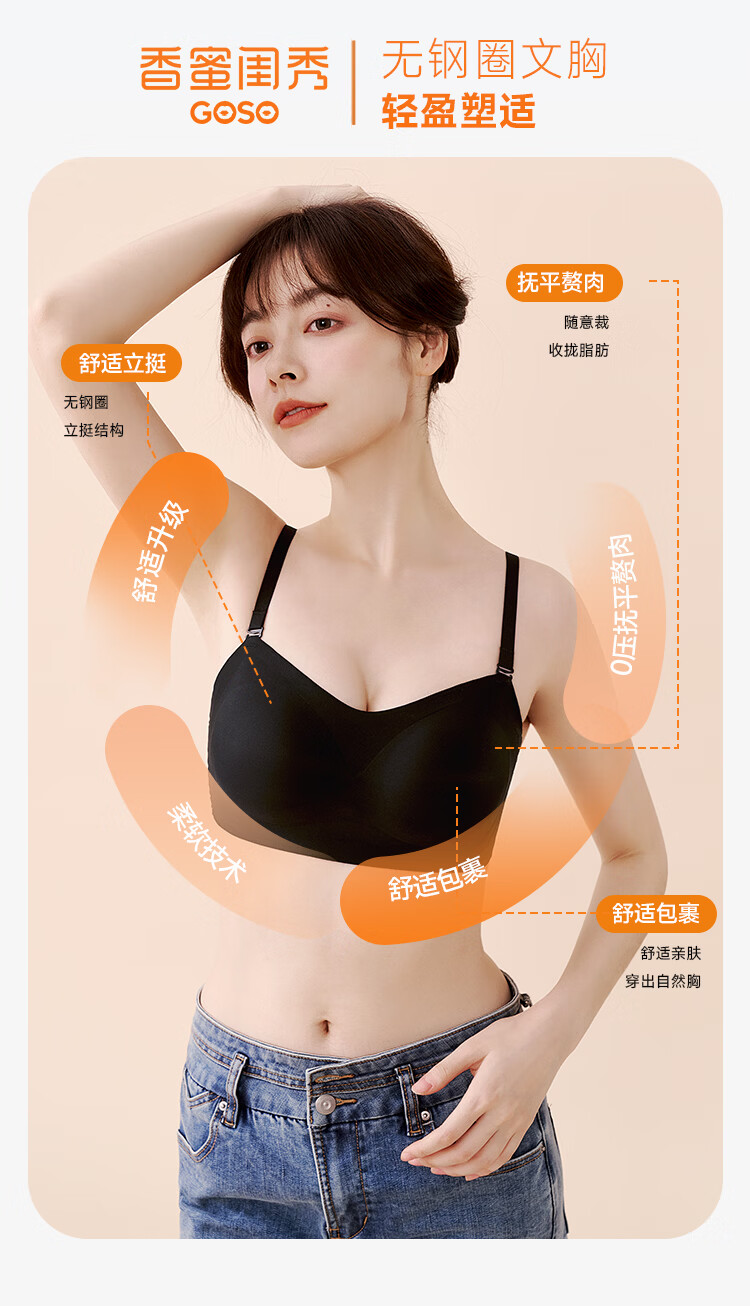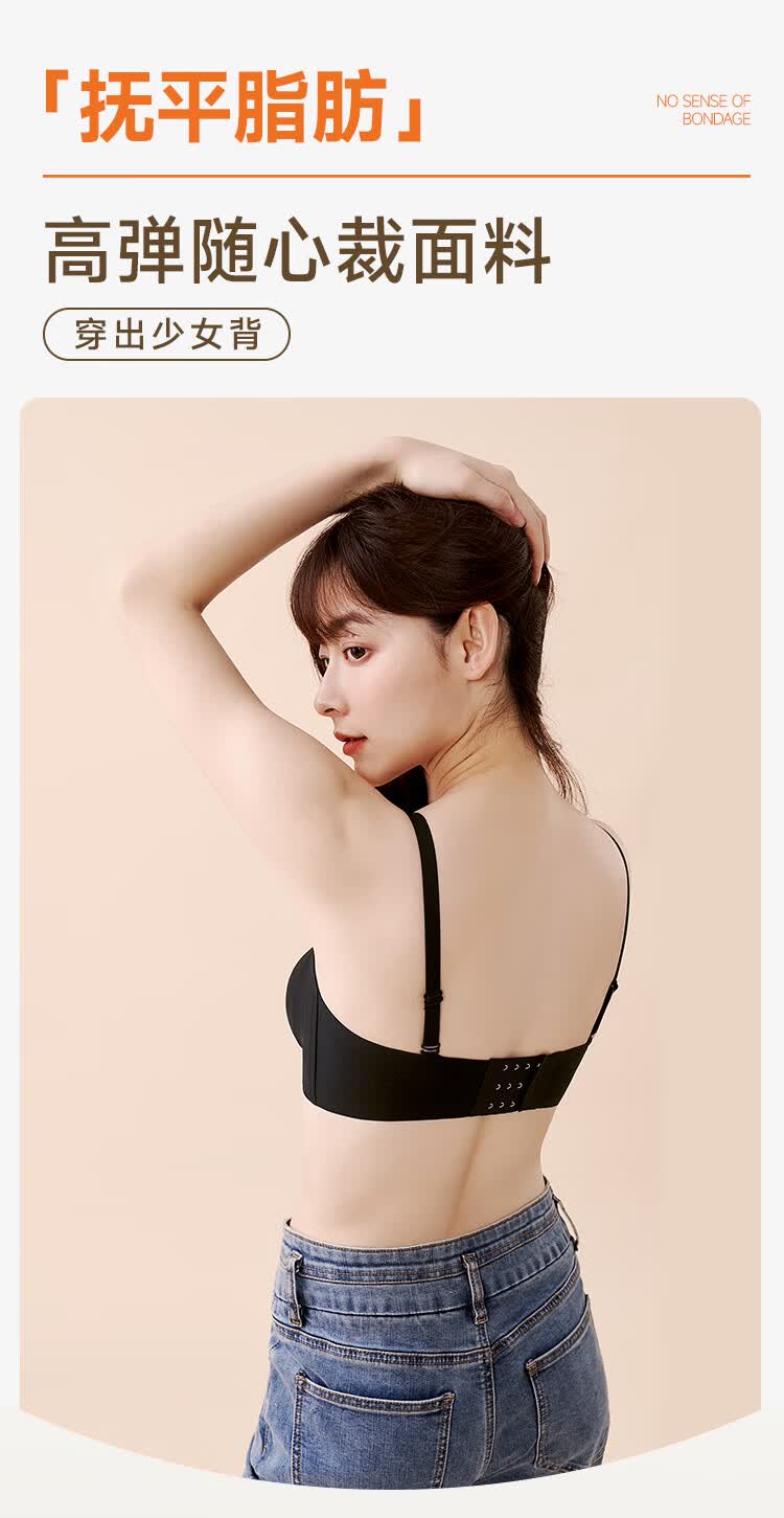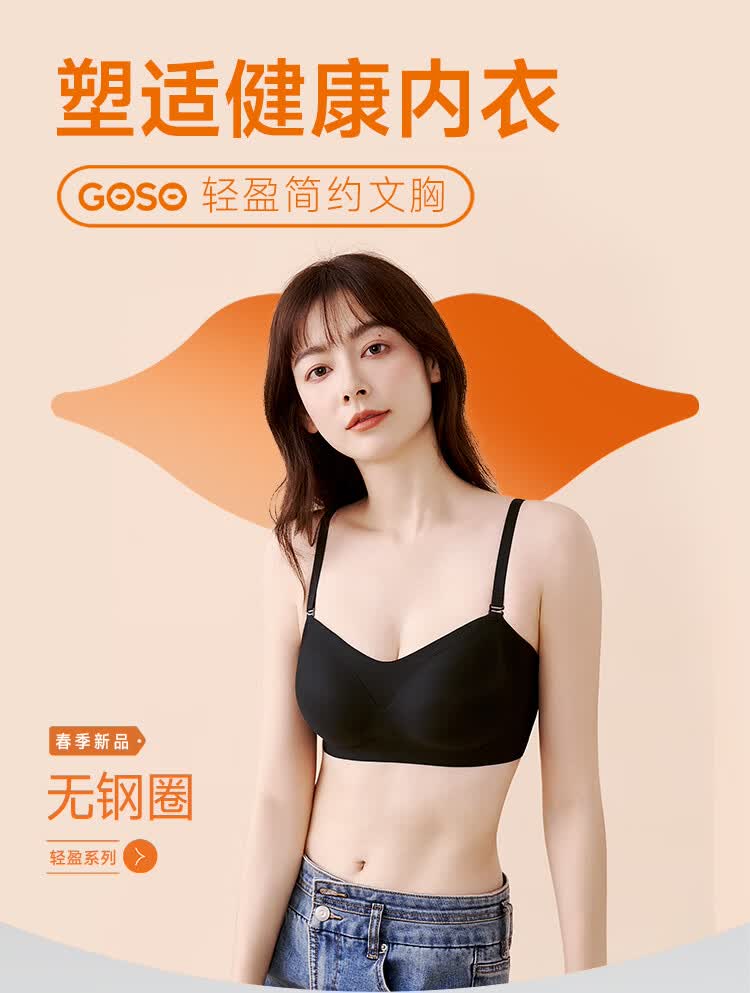 GOSO夏款无钢圈舒适聚拢轻盈无痕美背光面少女抹胸文胸内衣 3212046黑色 (薄杯) 75B (34)