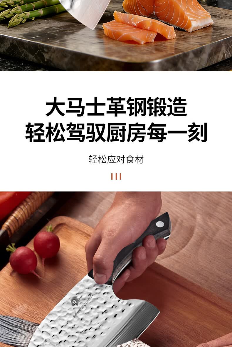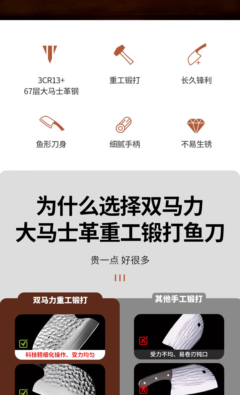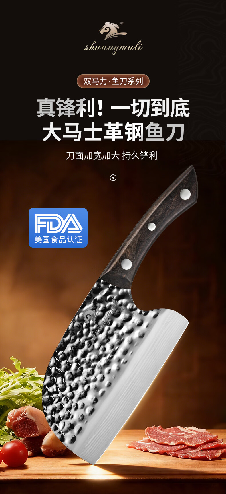 雙馬力双马力大马士革锻打菜刀家用厨师专用鱼头切肉切片刀具厨房现货 鱼刀