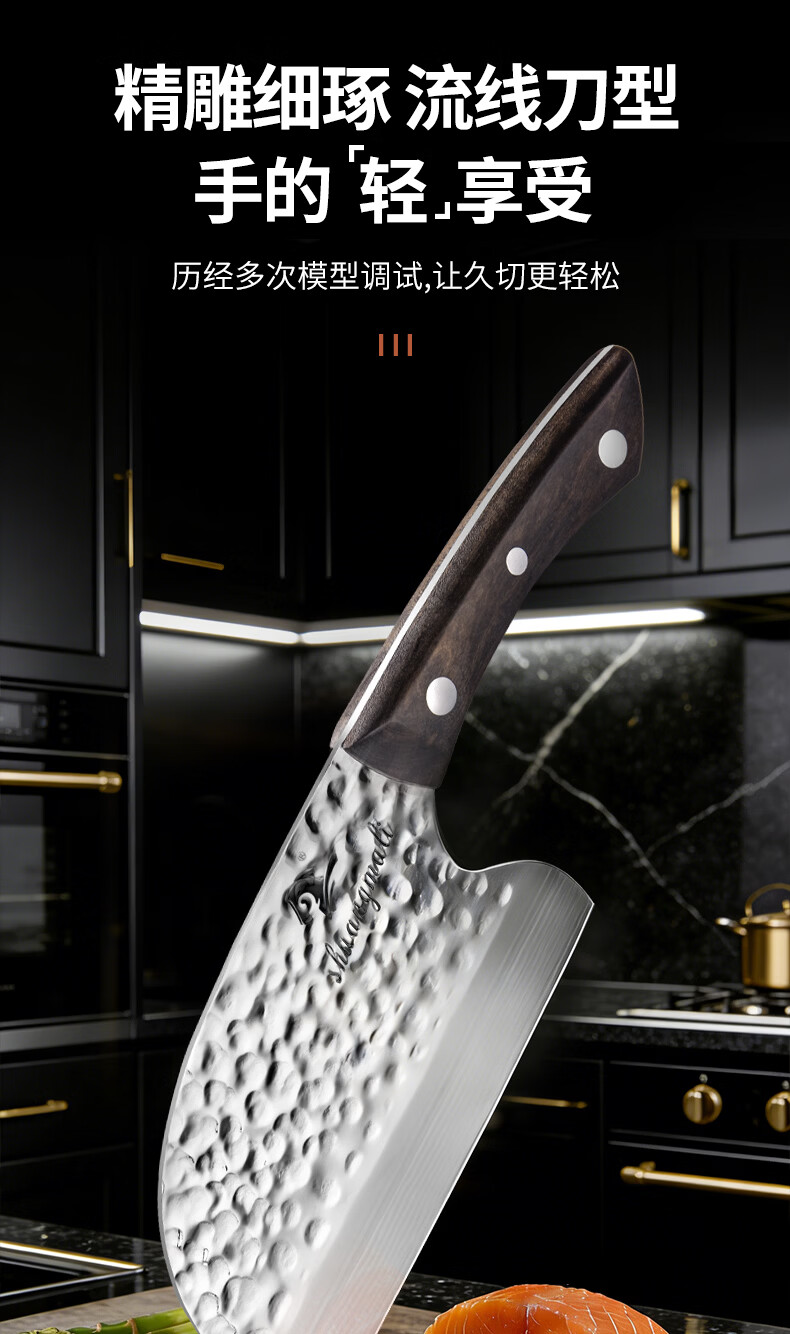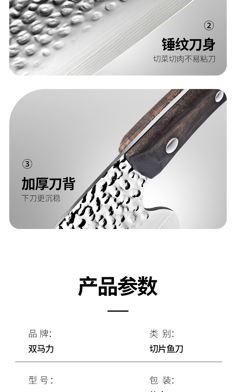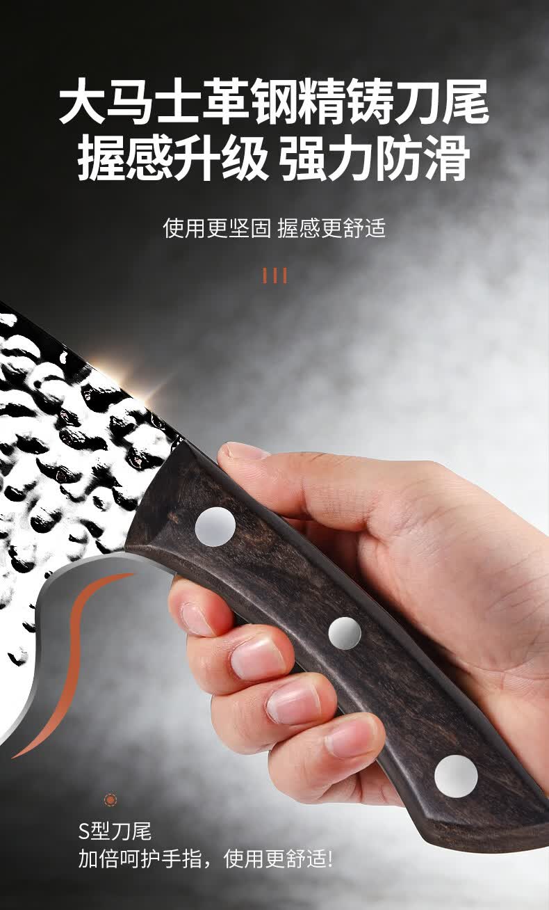 雙馬力双马力大马士革锻打菜刀家用厨师专用鱼头切肉切片刀具厨房现货 鱼刀