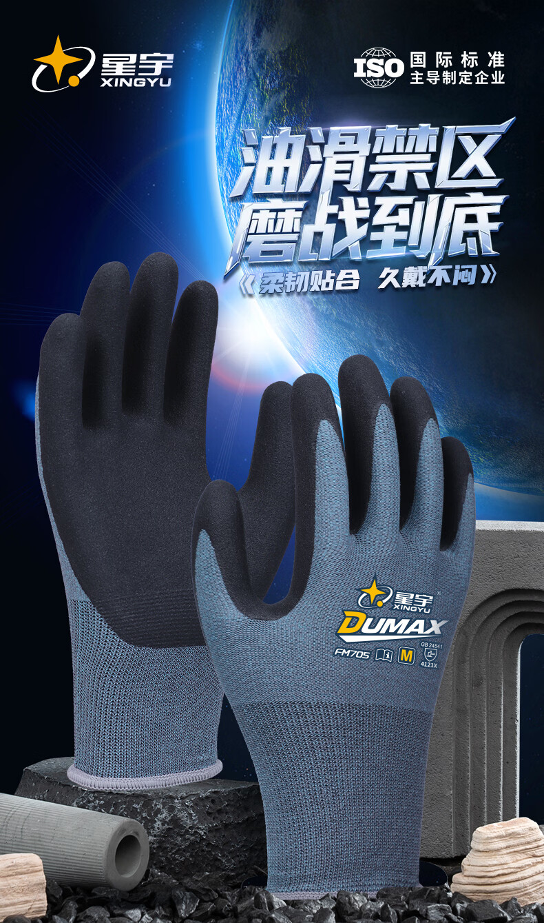 星宇(XINGYU)星宇劳保手套耐磨防滑耐用透气轻薄柔软舒适橡胶工地干活劳动防护汽修拧螺丝FM705 6双装【防滑透气】柔韧亲肤 M