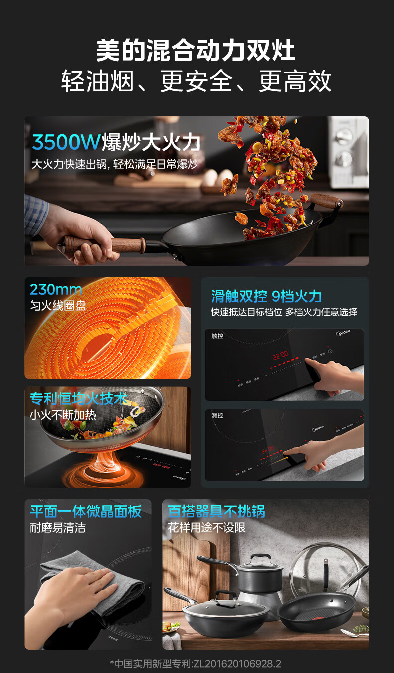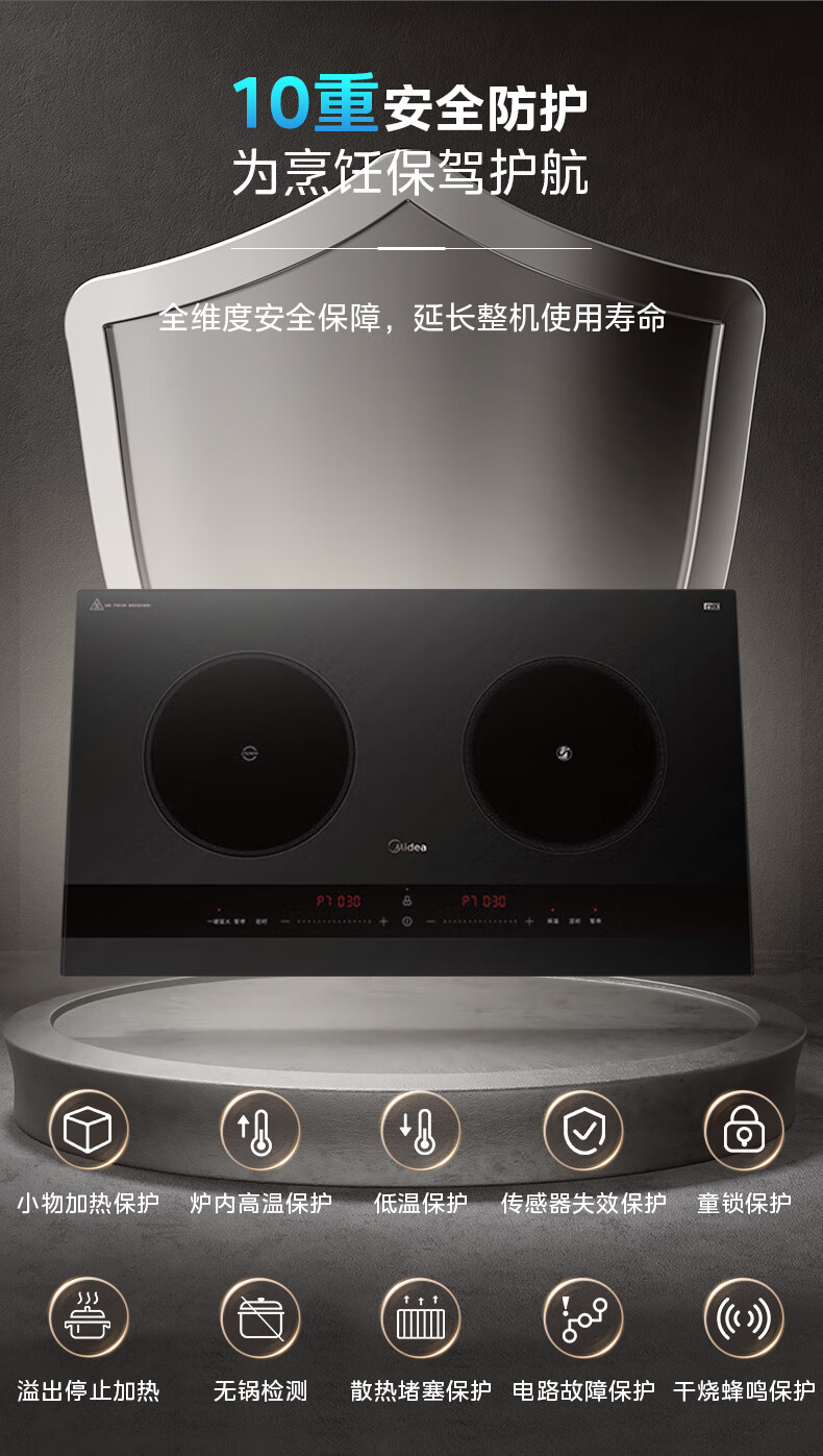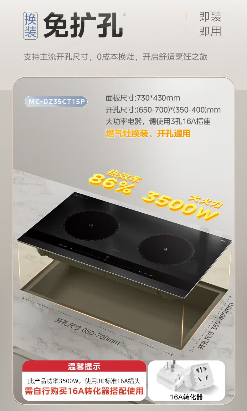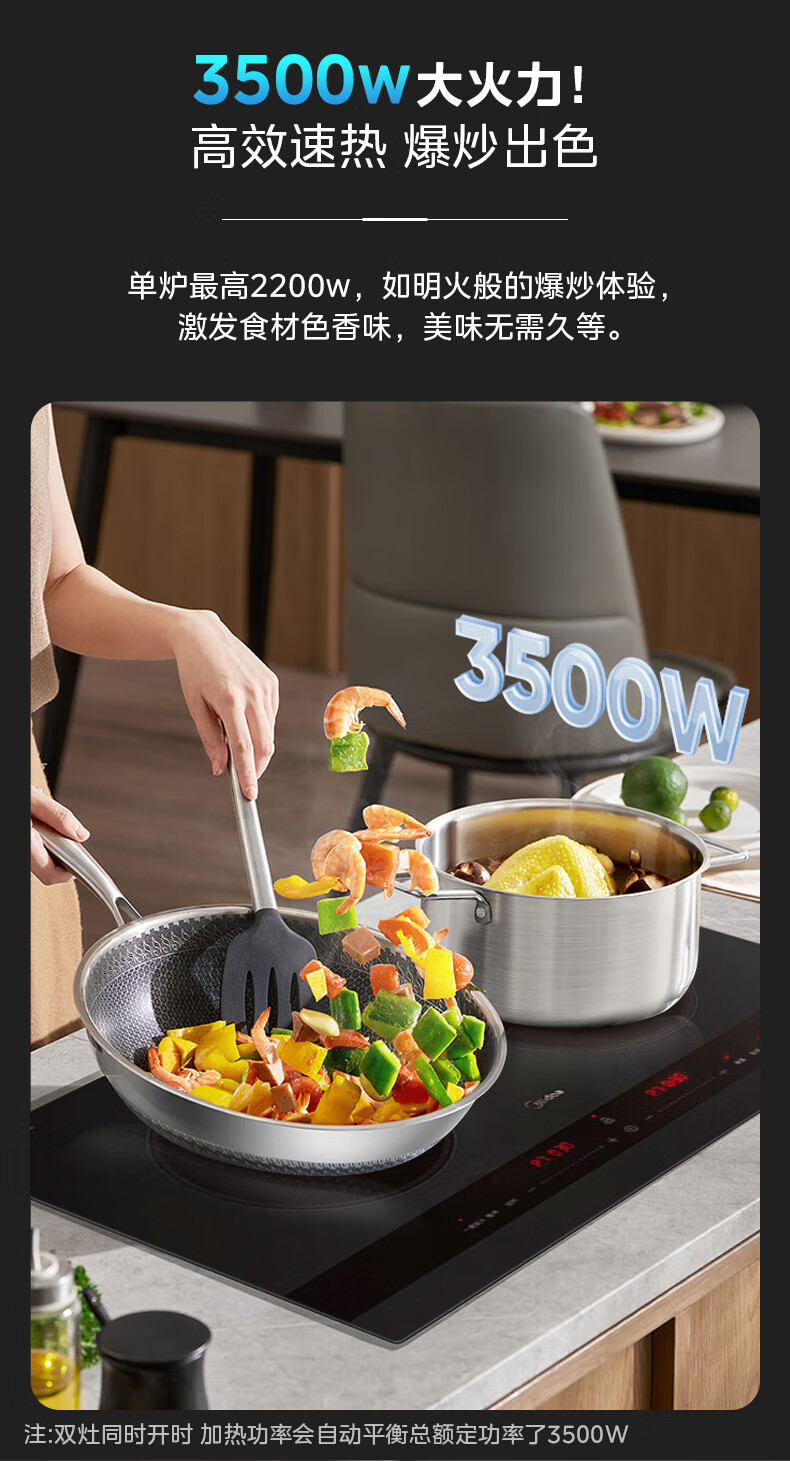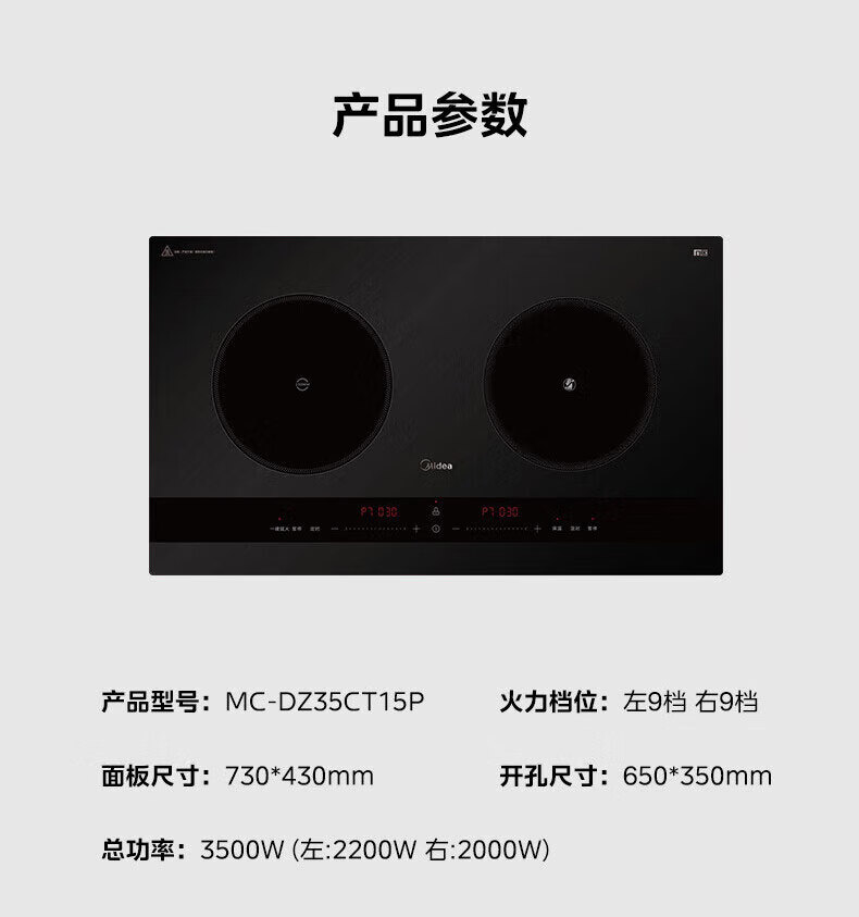 美的(Midea)凹面电磁炉嵌入式电磁双灶电陶炉 家用3500W大功率电池炉炒菜定时烹饪灶台一体面板DZ35D06Q