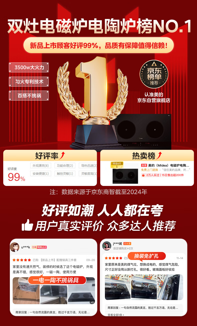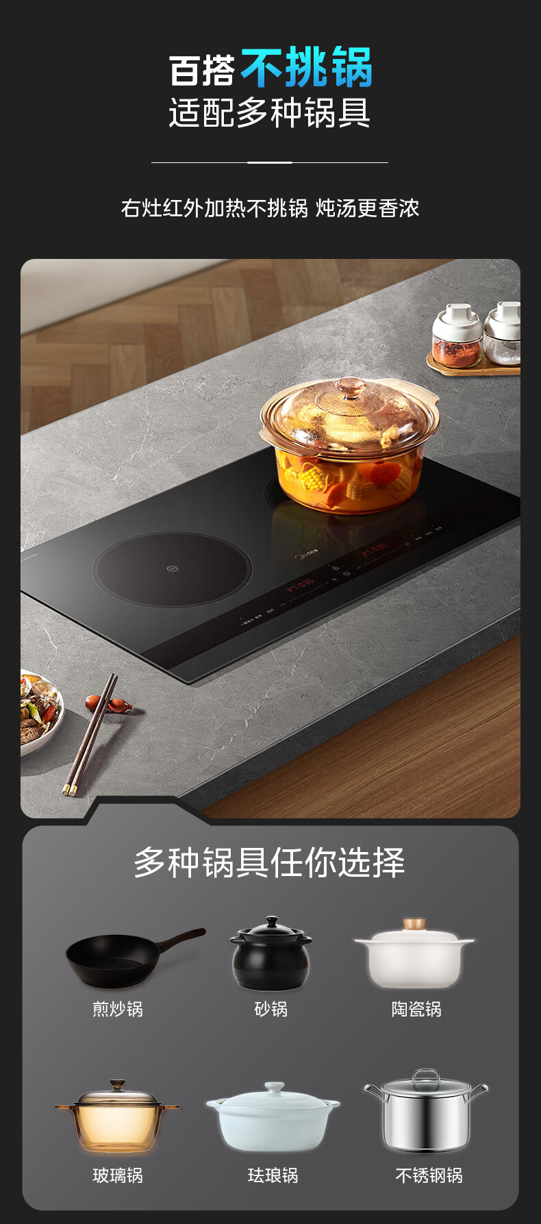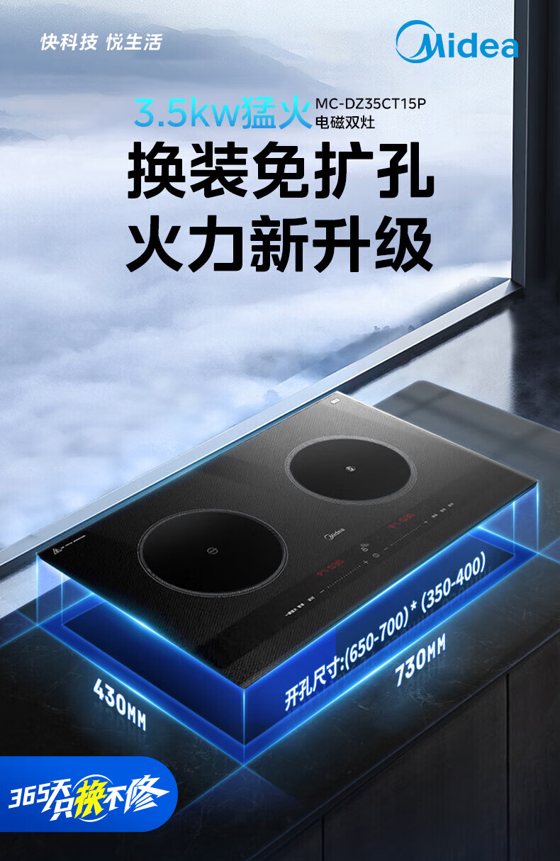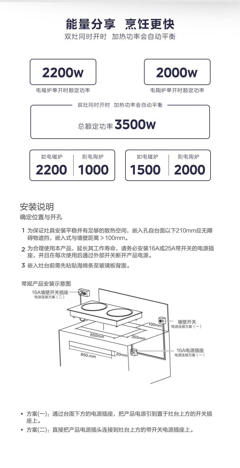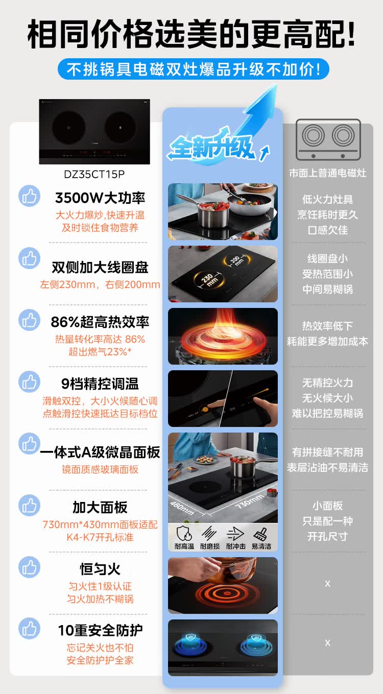 美的(Midea)凹面电磁炉嵌入式电磁双灶电陶炉 家用3500W大功率电池炉炒菜定时烹饪灶台一体面板DZ35D06Q