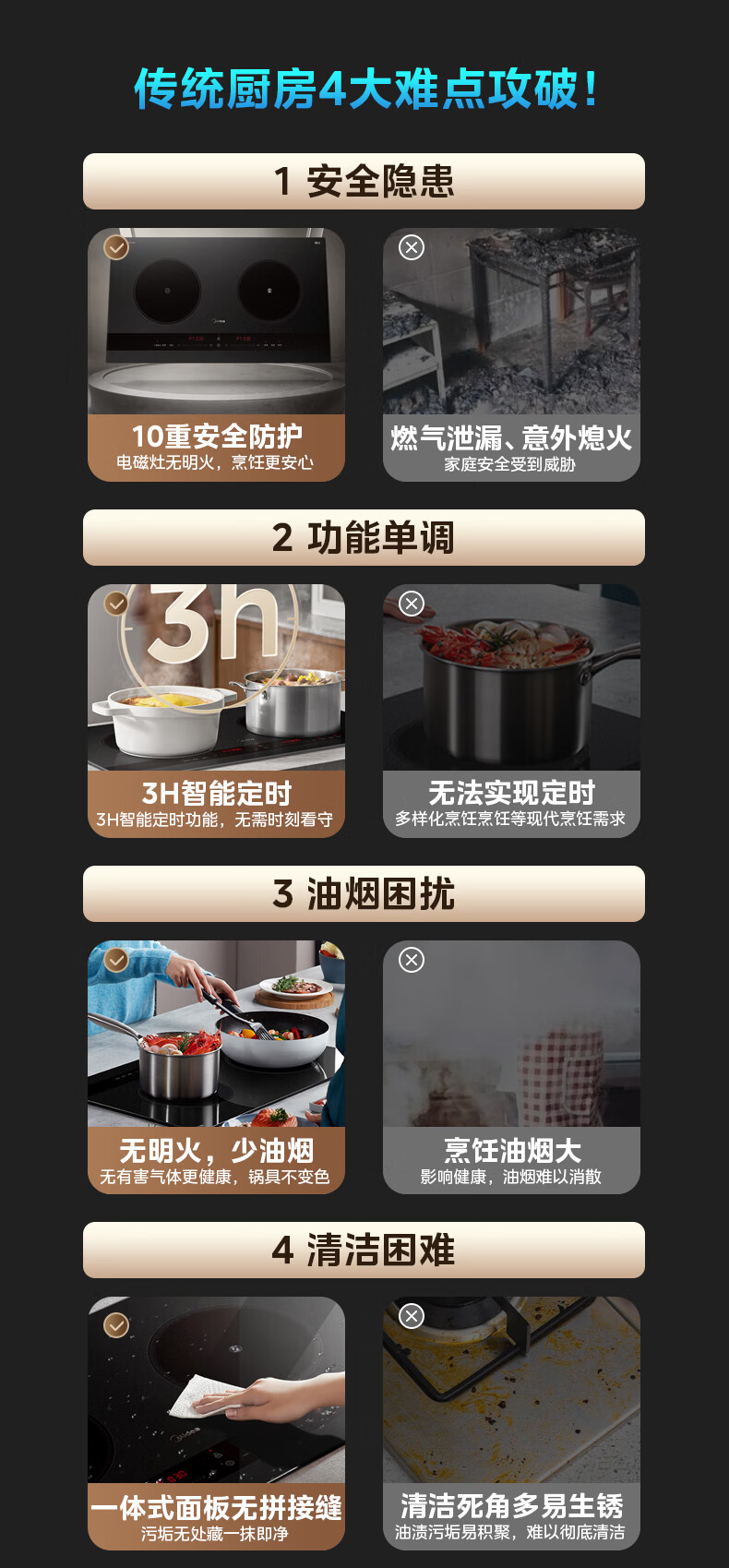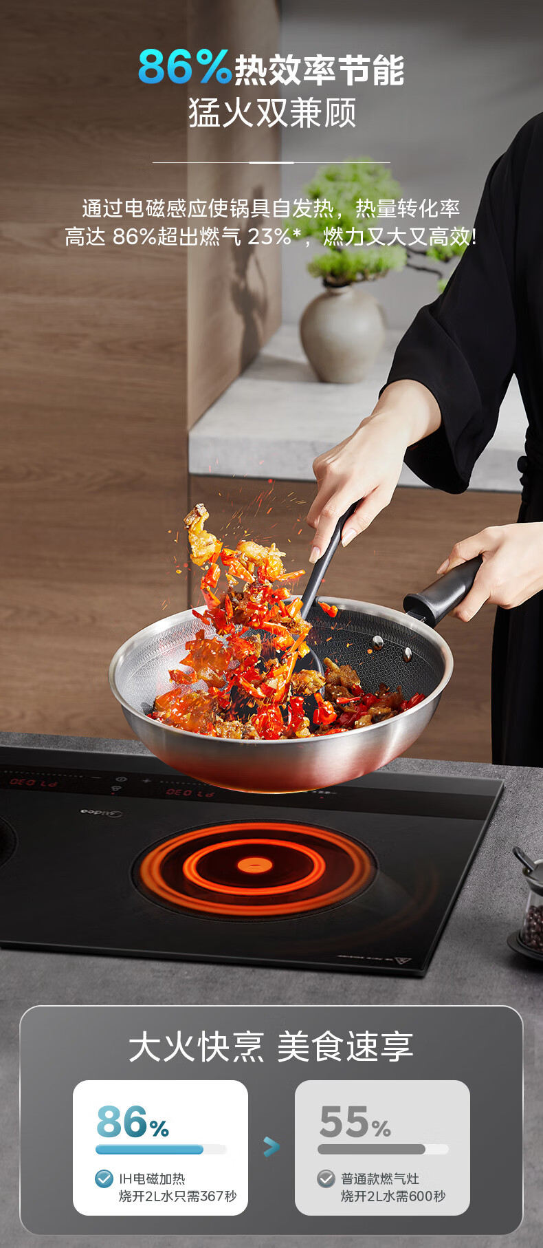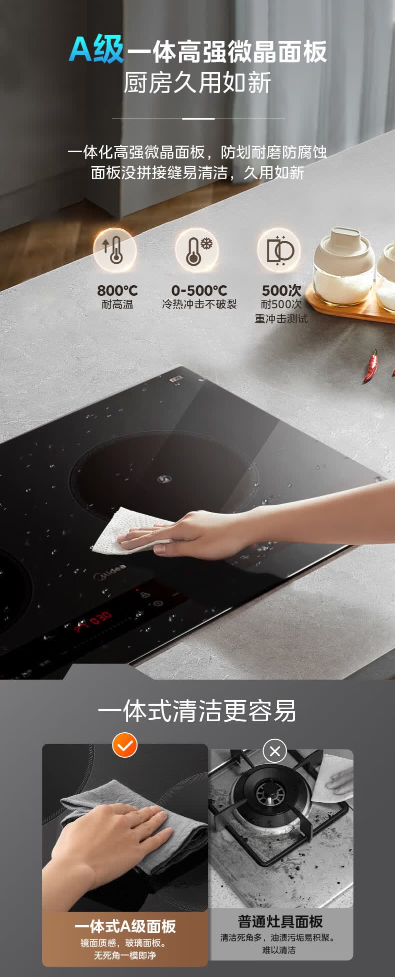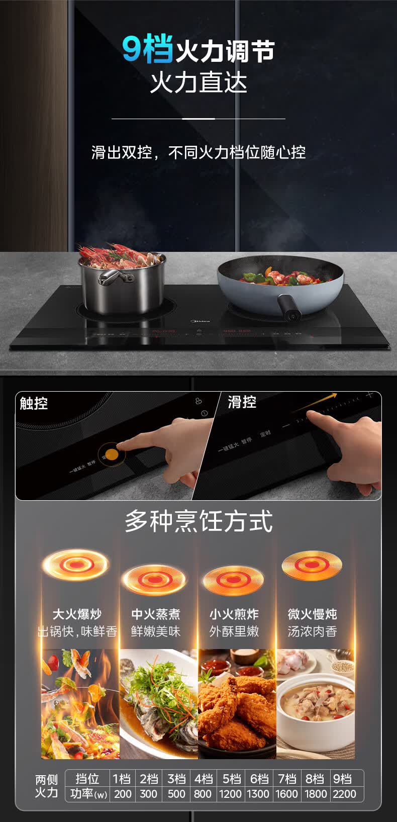 美的(Midea)凹面电磁炉嵌入式电磁双灶电陶炉 家用3500W大功率电池炉炒菜定时烹饪灶台一体面板DZ35D06Q