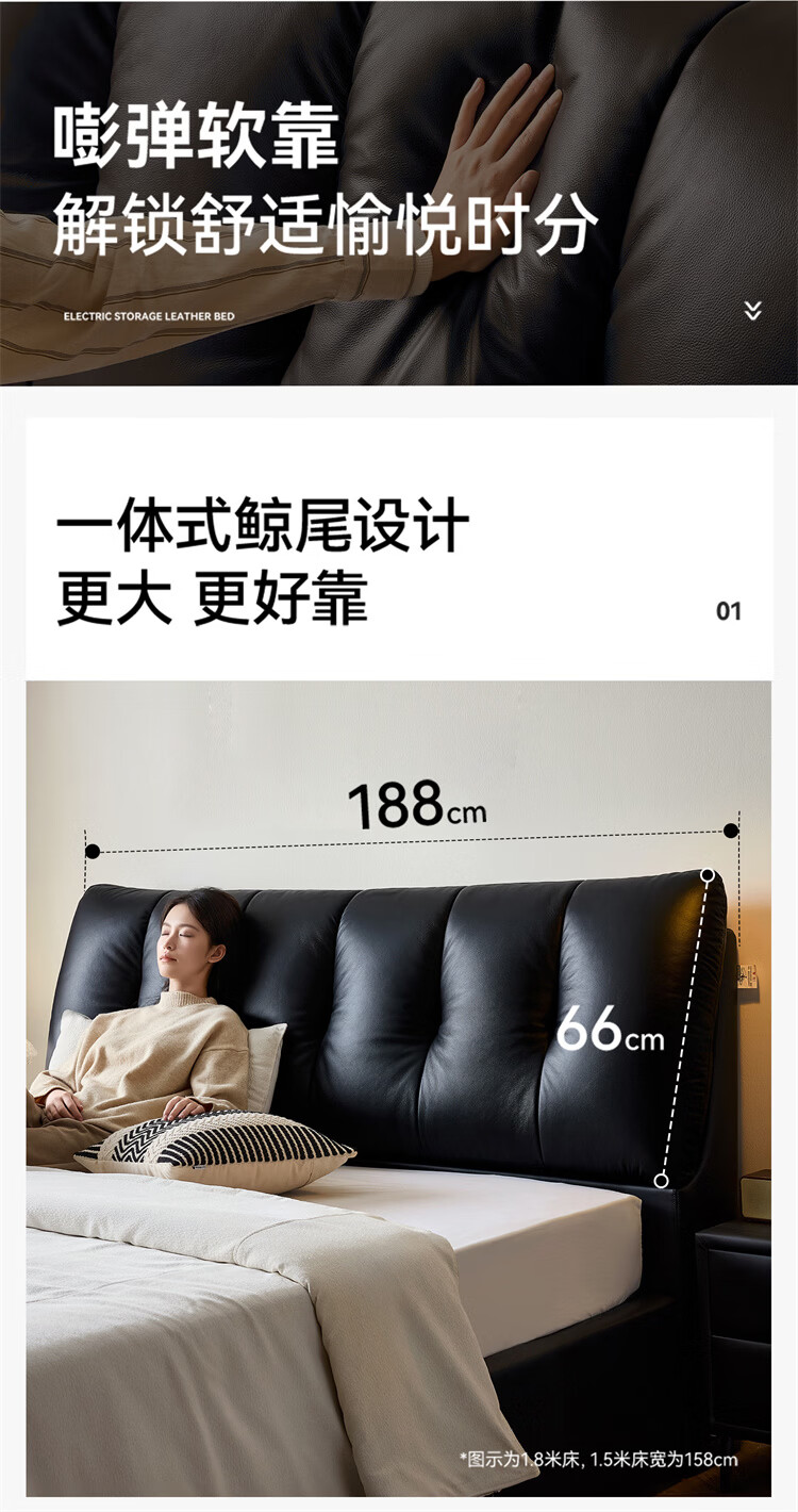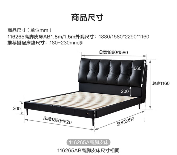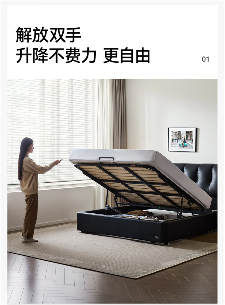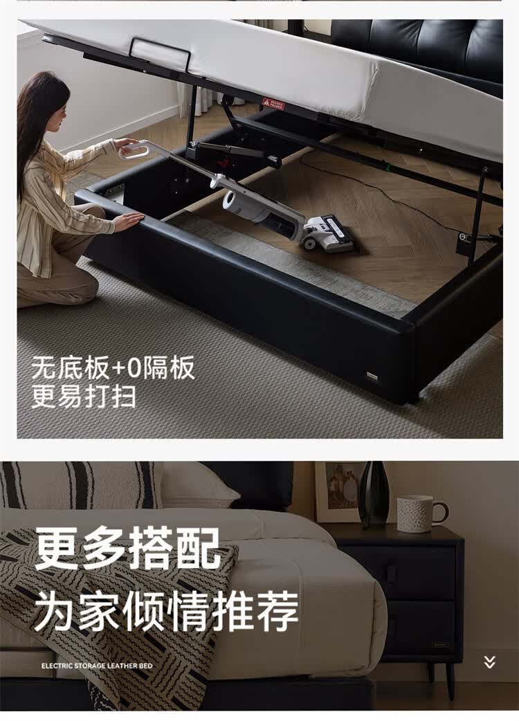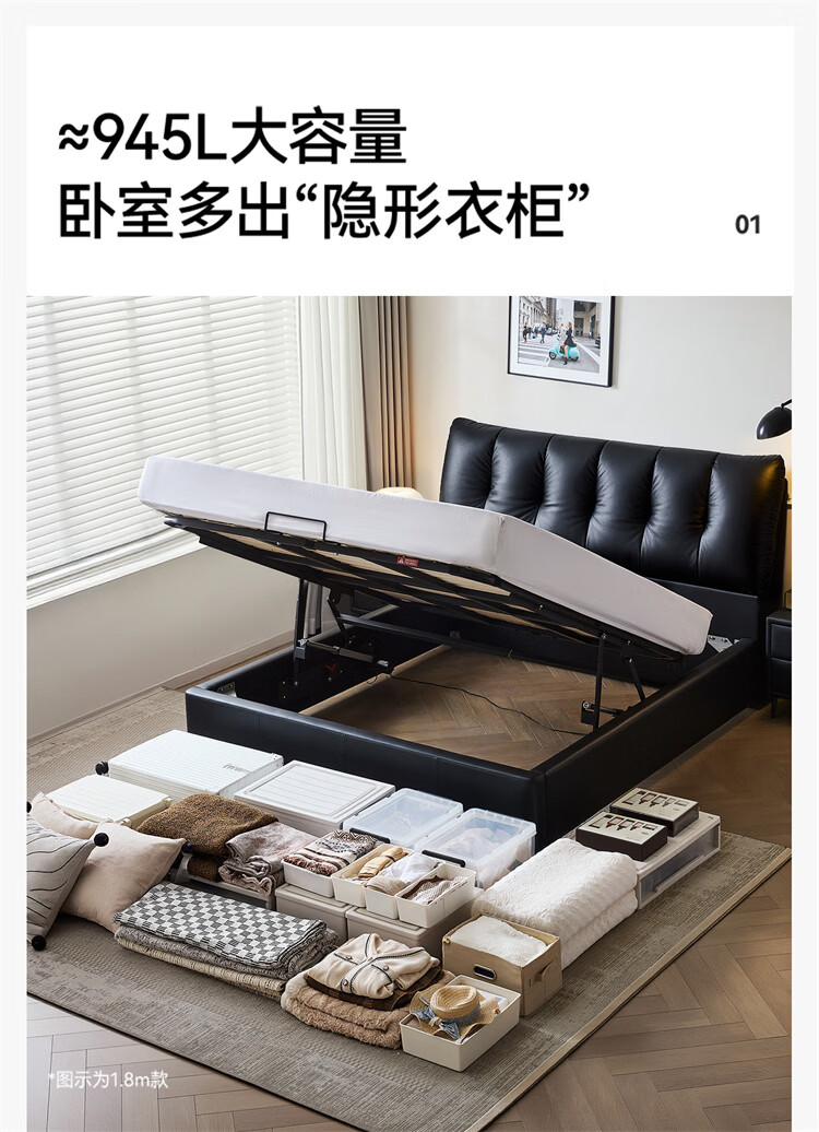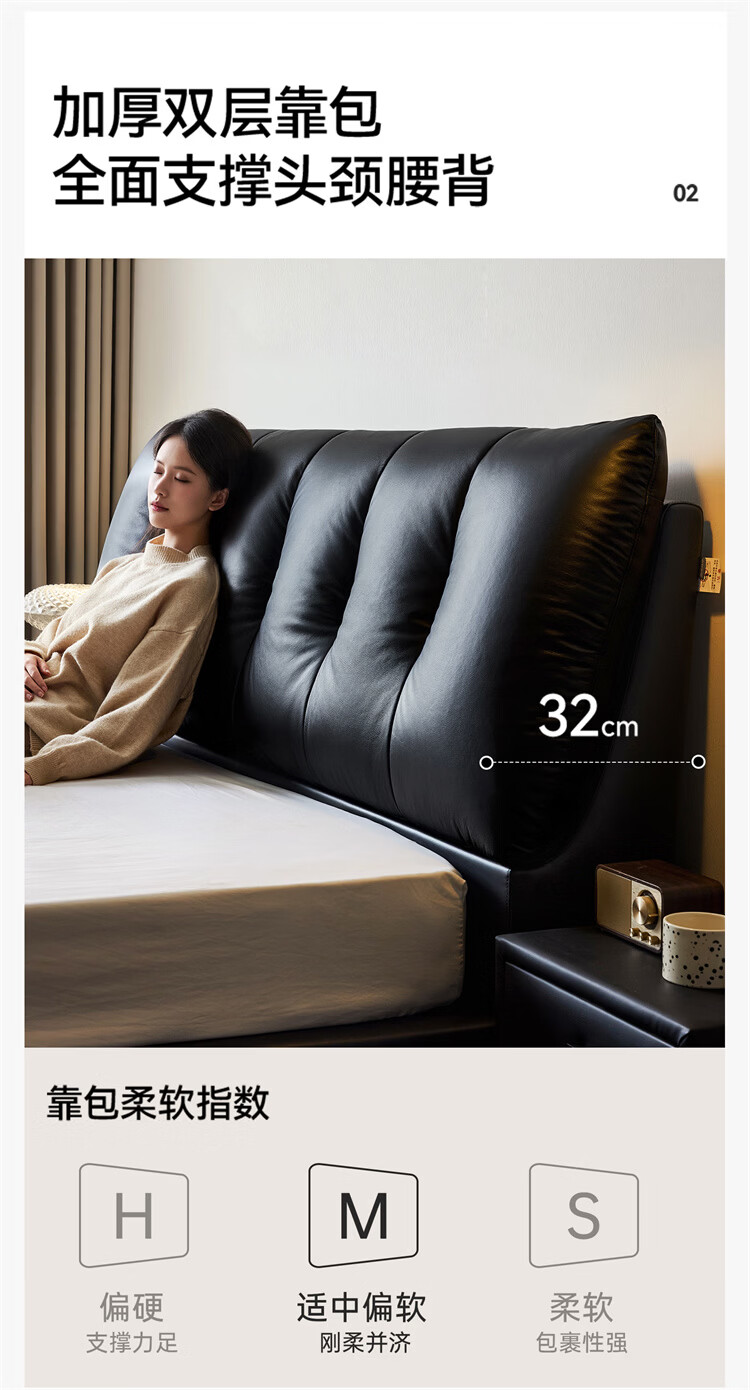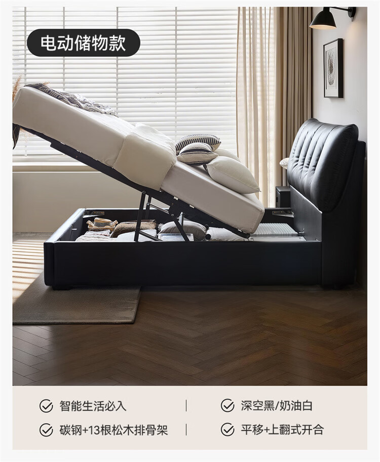 全友家居现代简约皮艺床家用卧室轻奢高级感2026新款床加床垫一套组合 【母婴级牛皮 | 深空黑 | 高脚床】 1.8米x2米 单床