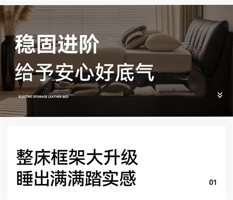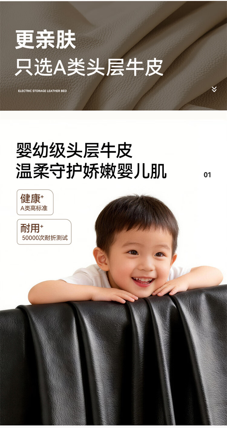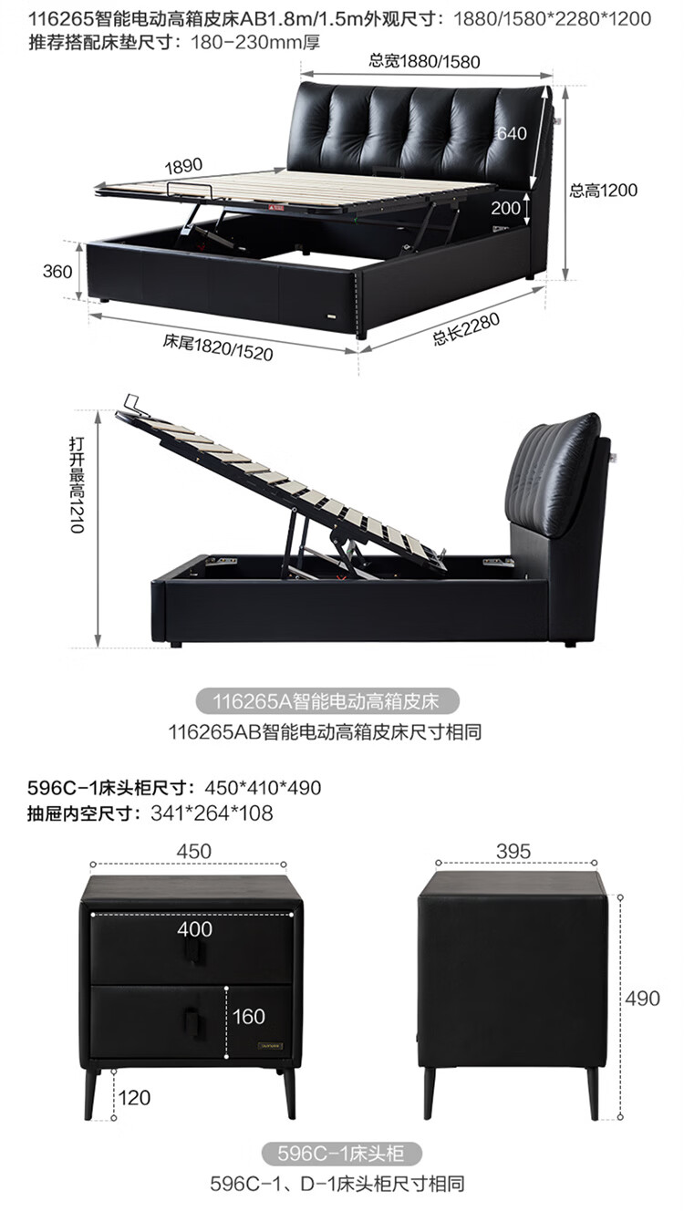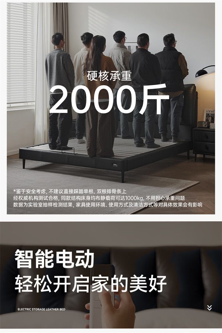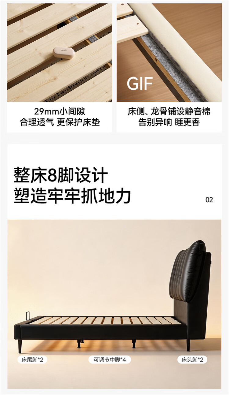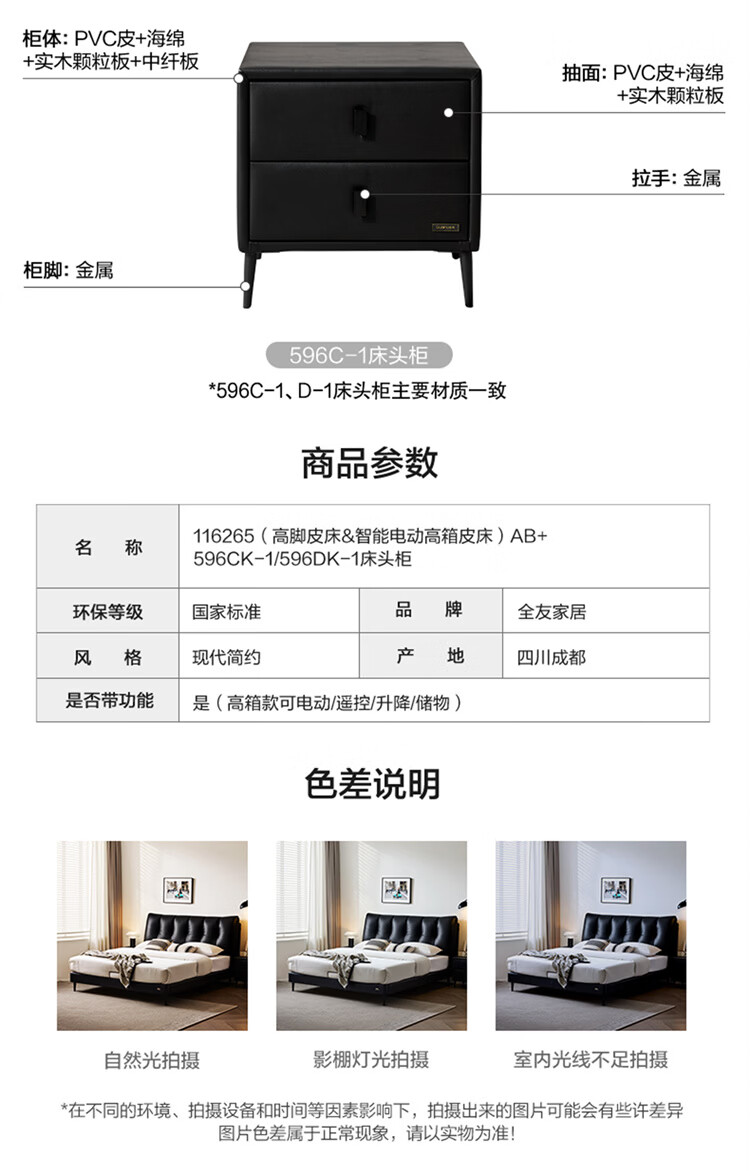 全友家居现代简约皮艺床家用卧室轻奢高级感2026新款床加床垫一套组合 【母婴级牛皮 | 深空黑 | 高脚床】 1.8米x2米 单床