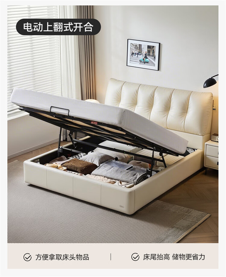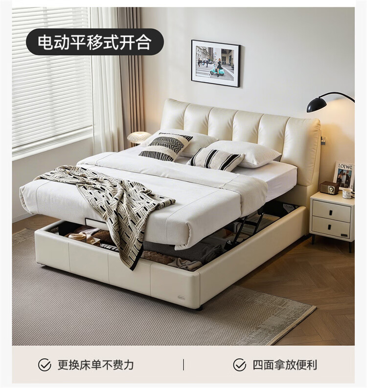 全友家居奶油风茉伊真皮床轻奢高级感2026年新款头层牛皮软包靠背床 【猫抓皮 | 米白 | 高脚】 1.2米x2米 床+床头柜*2+床垫