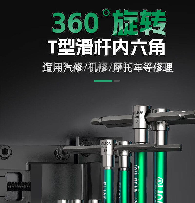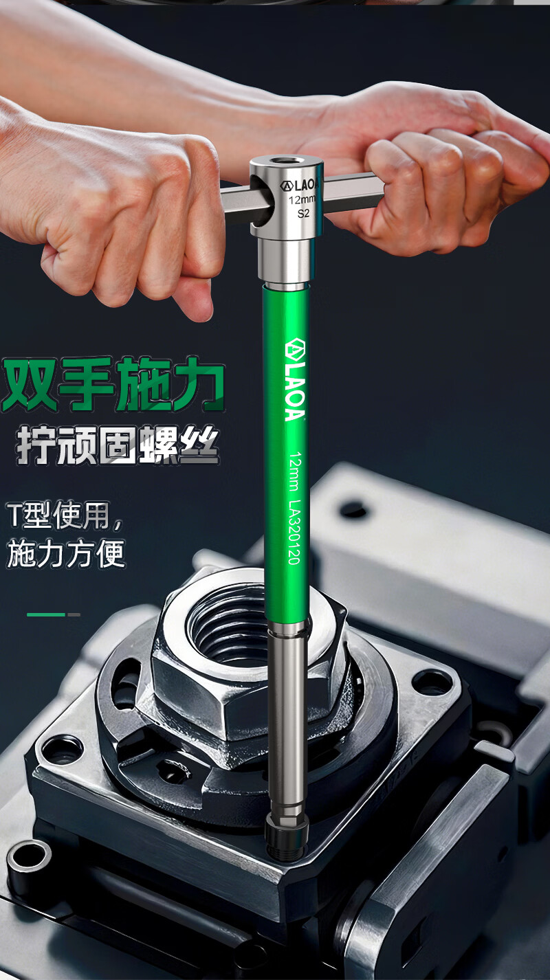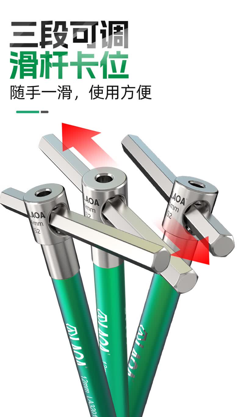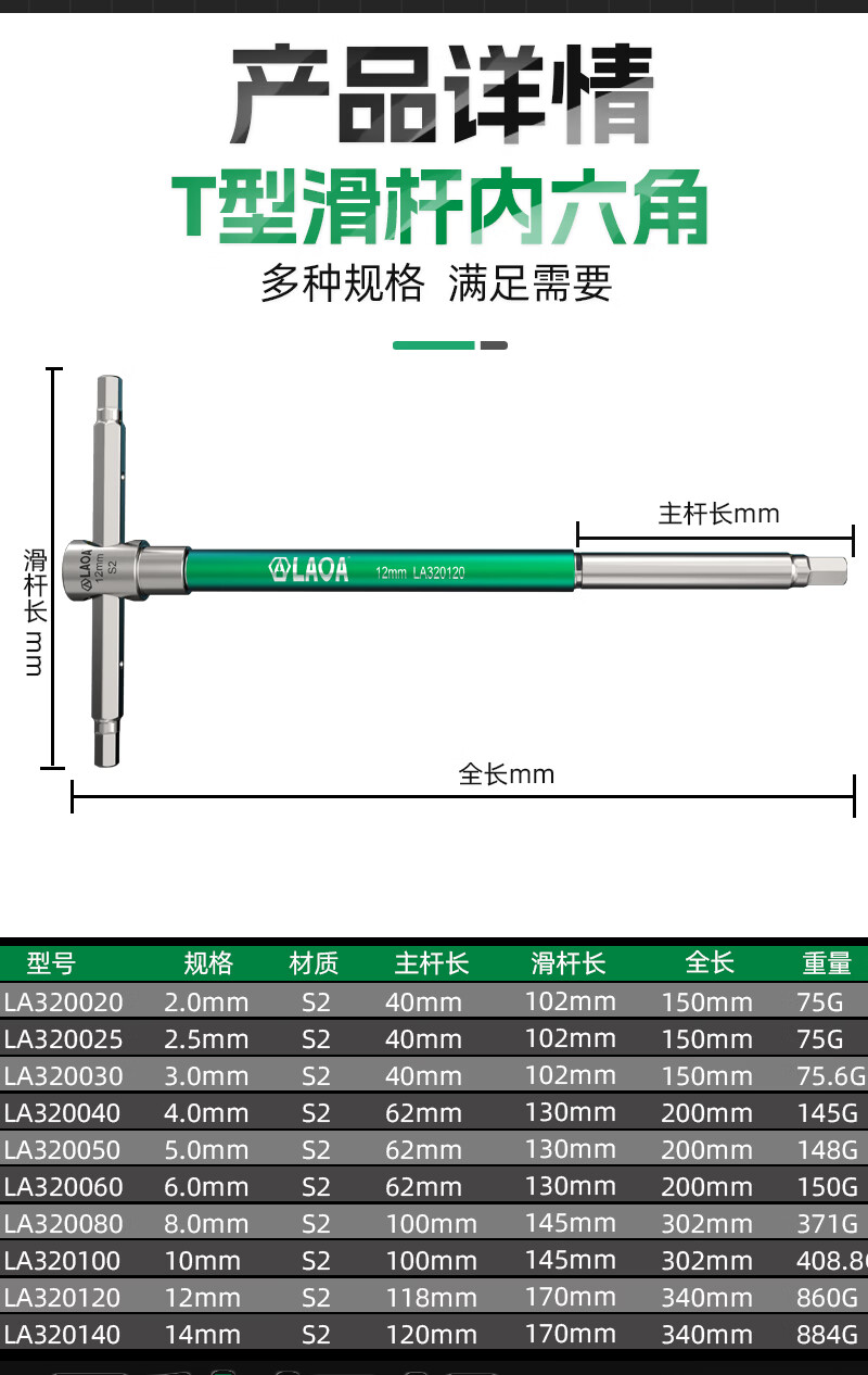 LAOAT型滑竿高速旋转内六角滑杆扳手S2合金钢加长内6角汽修六边形工具 T型滑杆内六角扳手6mm LA320060