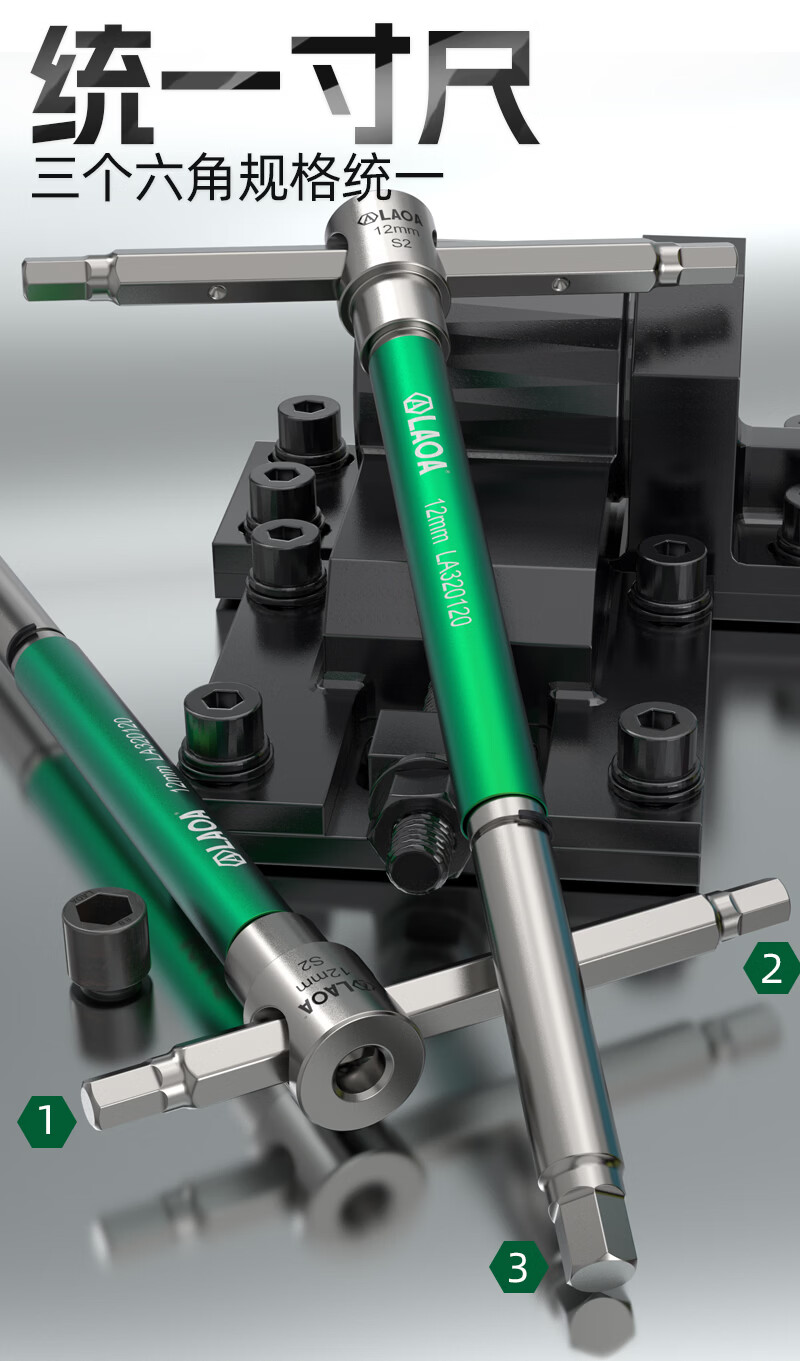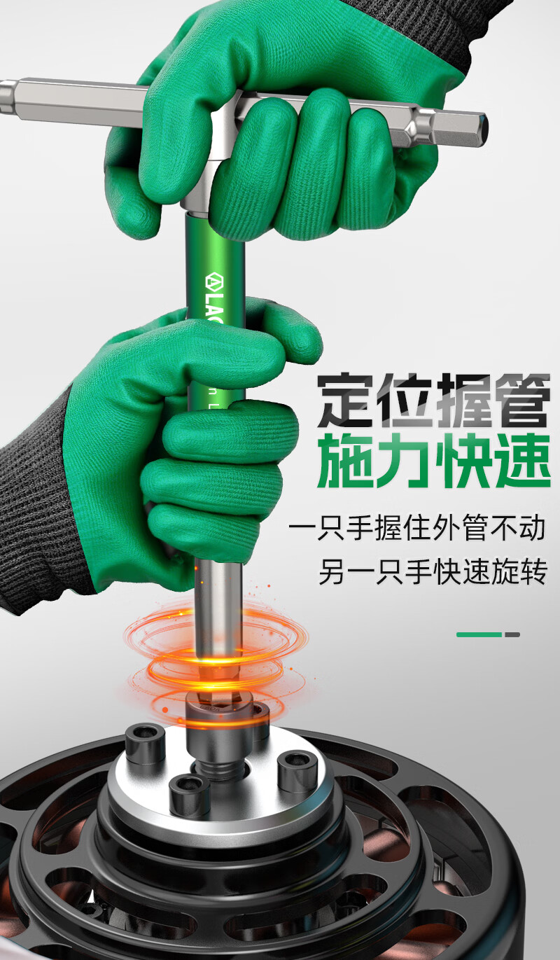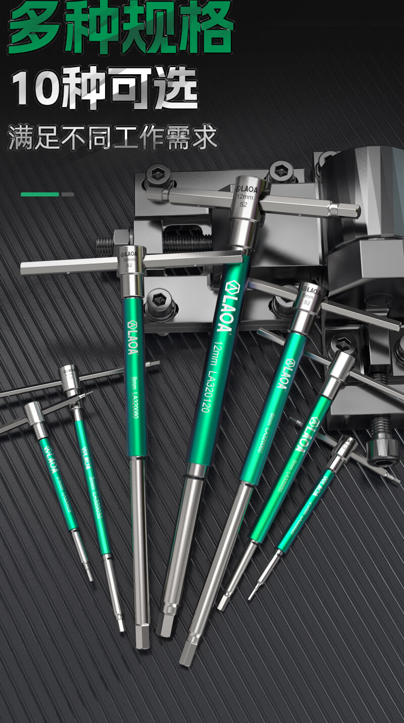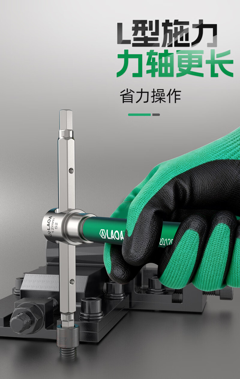 LAOAT型滑竿高速旋转内六角滑杆扳手S2合金钢加长内6角汽修六边形工具 T型滑杆内六角扳手6mm LA320060