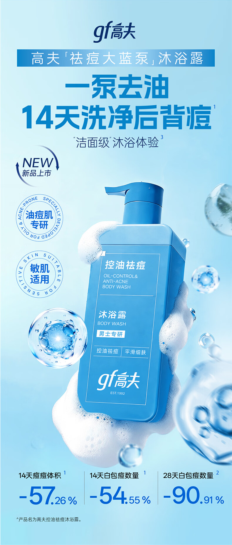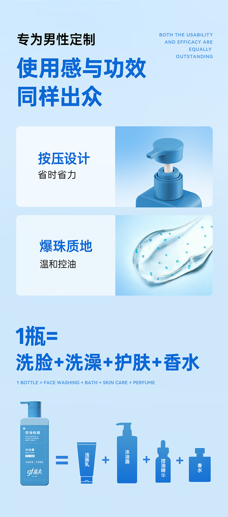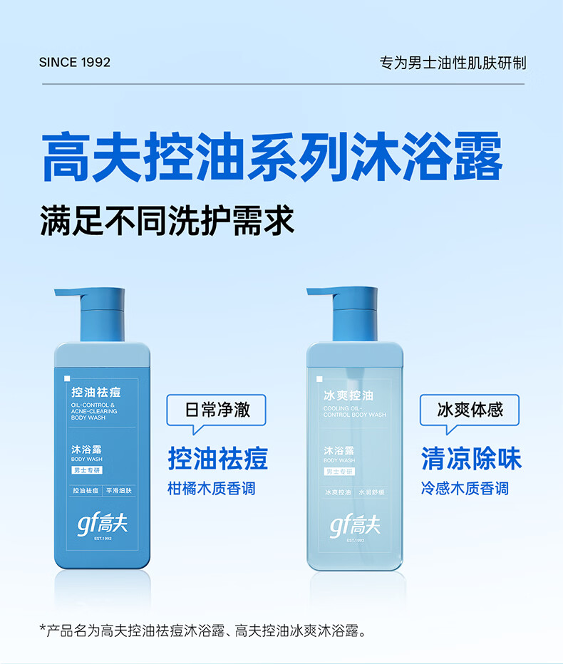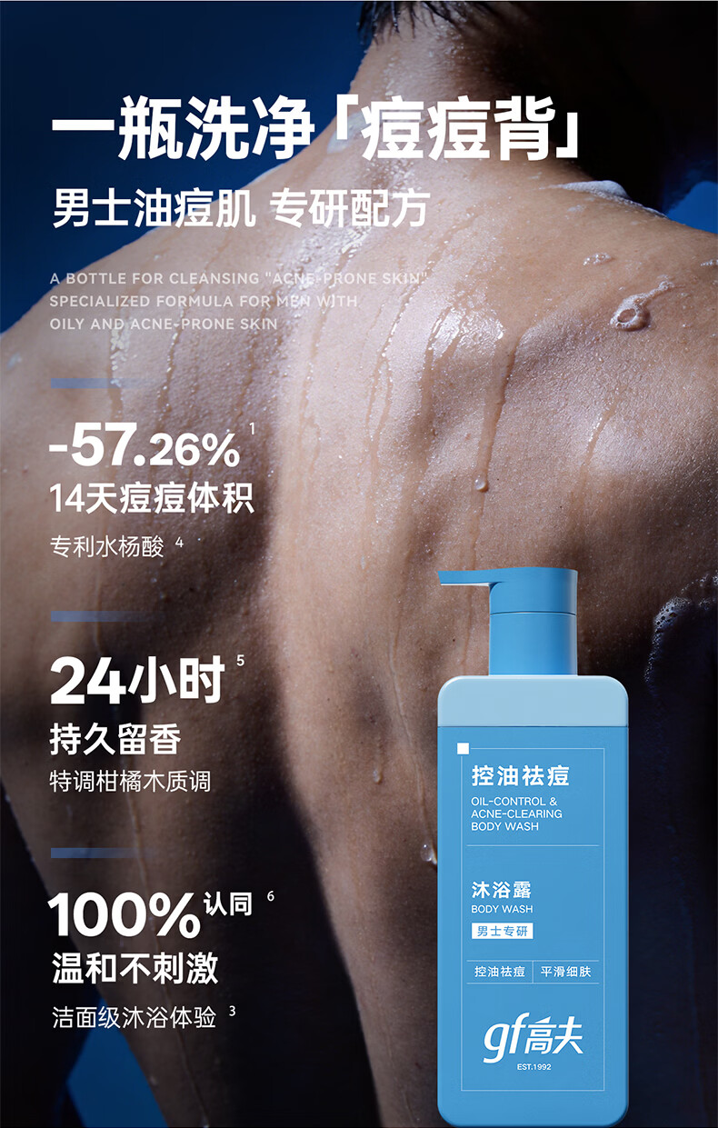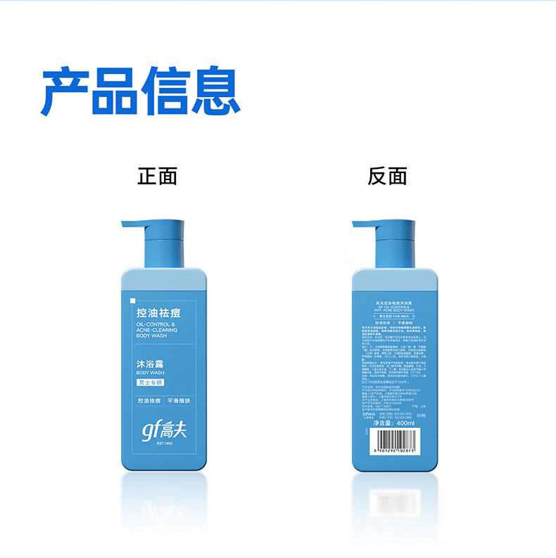 高夫(gf)控油祛痘沐浴露400ml男士专用沐浴露送男友
