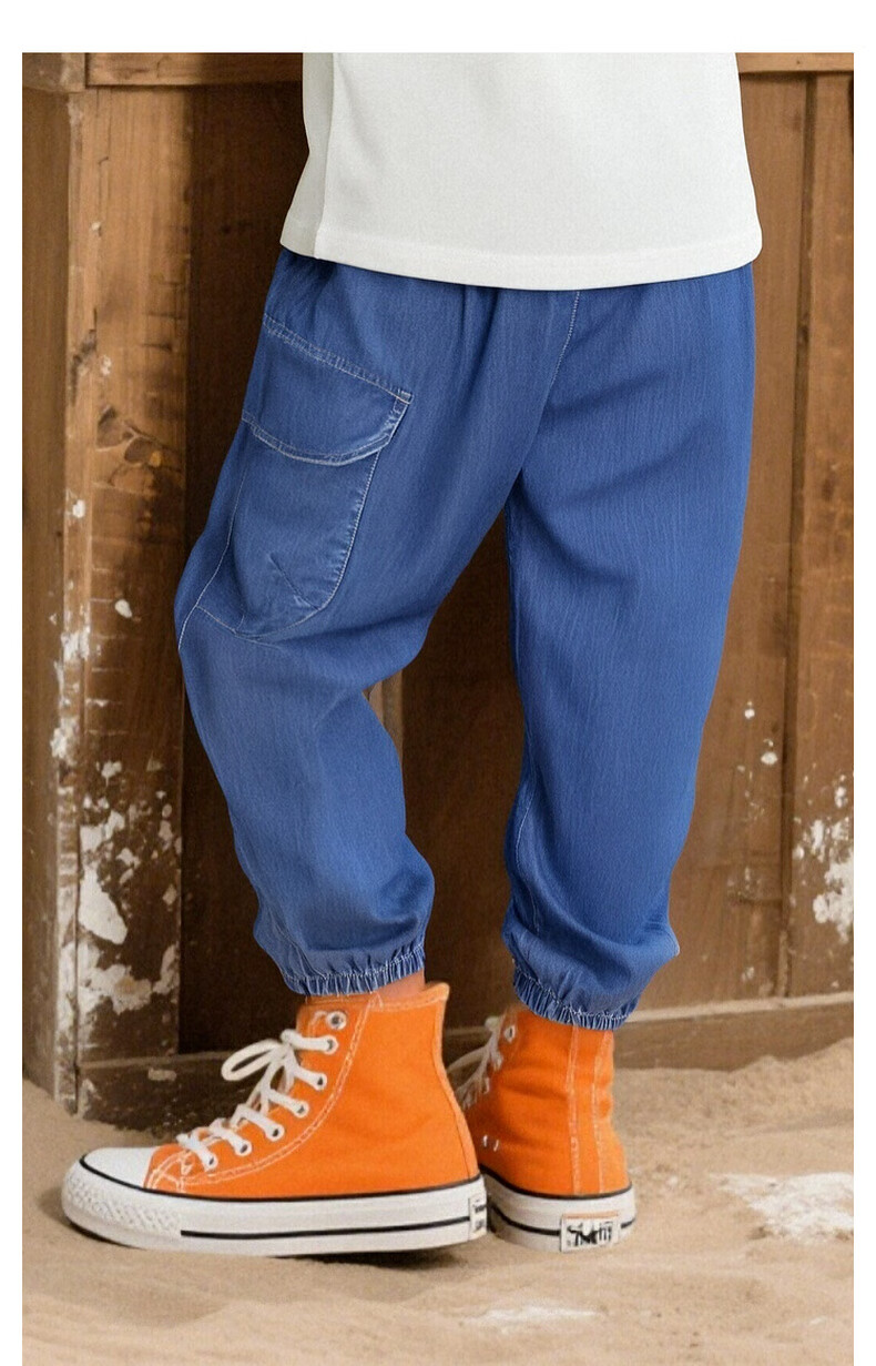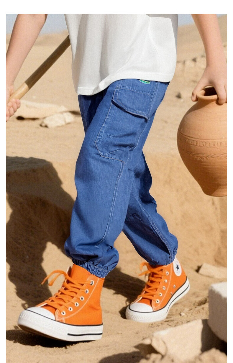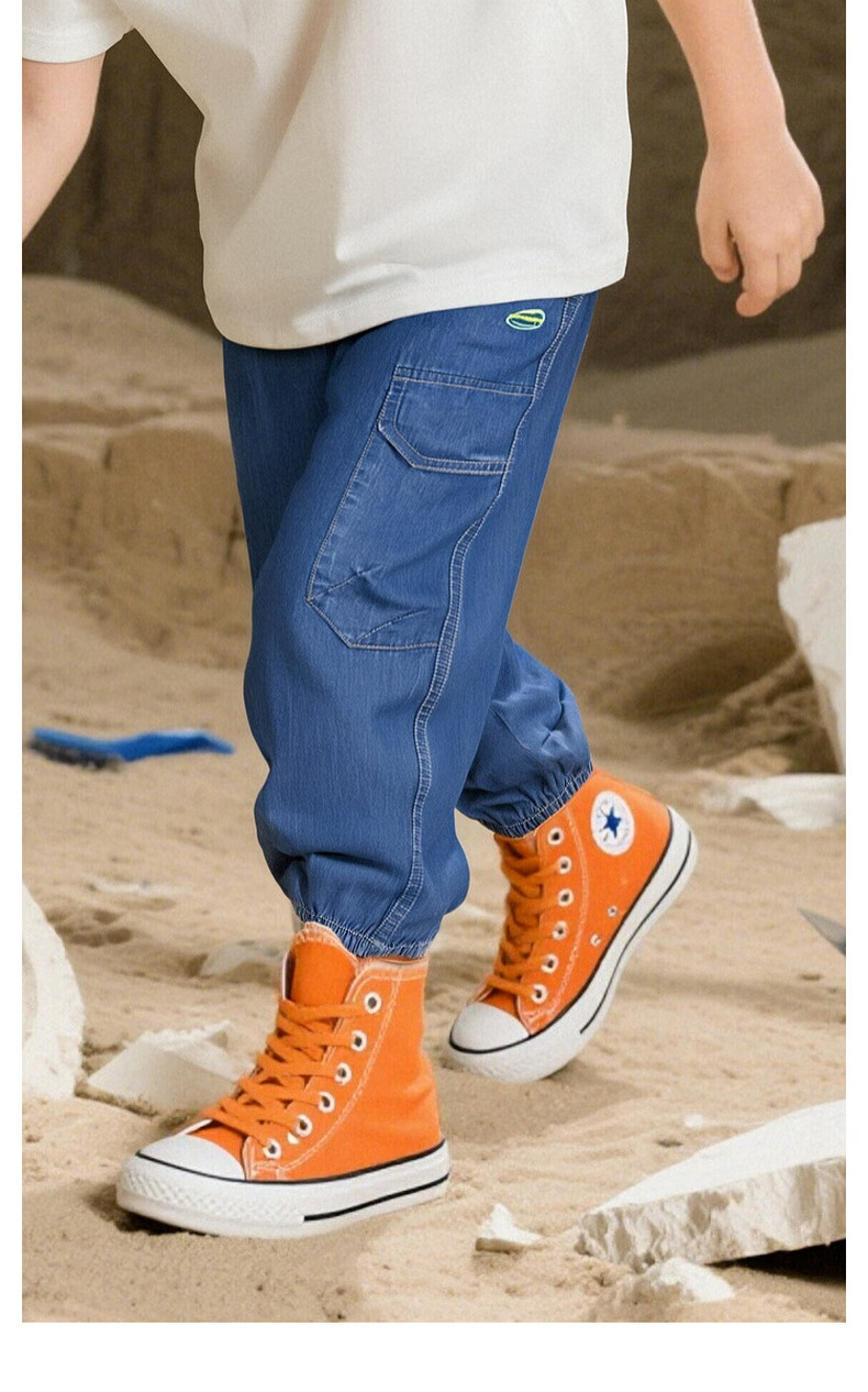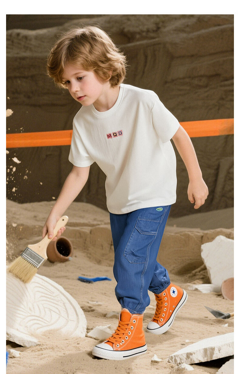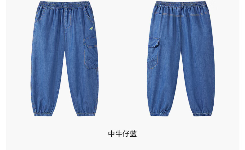 马骑顿(MQD)【束脚裤】男大童夏季新品学院风潮酷休闲工装风牛仔裤 中牛仔蓝 160