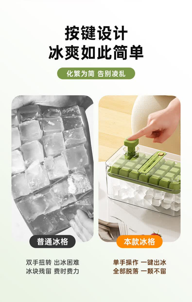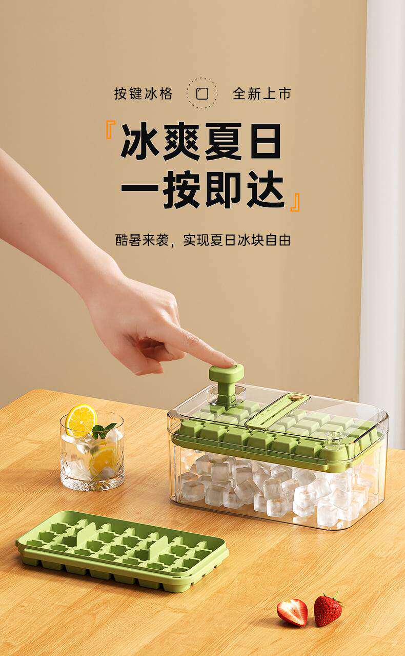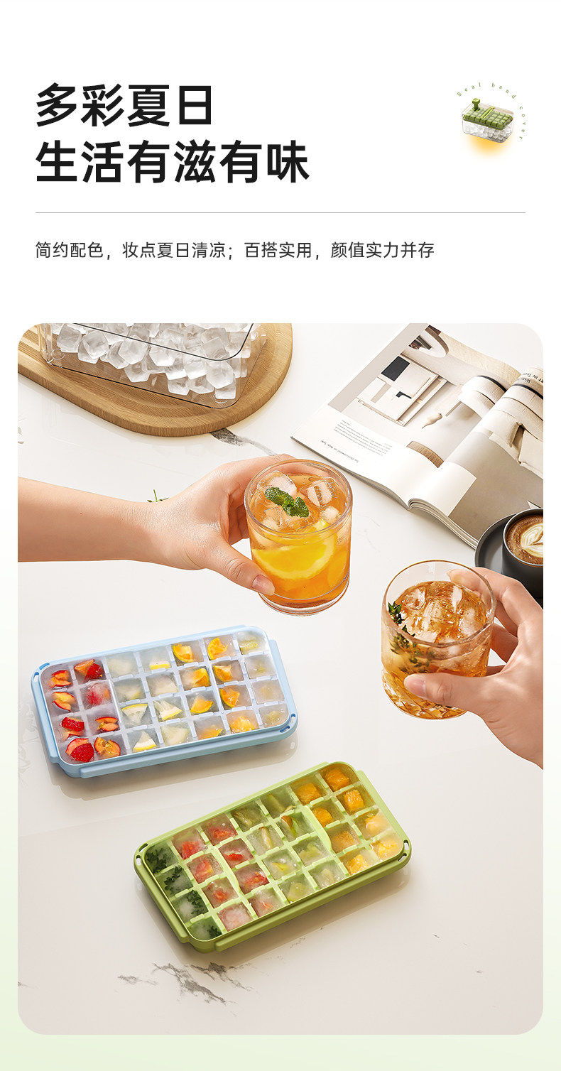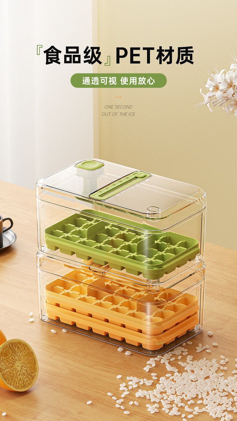 洋臣冰格按压冰块模具家用带盖硅胶制冰盒易脱模速冻带盖制冰盒 标准款32格1套【颜色随机不带抽屉】