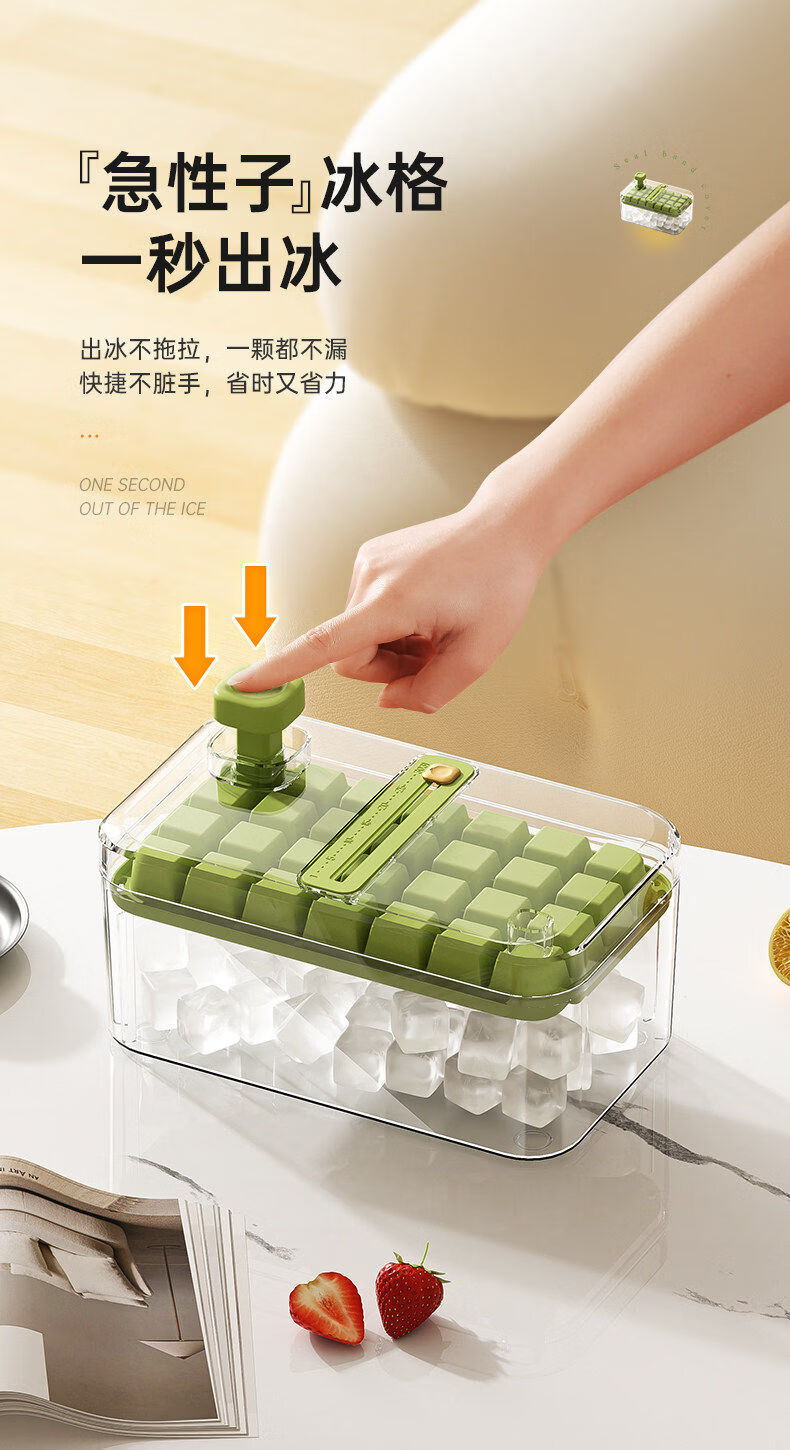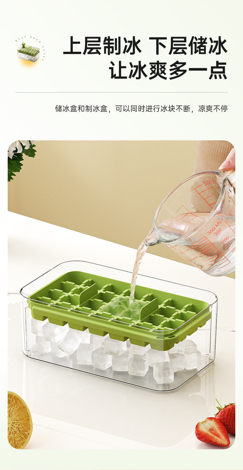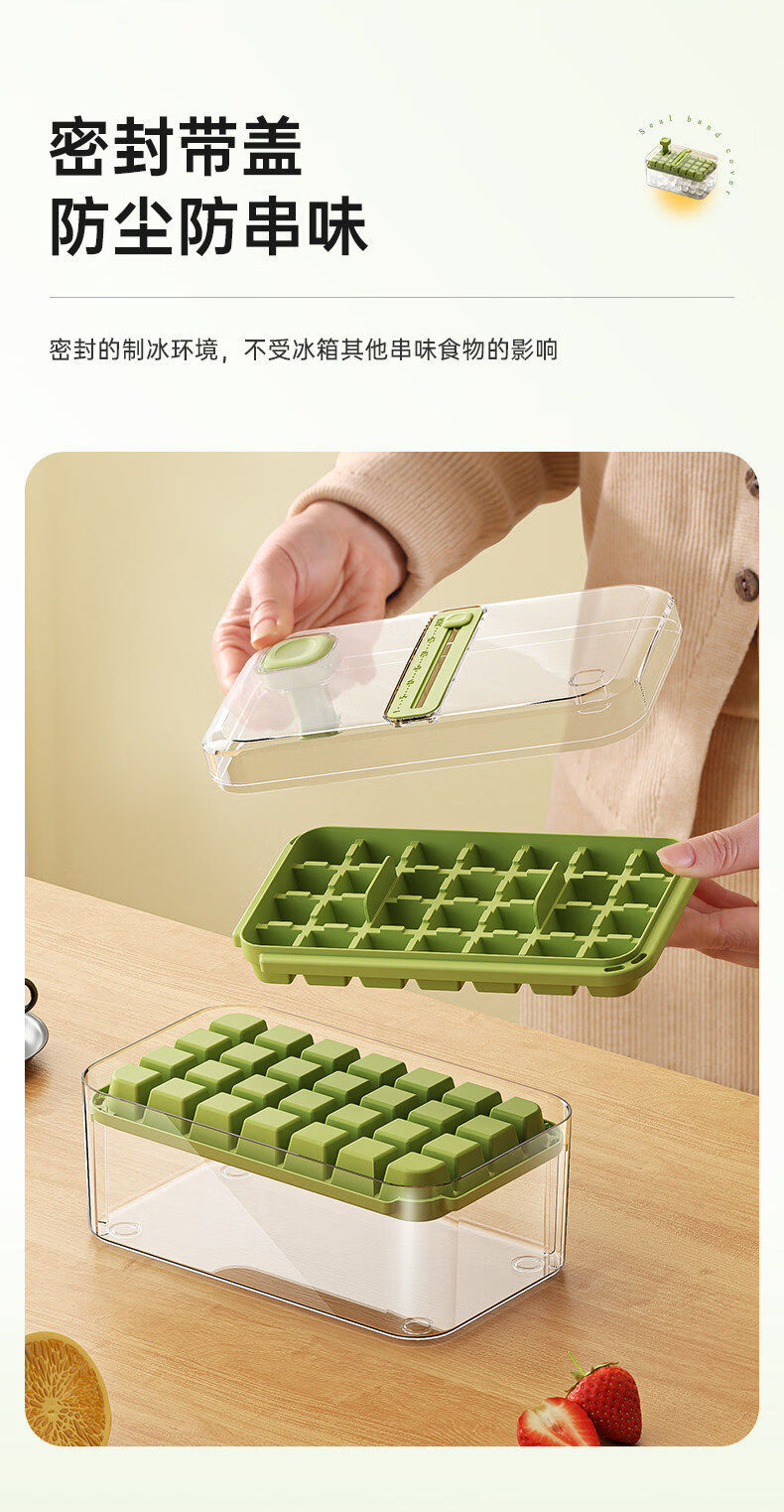 洋臣冰格按压冰块模具家用带盖硅胶制冰盒易脱模速冻带盖制冰盒 标准款32格1套【颜色随机不带抽屉】