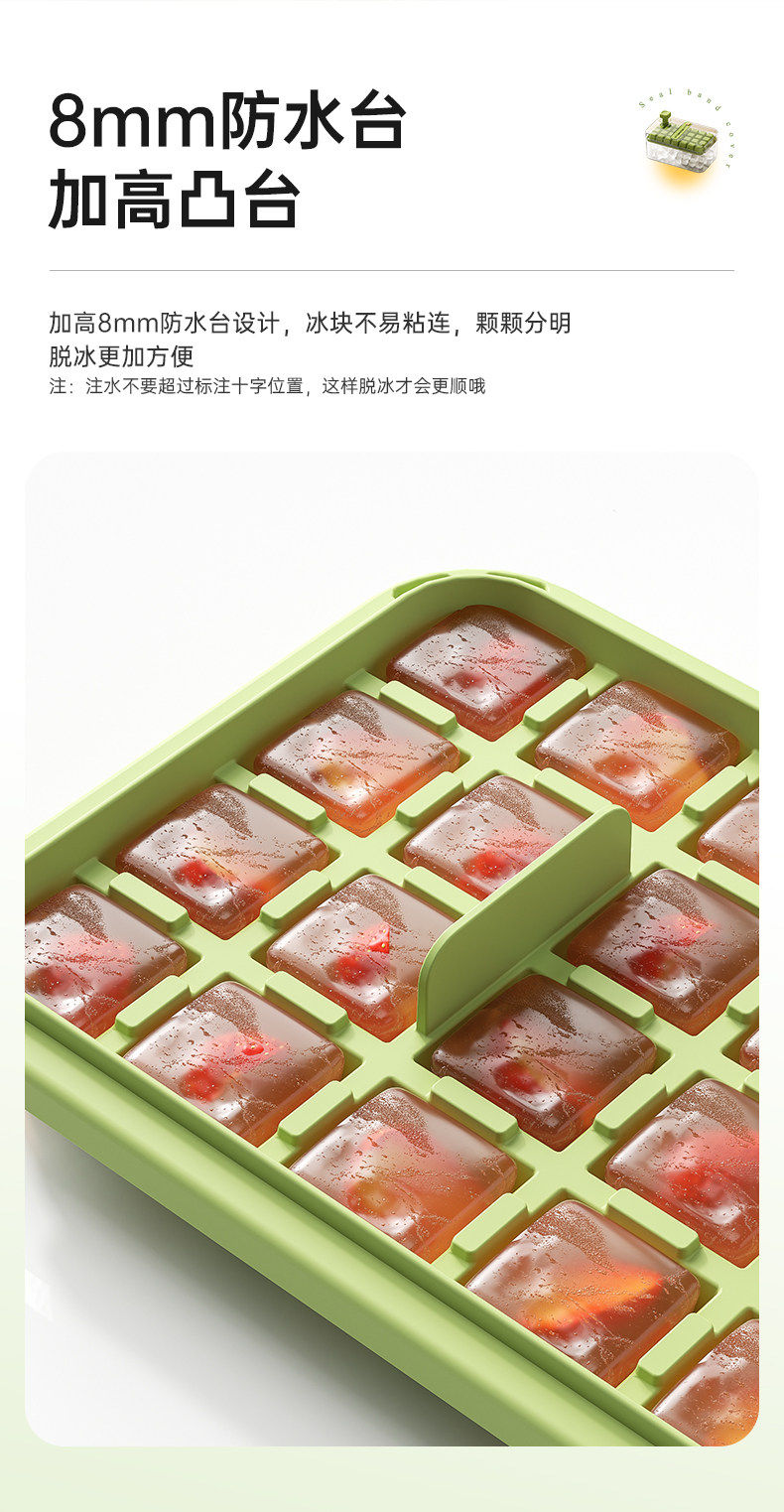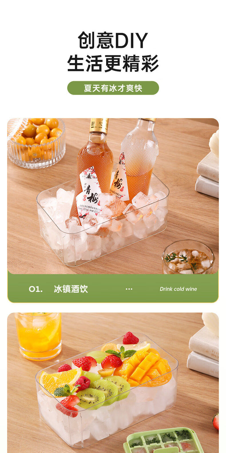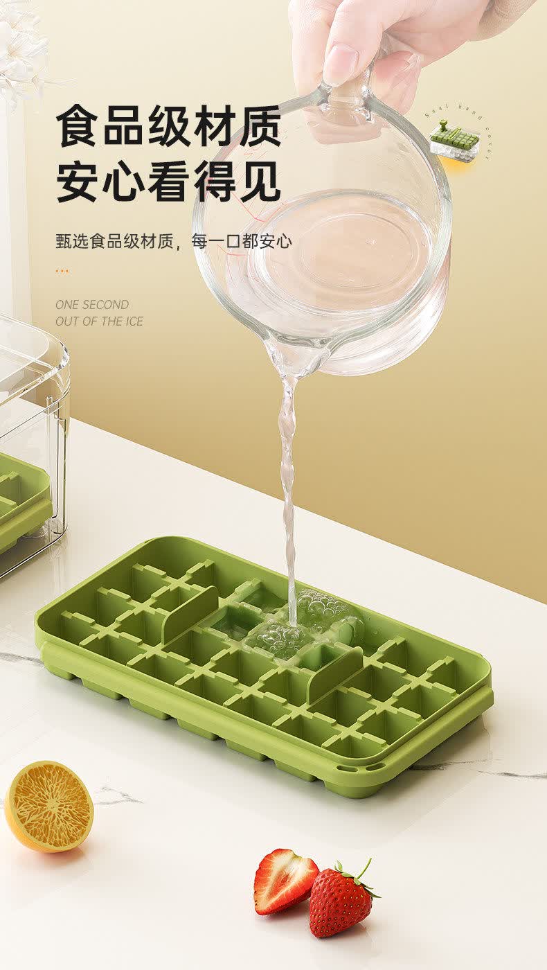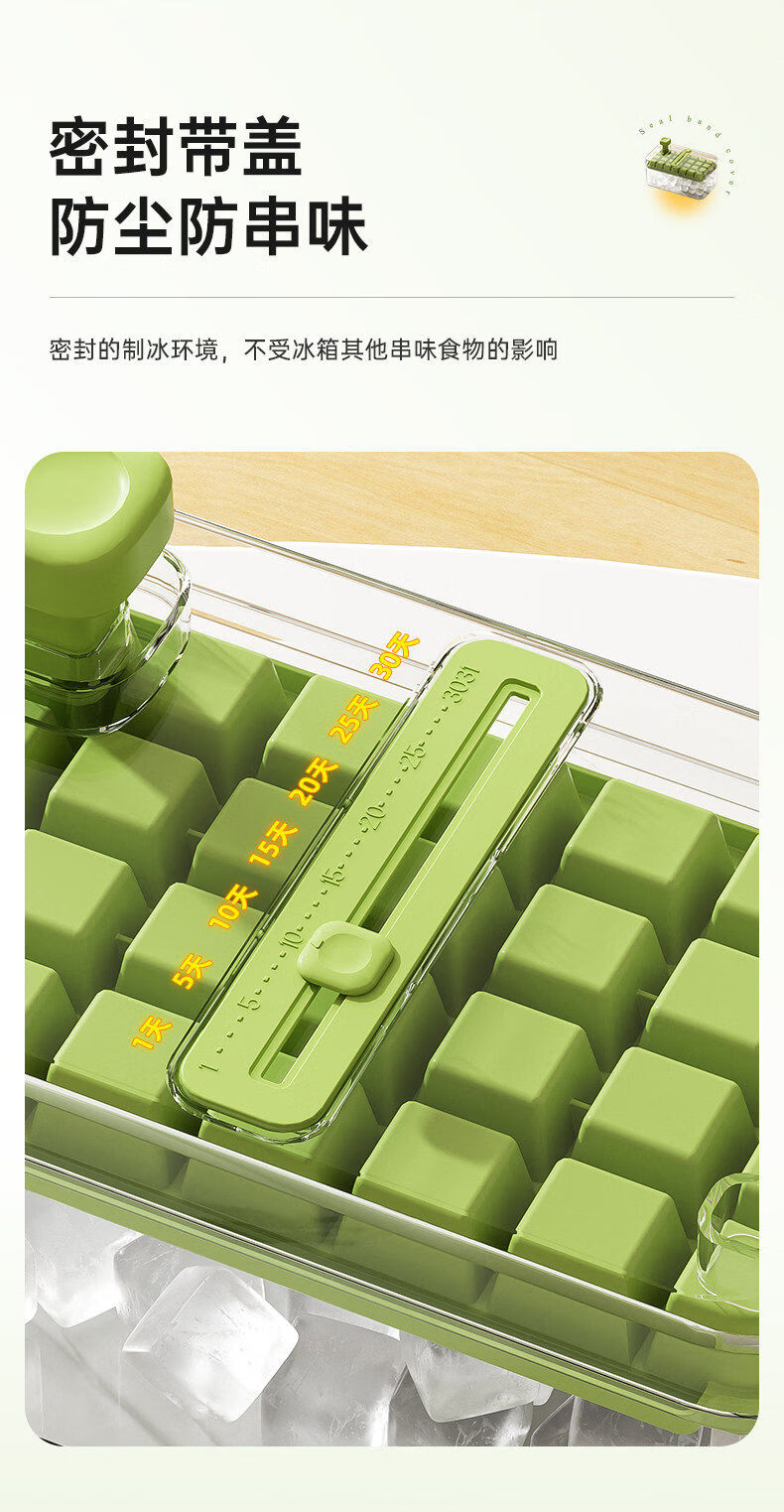 洋臣冰格按压冰块模具家用带盖硅胶制冰盒易脱模速冻带盖制冰盒 标准款32格1套【颜色随机不带抽屉】