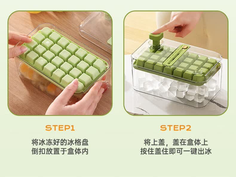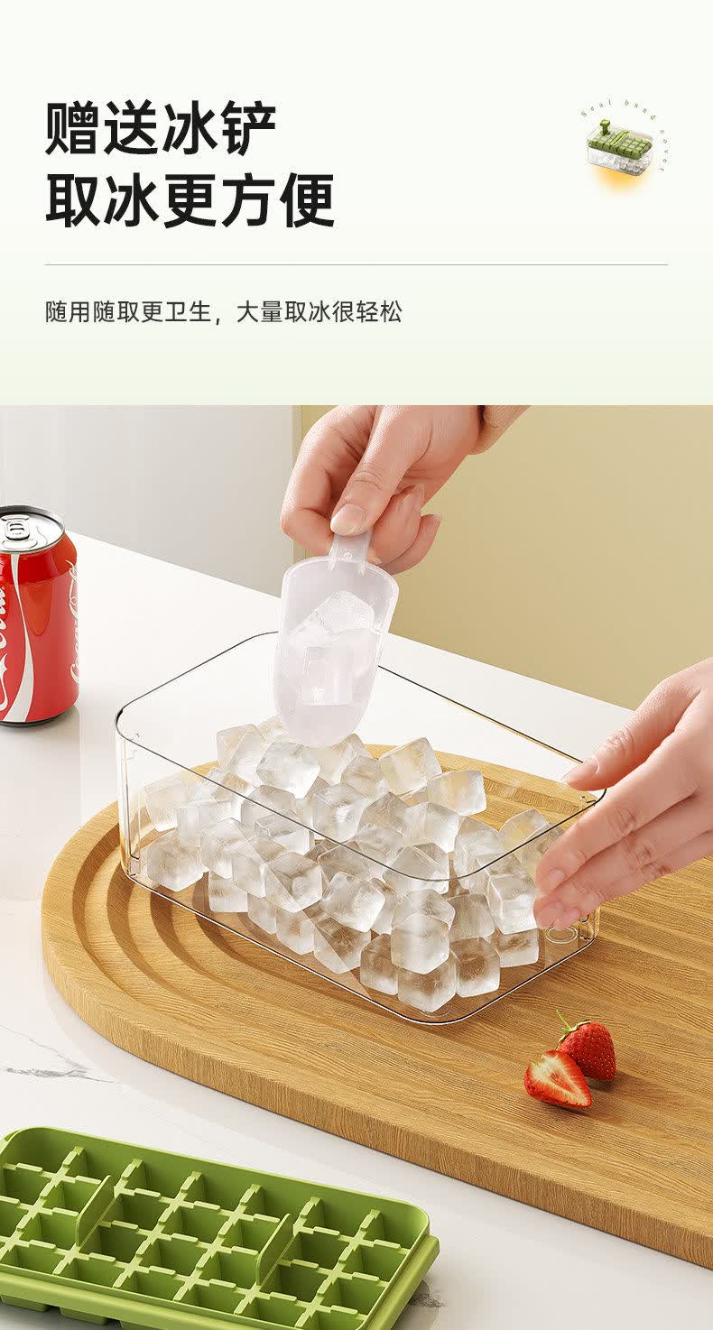 按压冰格模具制冰神器带盖食品级自制冰盒家用冰箱储存盒 奶白-单层28格1秒出冰送冰铲
