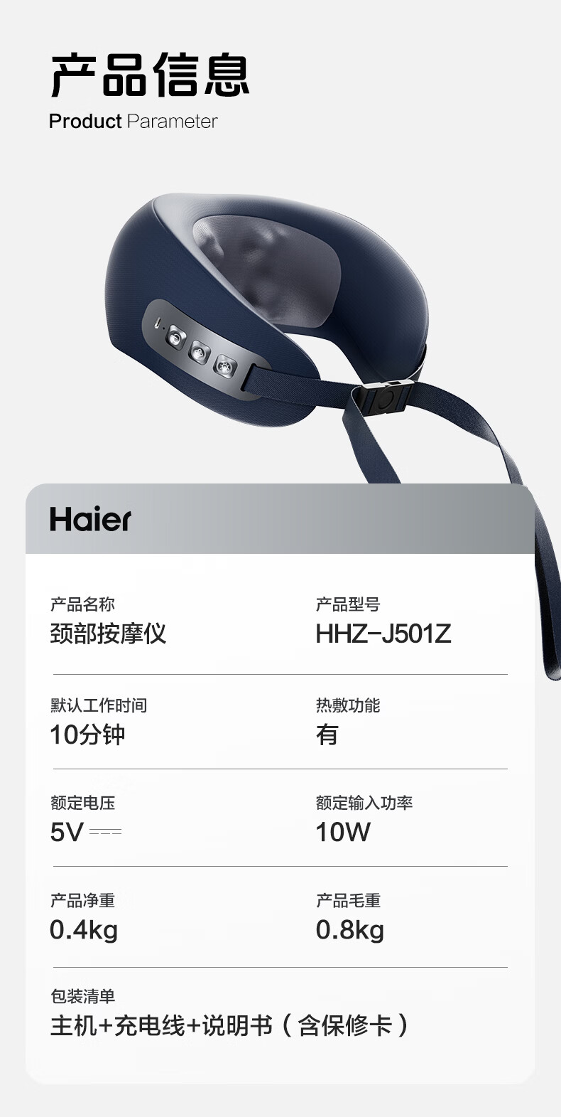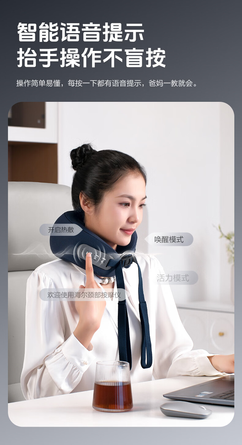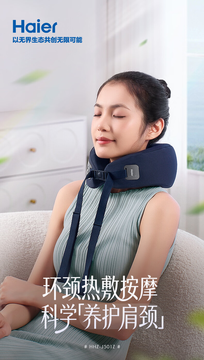 海尔(Haier)颈椎按摩器枕头护颈枕肩颈腰部颈椎按摩仪支撑热敷U型枕出游午睡神器生日礼物送男女朋友HHZ-J501Z