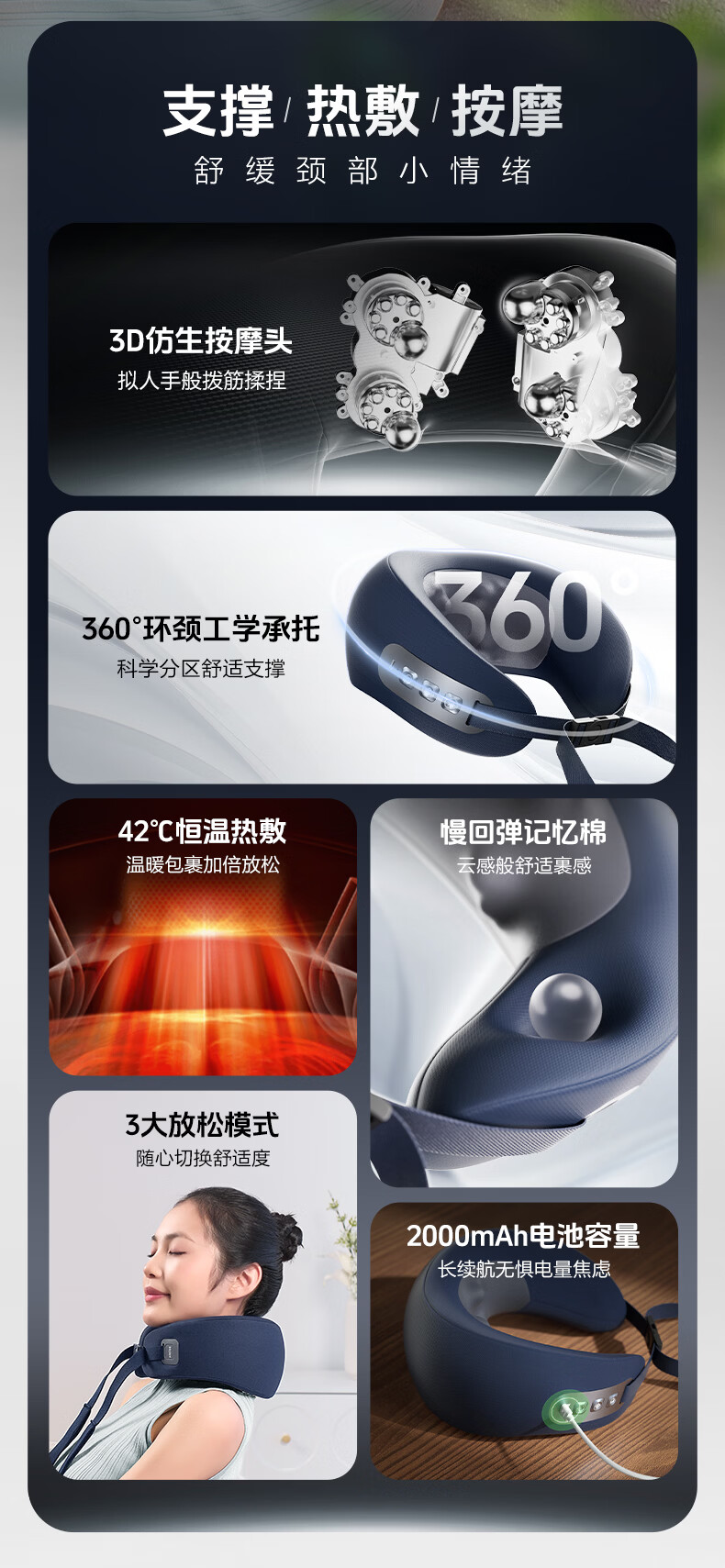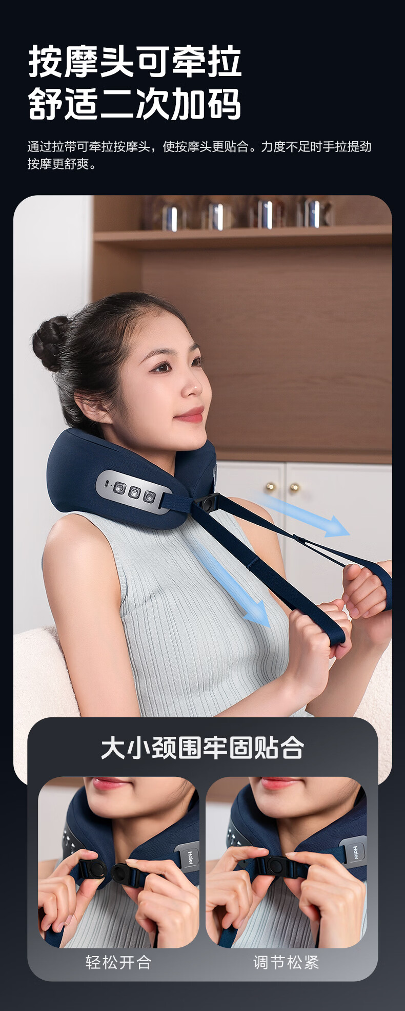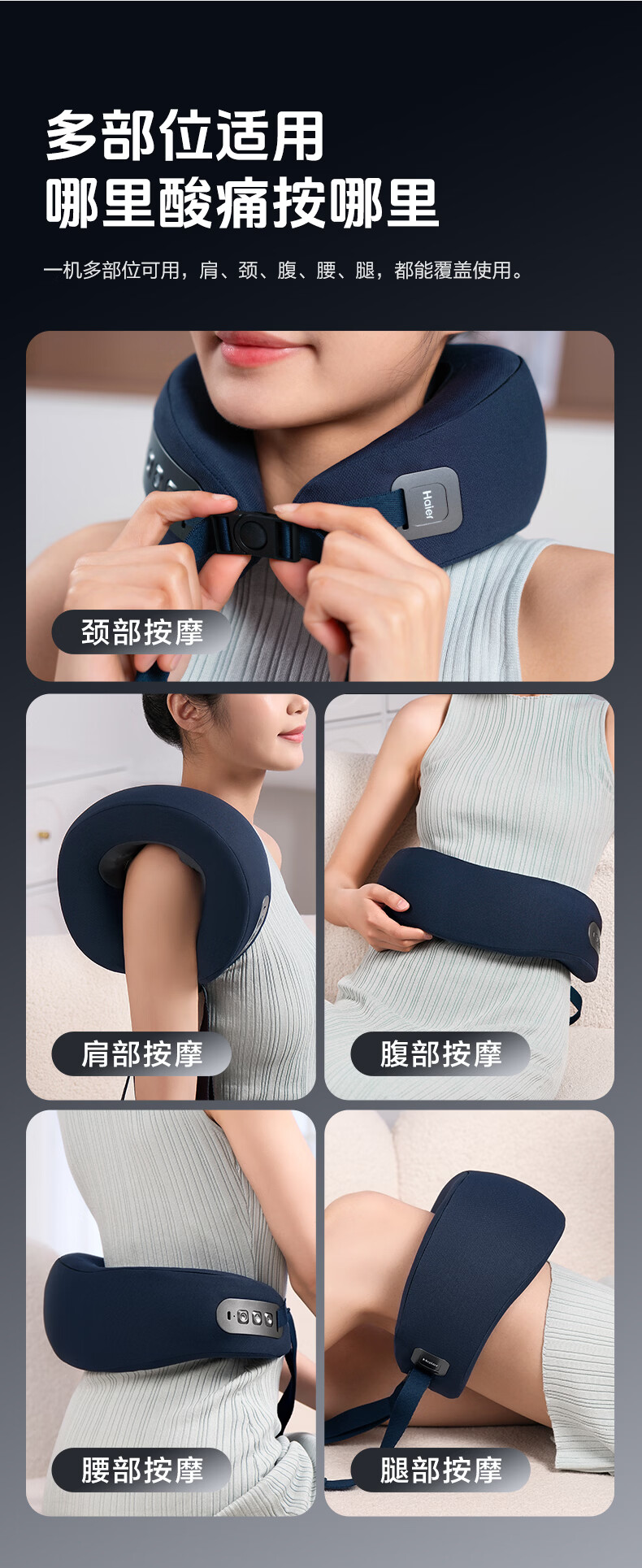 海尔(Haier)颈椎按摩器枕头护颈枕肩颈腰部颈椎按摩仪支撑热敷U型枕出游午睡神器生日礼物送男女朋友HHZ-J501Z