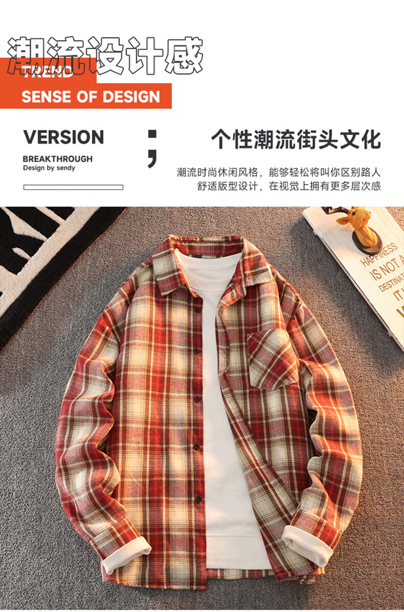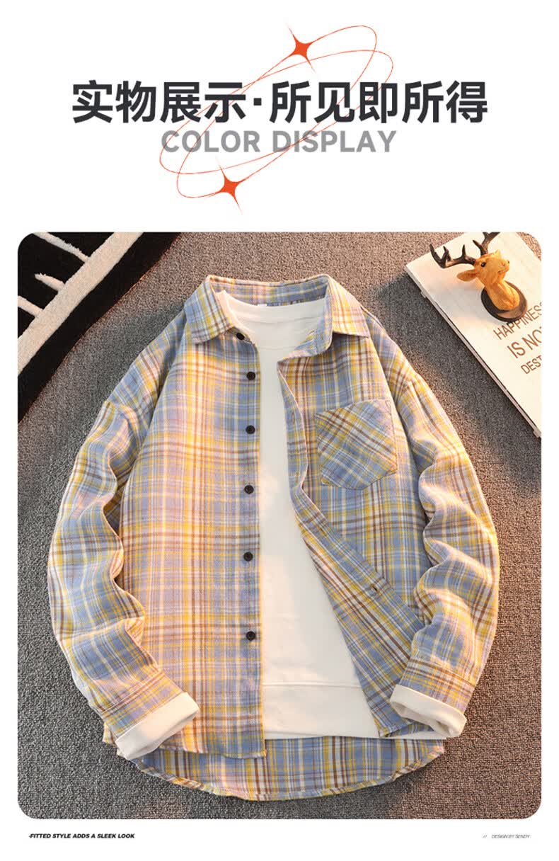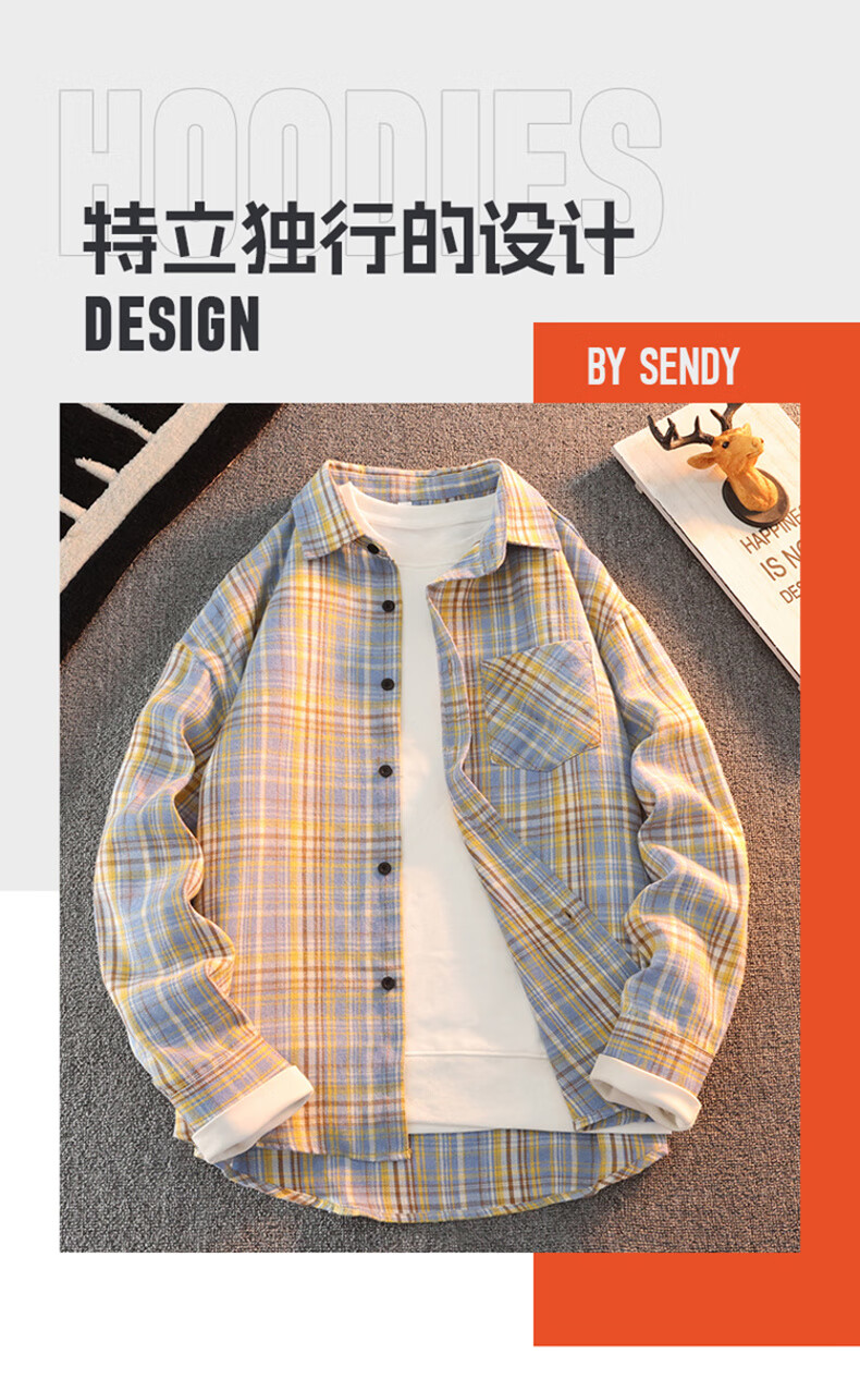 真维斯户外运动长袖衬衫男士春秋百搭宽松格子衬衣户外休闲长袖外套 黄色 XL