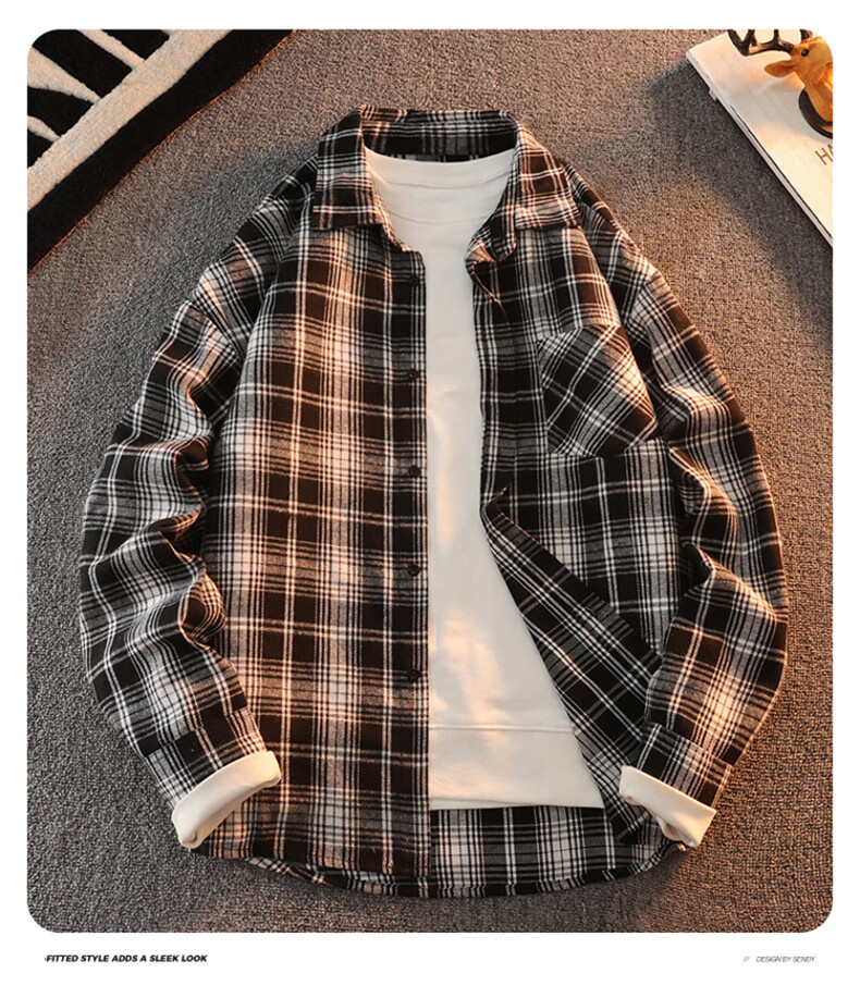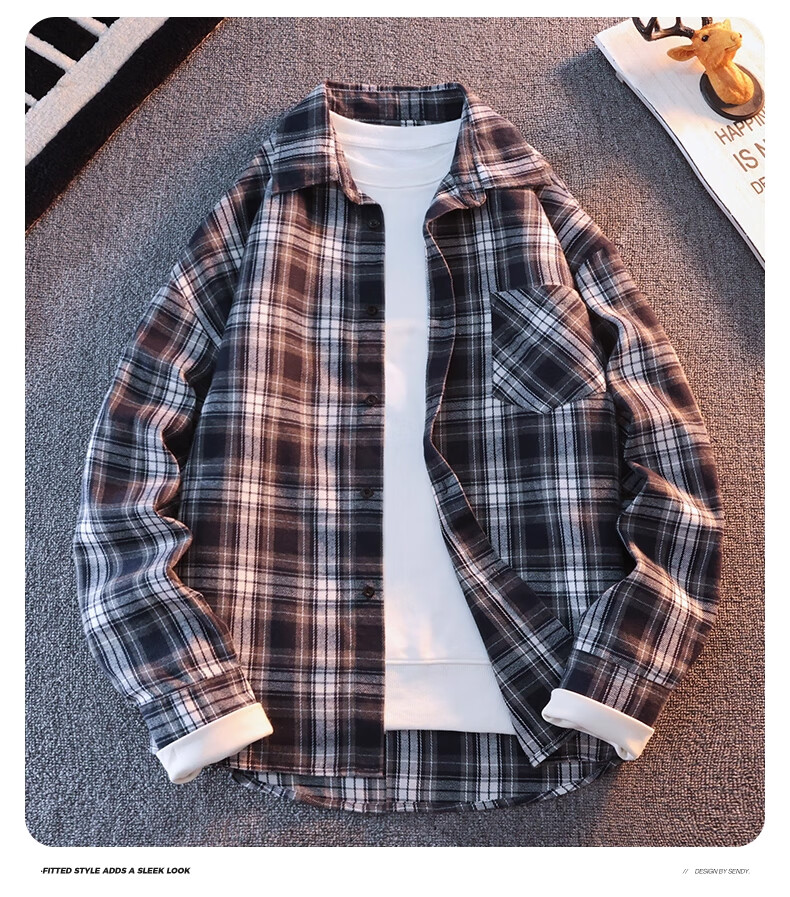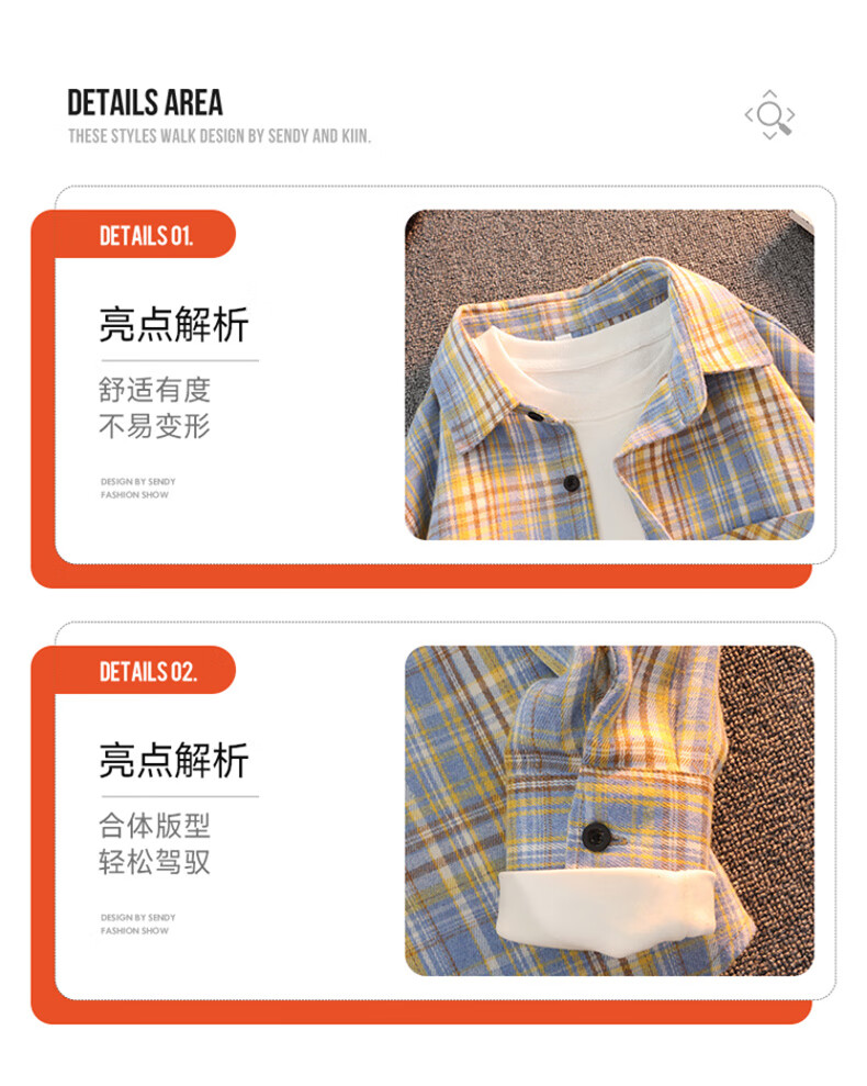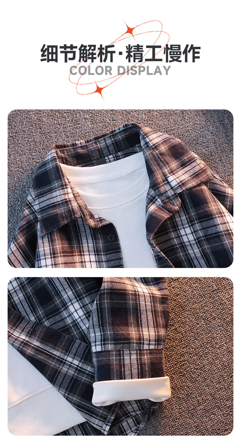 真维斯户外运动长袖衬衫男士春秋百搭宽松格子衬衣户外休闲长袖外套 黄色 XL