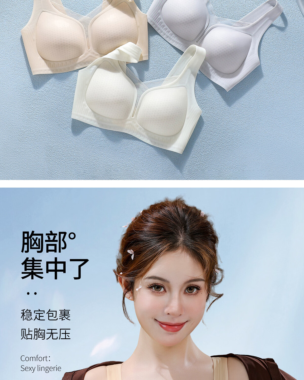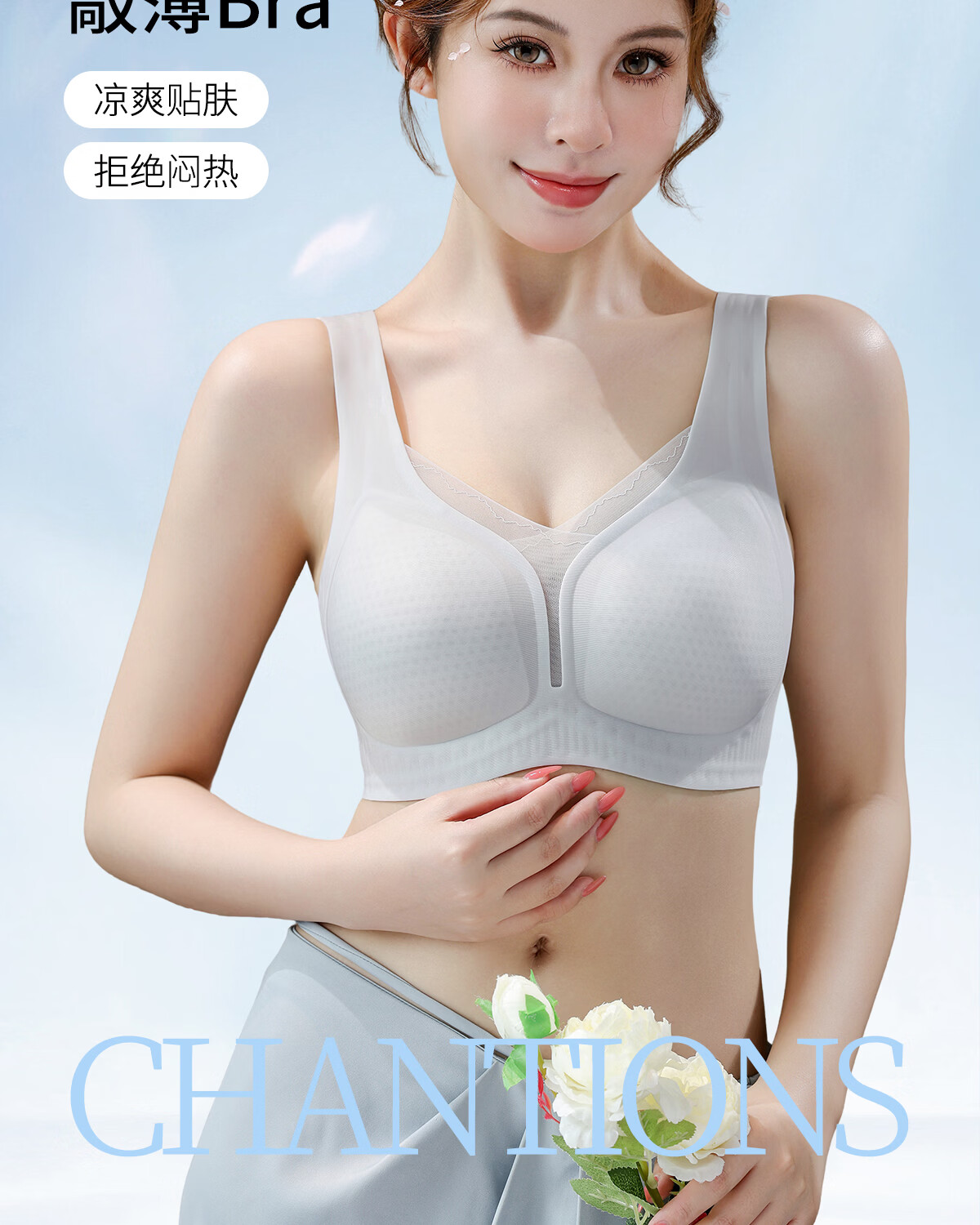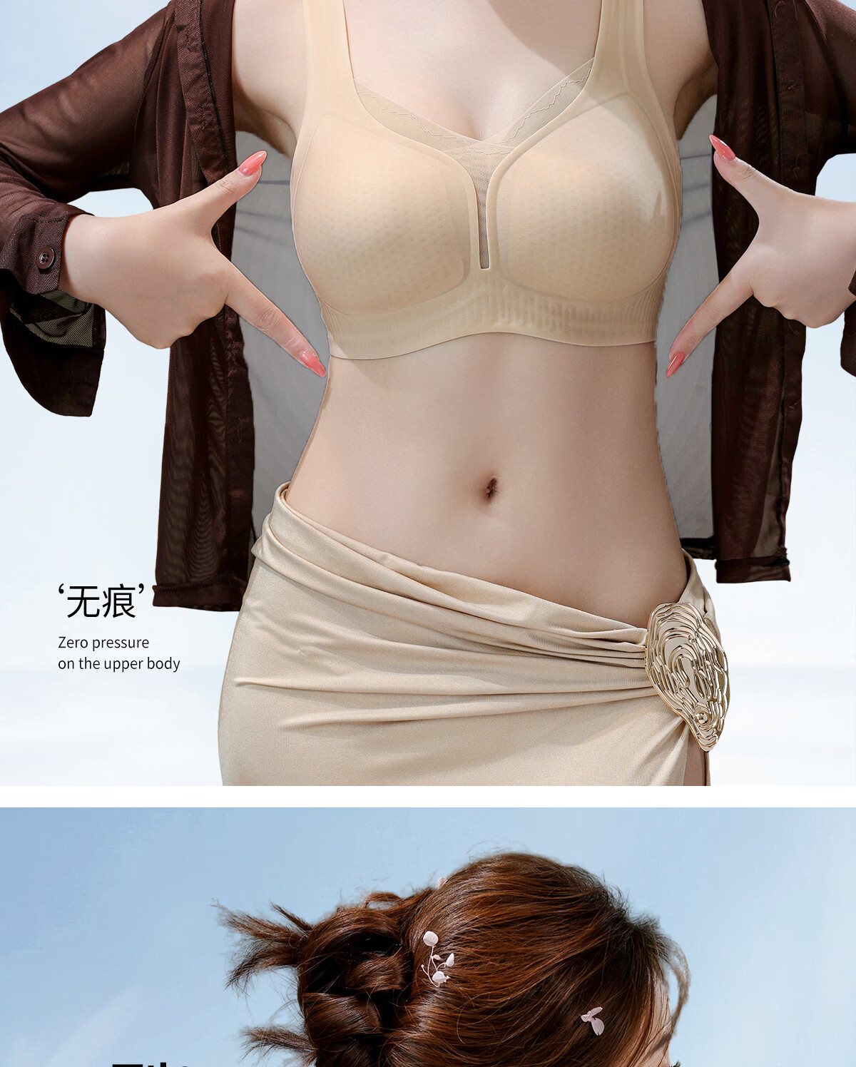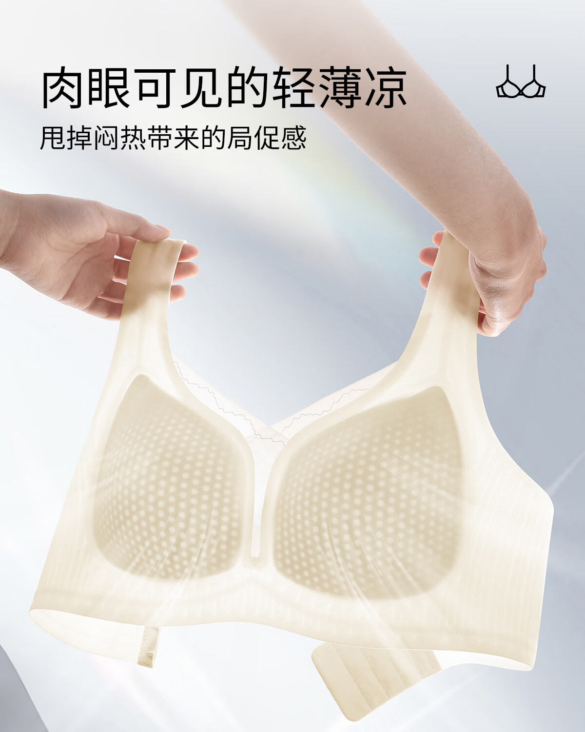 NW HAREM夏天内衣女超薄款无痕文胸聚拢凉感透气大胸显小收副乳大码胸罩 柔肤粉 2XL 码【推荐135-150斤】