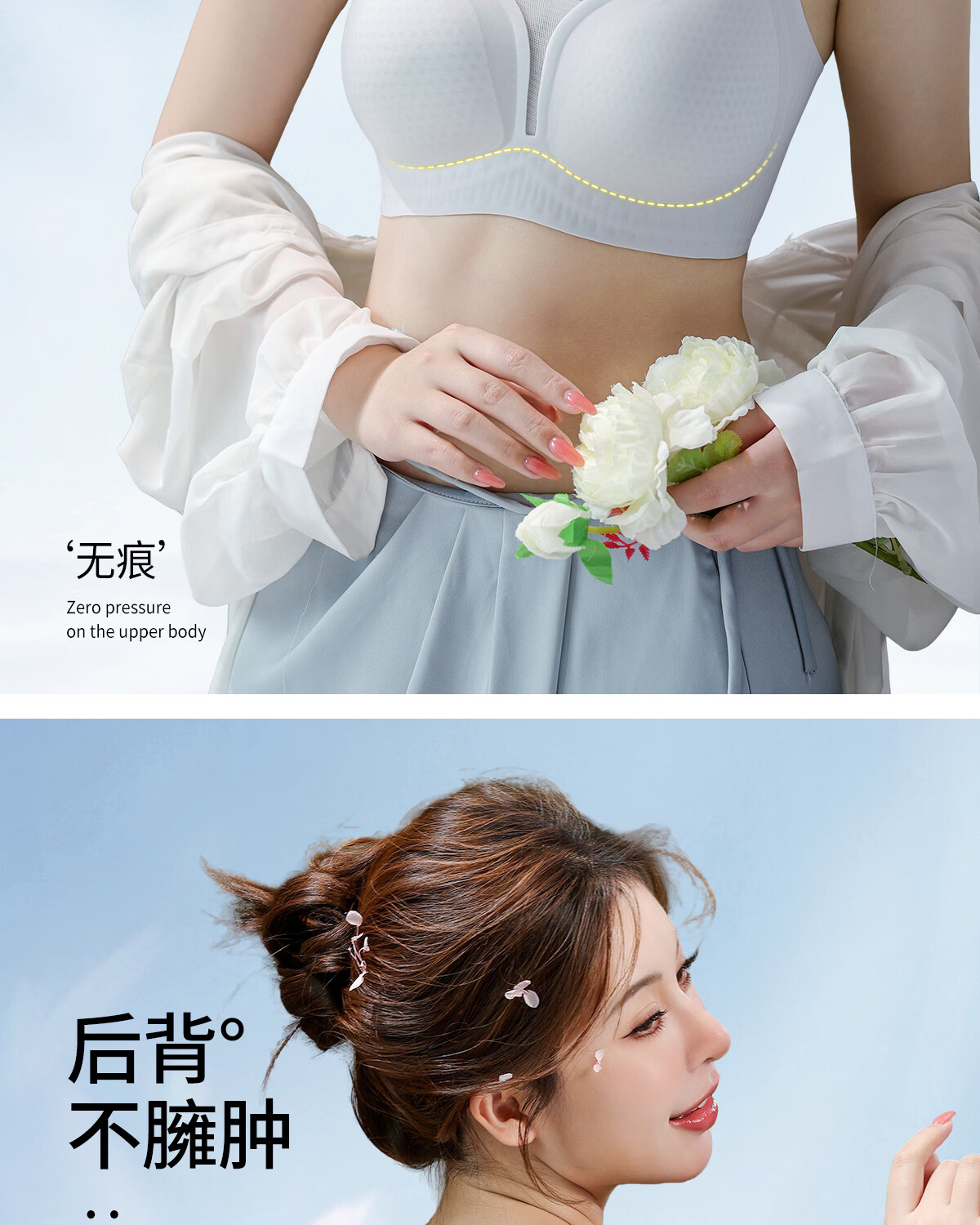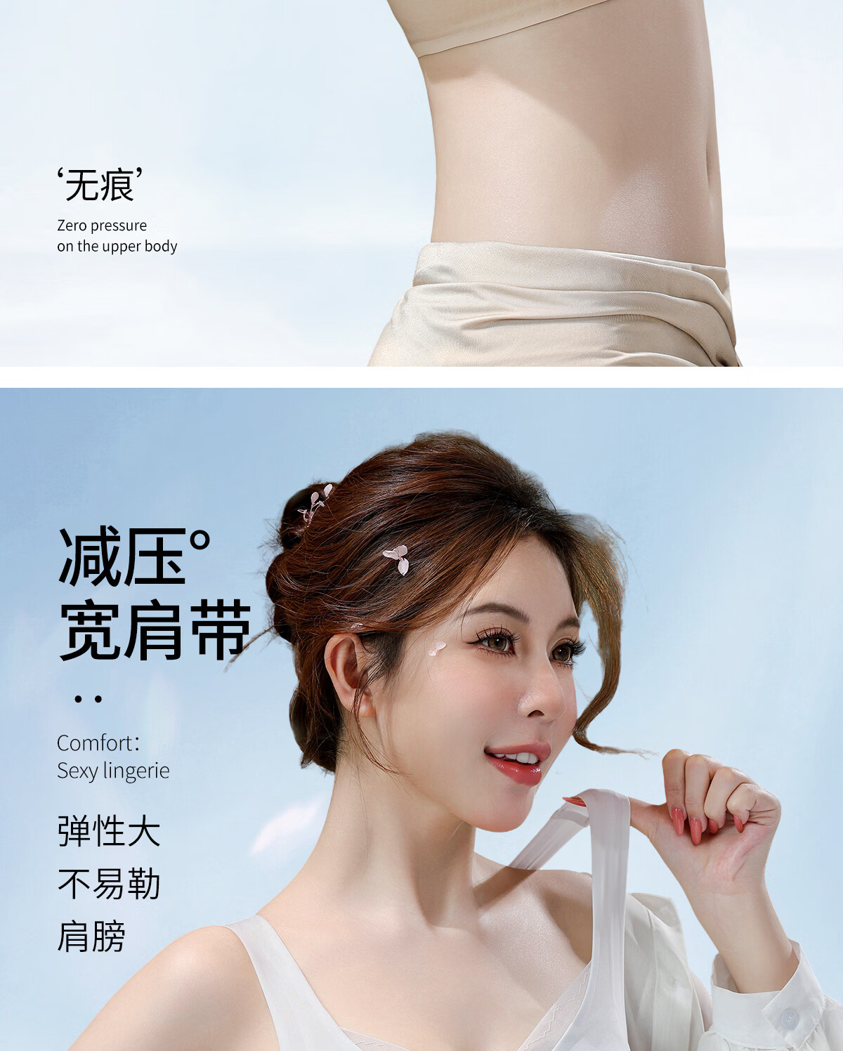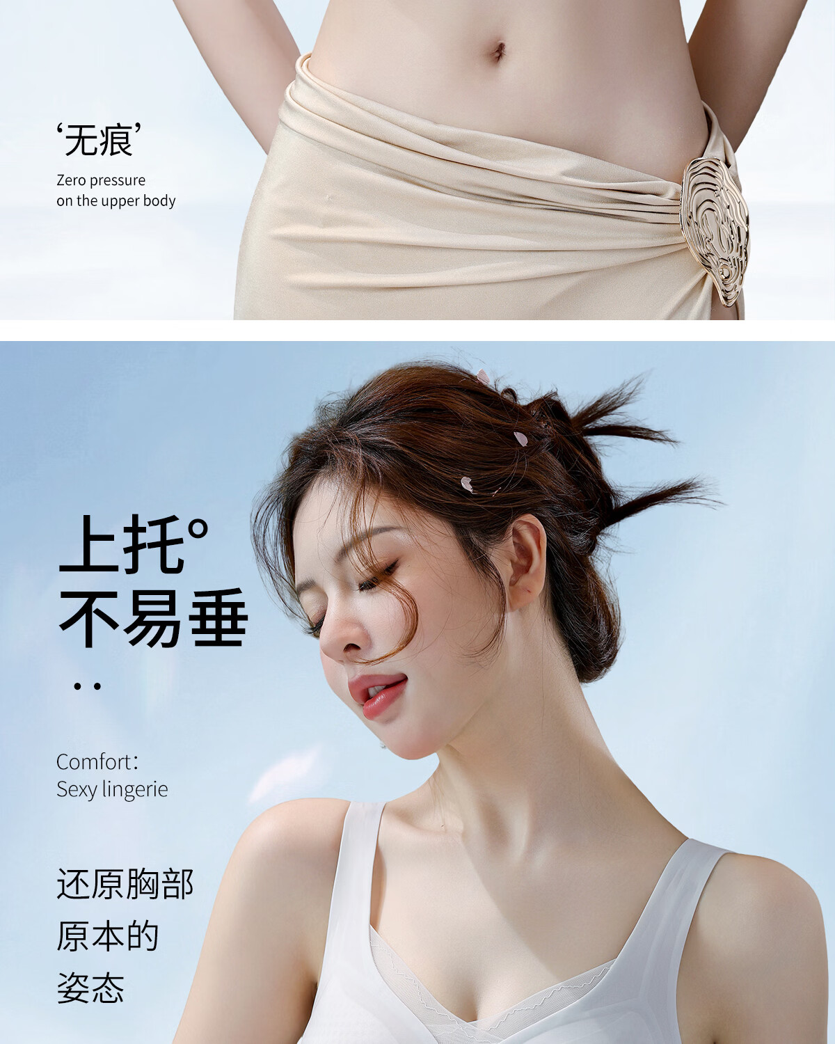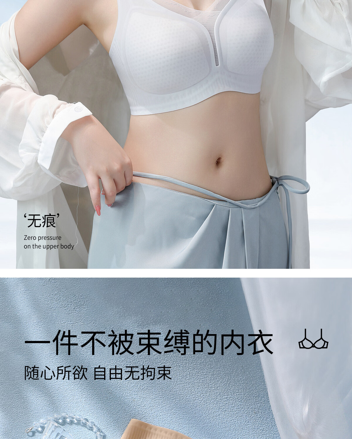 NW HAREM夏天内衣女超薄款无痕文胸聚拢凉感透气大胸显小收副乳大码胸罩 柔肤粉 2XL 码【推荐135-150斤】