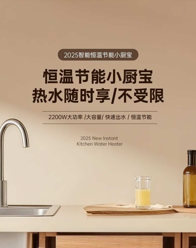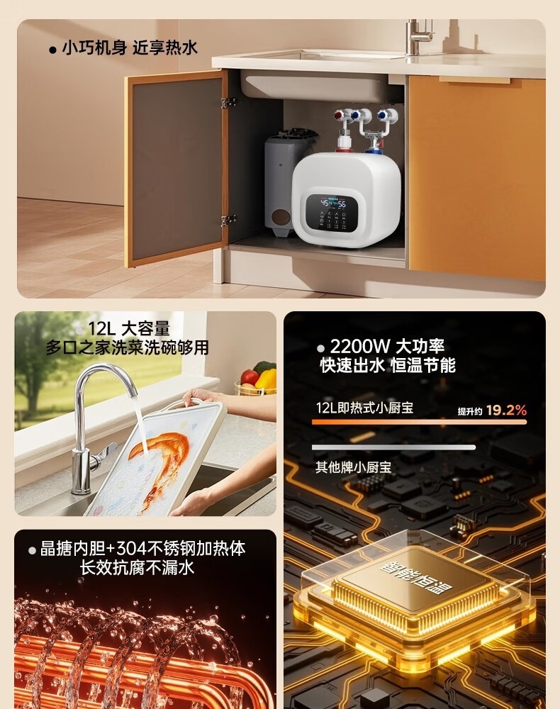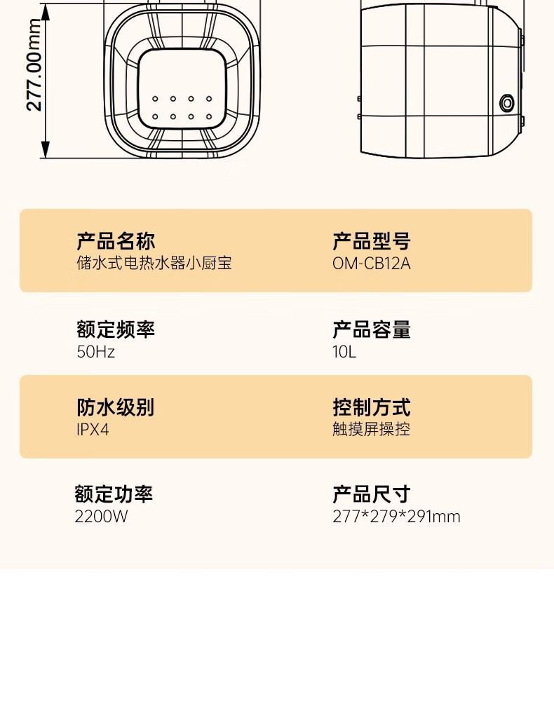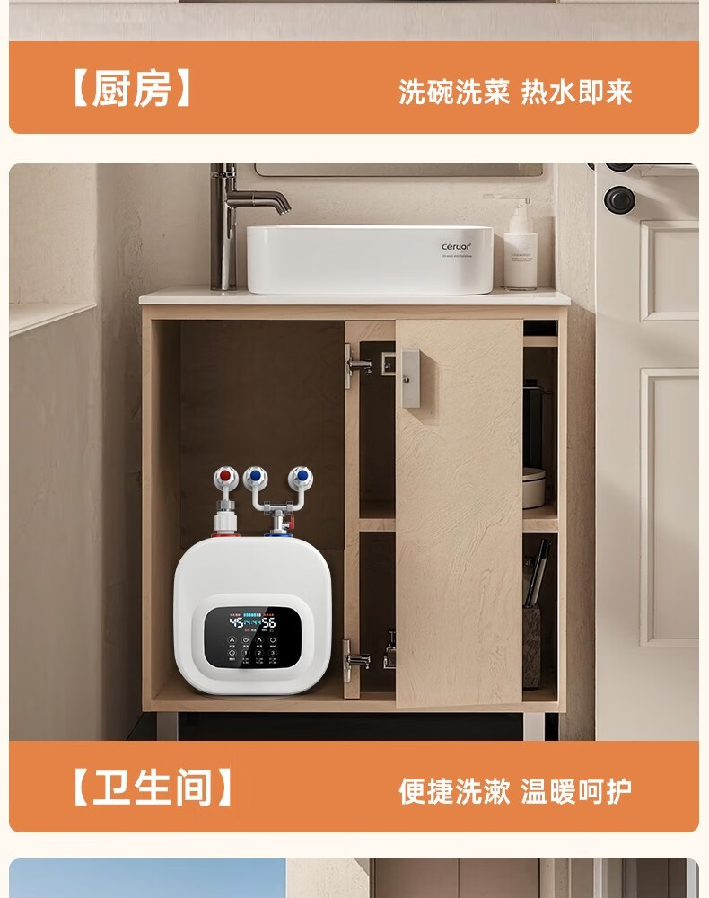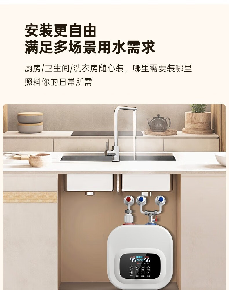 comfee美的甄选小厨宝电热水器热水宝一级能效智能储水式热水器小型家用厨房2026新款 6L 2200W 机械款 | 一级能效 | 上出水 【自行安装】