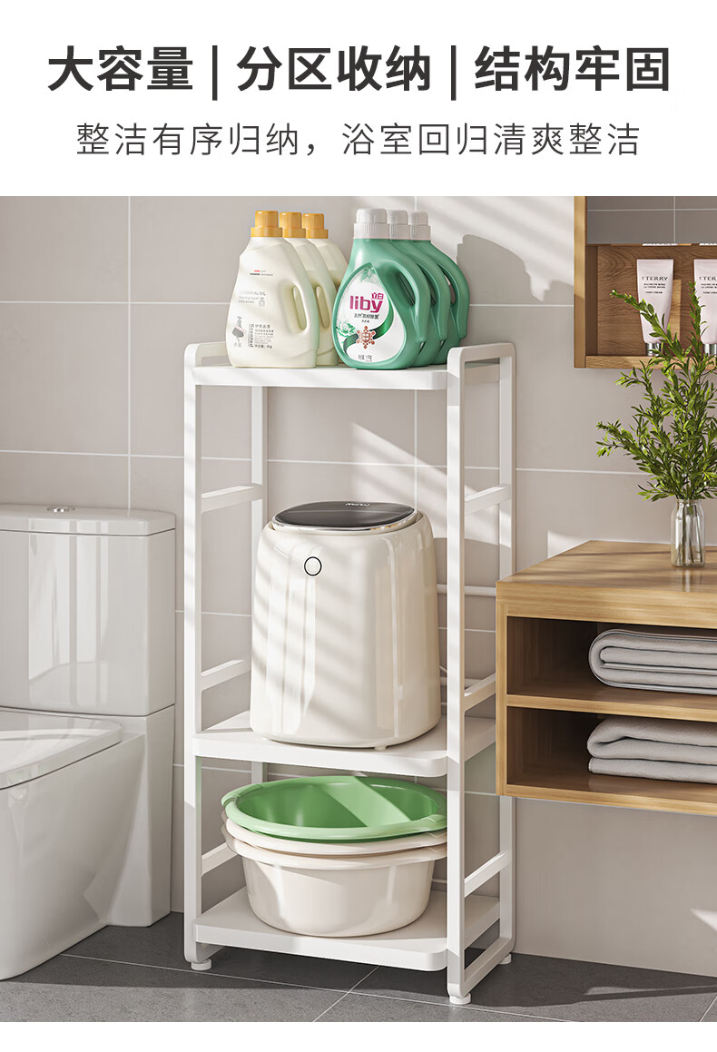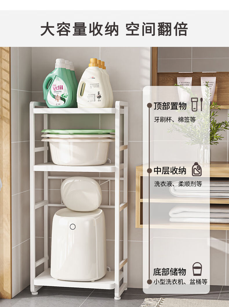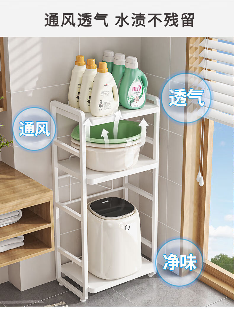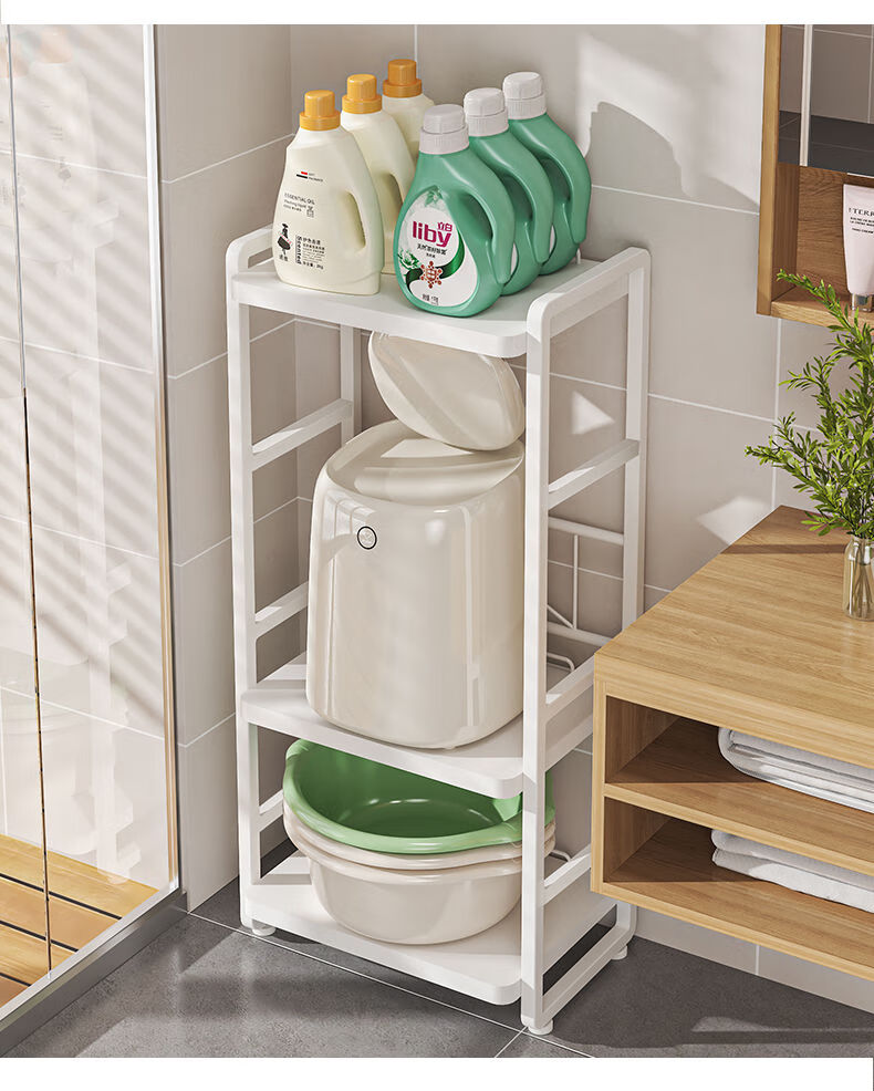 脸盆架置物架落地式卫生间多层马桶侧边多功能迷你洗衣机收纳架子 白色三层(上层加高)