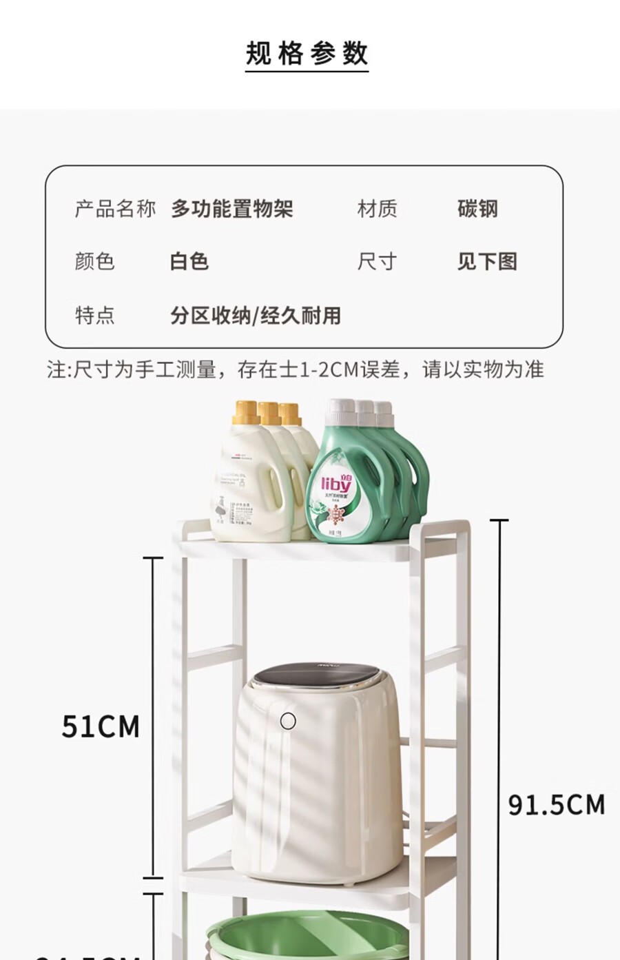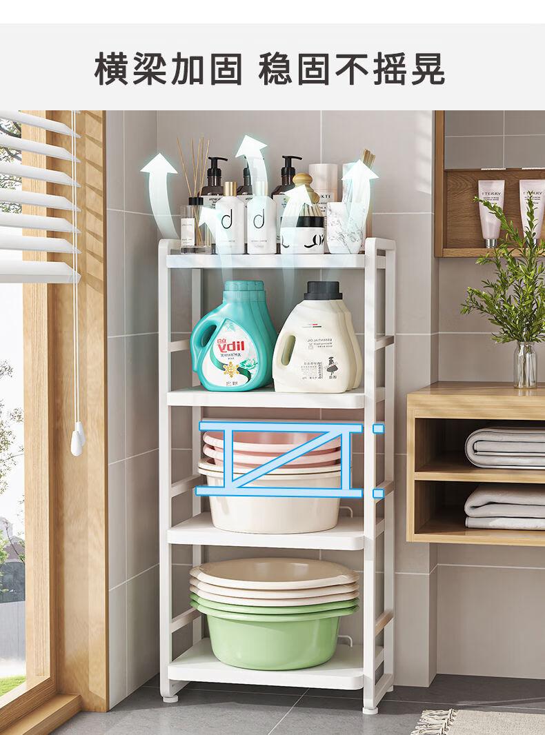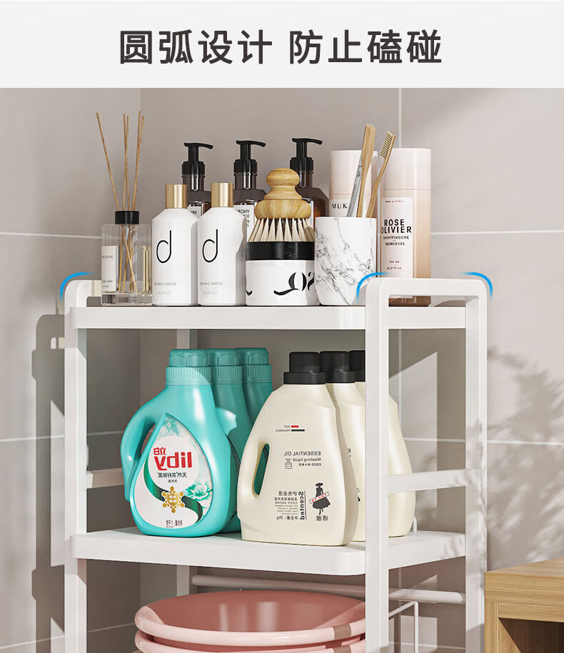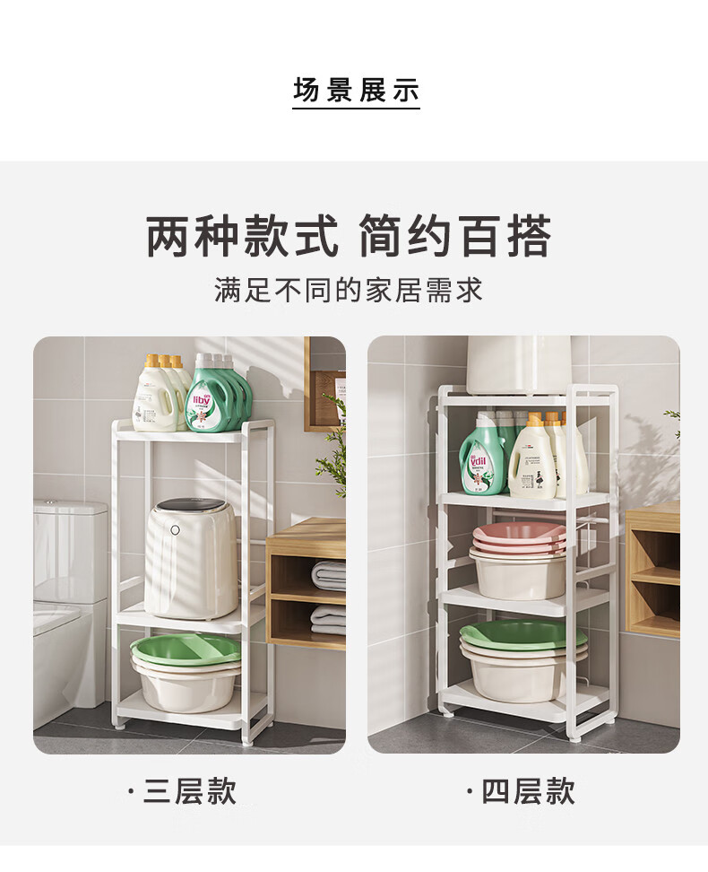 脸盆架置物架落地式卫生间多层马桶侧边多功能迷你洗衣机收纳架子 白色三层(上层加高)