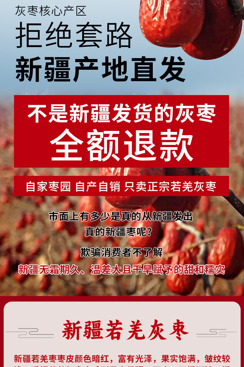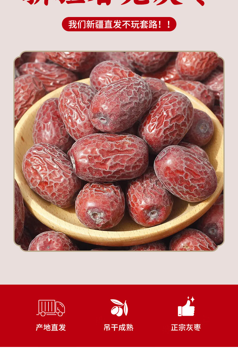 枣红栆杞新疆灰枣特级新货正宗若羌灰枣原生态吊干大枣红枣补气血零食特产 新疆若羌灰枣10斤装【新疆直发】