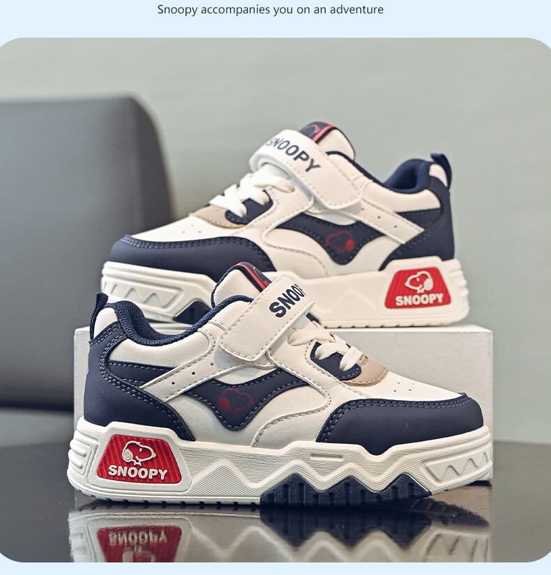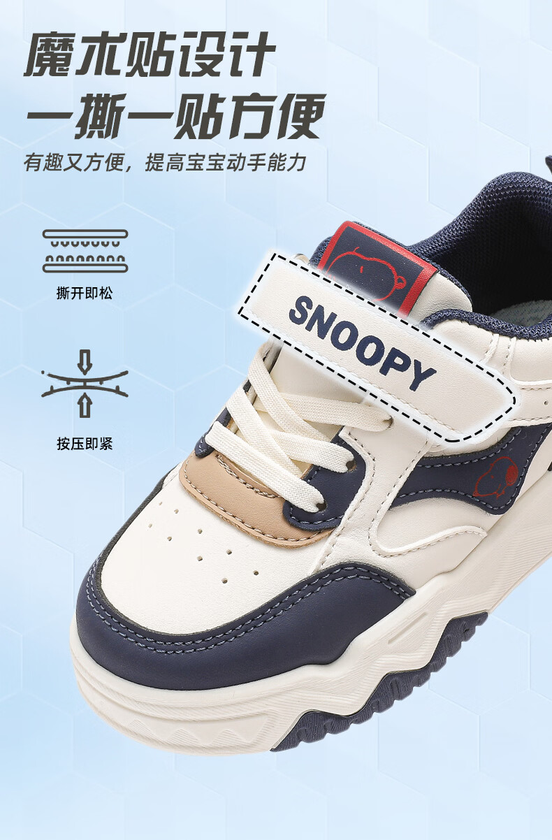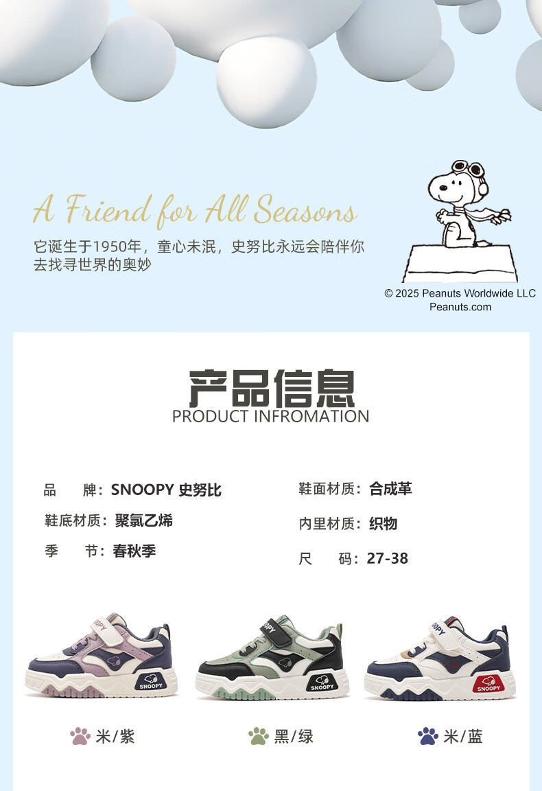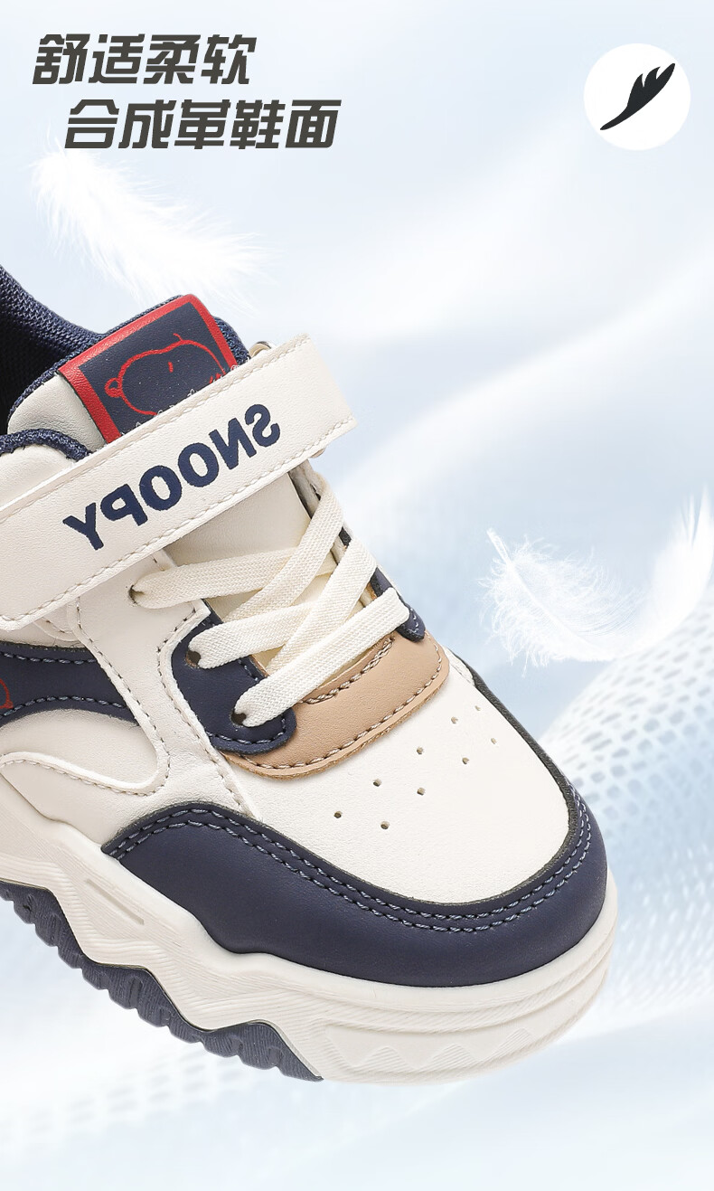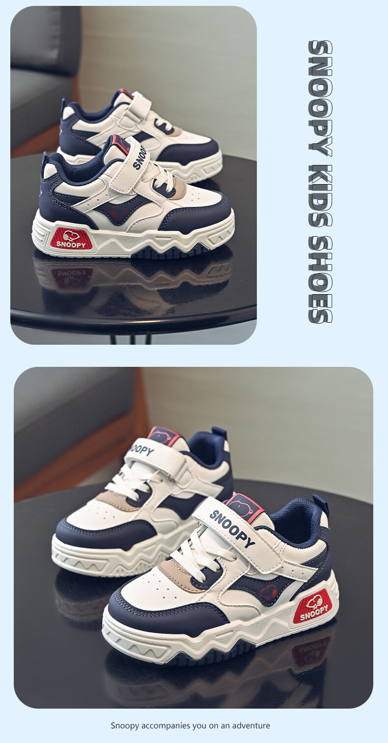 史努比童鞋女童板鞋低帮高颜值皮面防水2026春季新款休闲百搭儿童运动鞋 黑/绿 38 内长24.3/脚长23.3